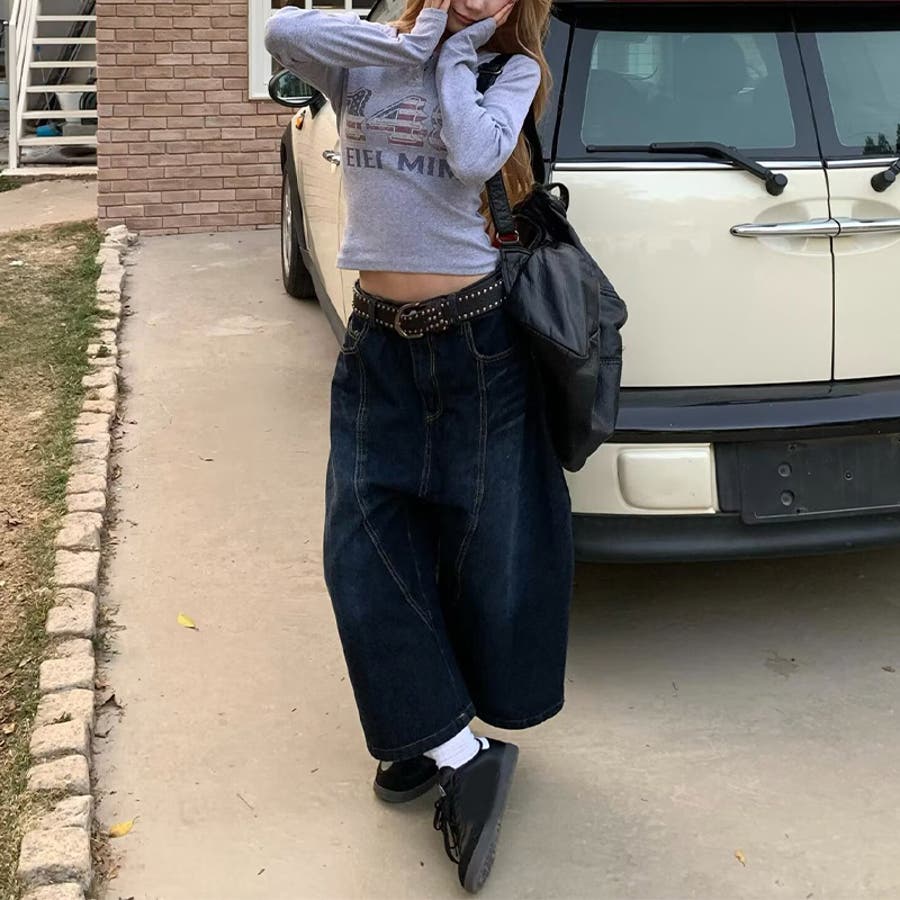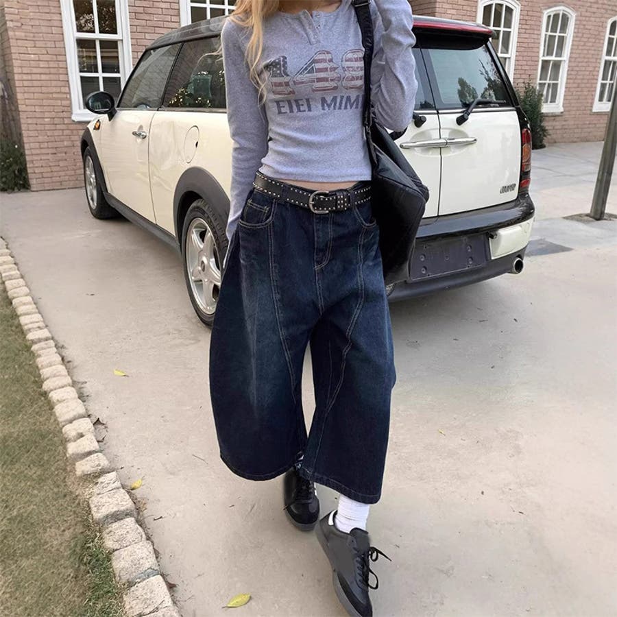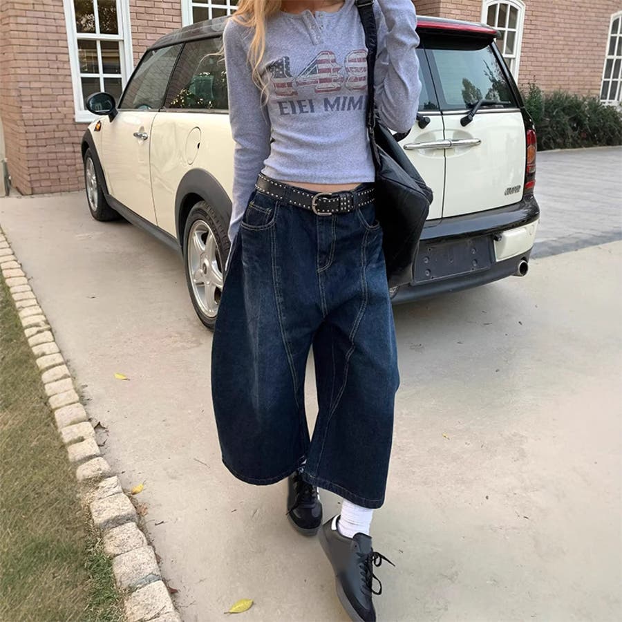 ゆるカワコーデ☆グラフィティ 7分ワイドジーンズ