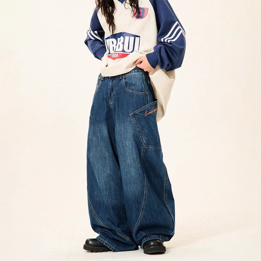 ゆるカワコーデ デニムパンツ 大きめポケット