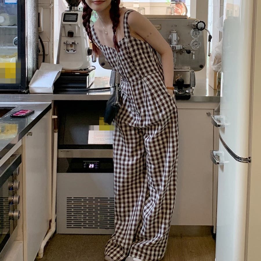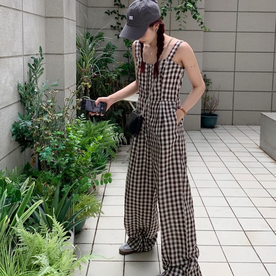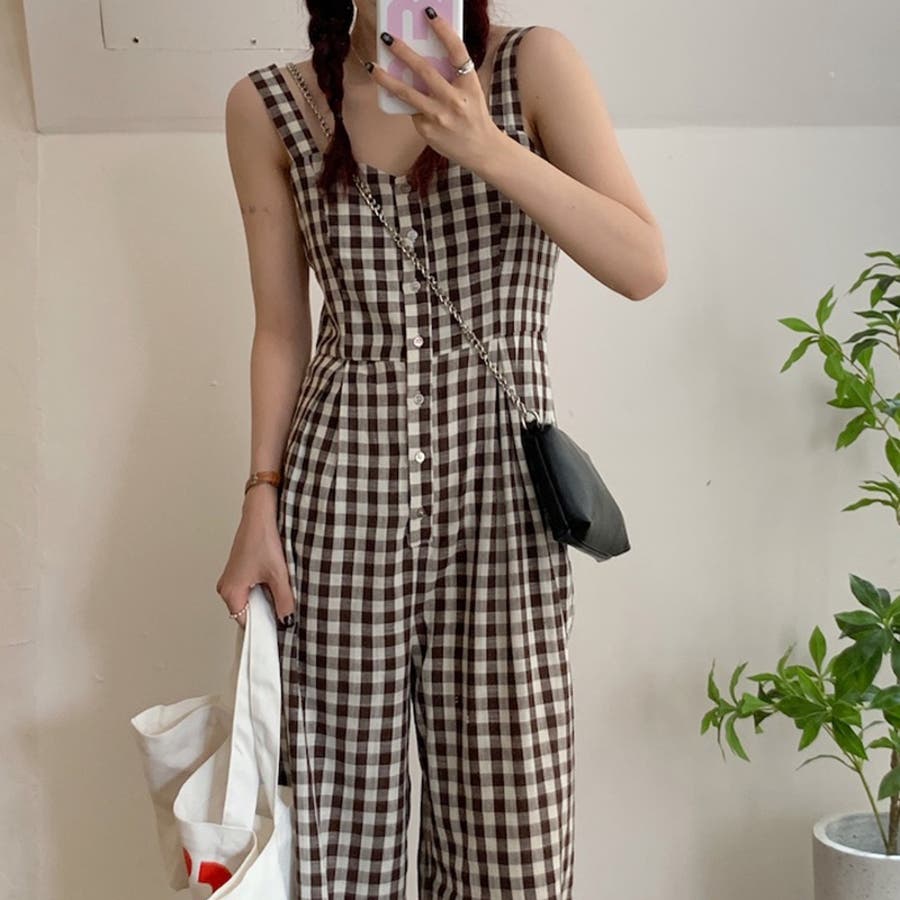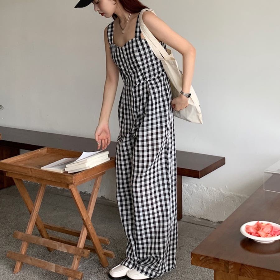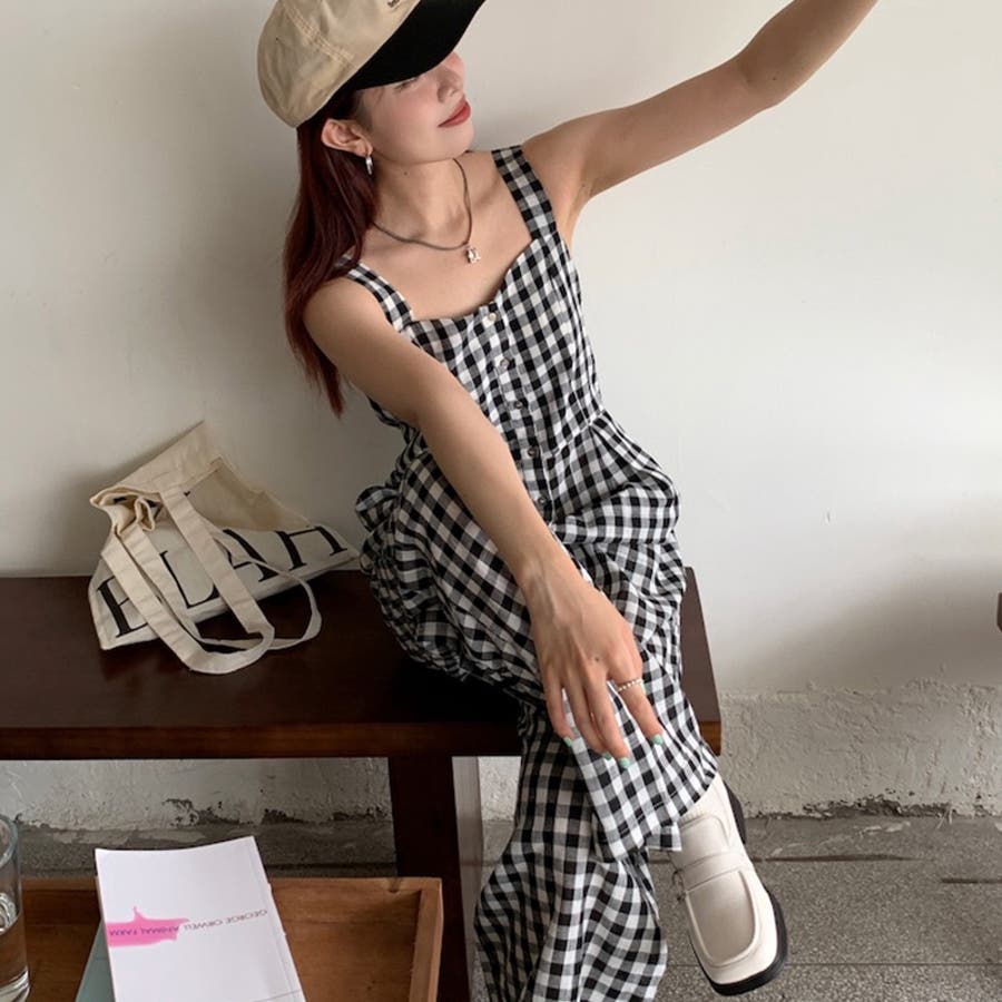 【SHOPLIST限定】程よいシルエットのチェック柄オールインワン