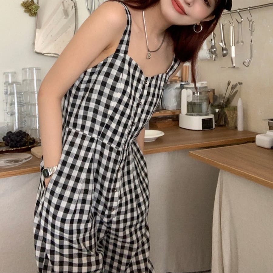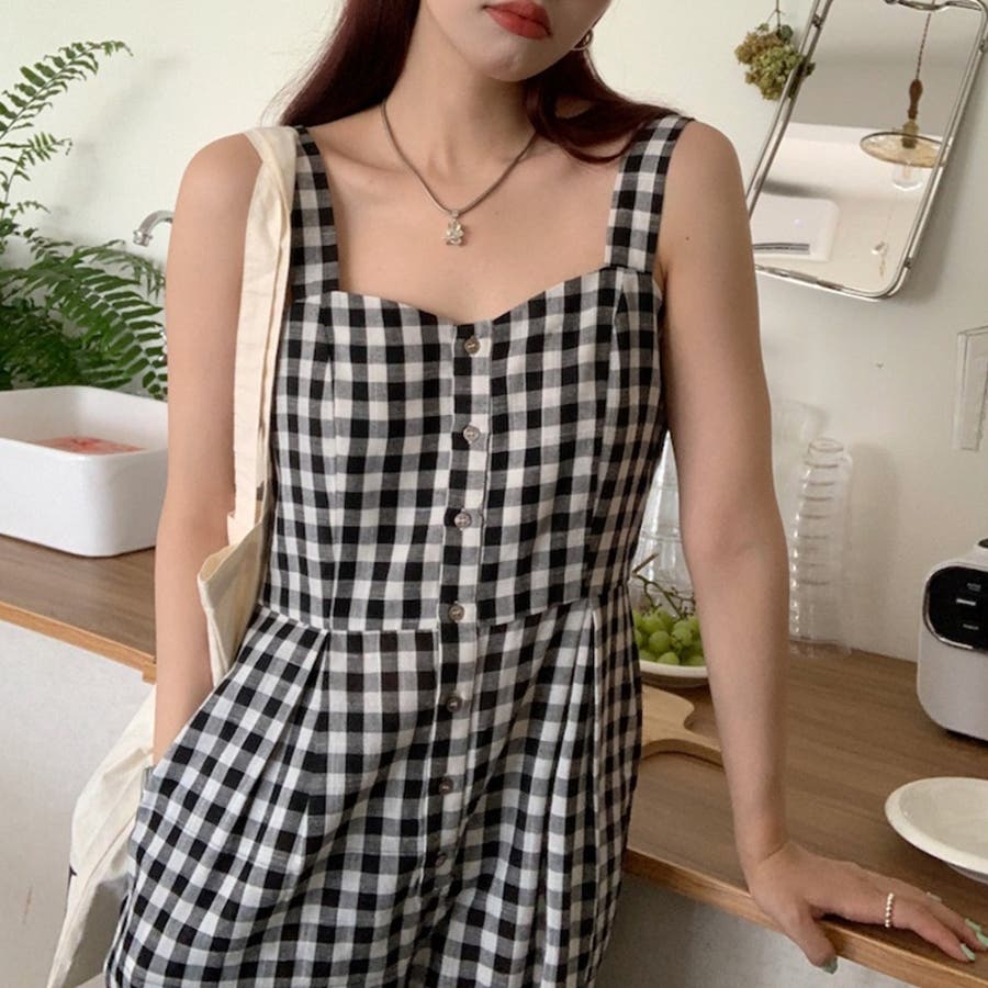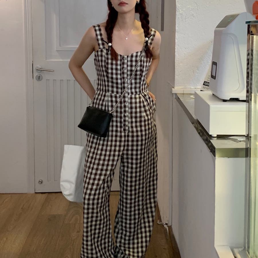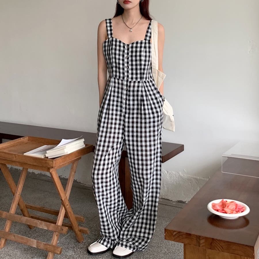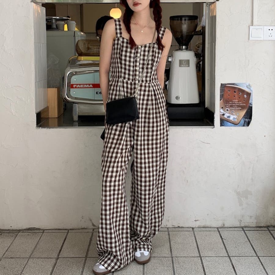 【SHOPLIST限定】程よいシルエットのチェック柄オールインワン