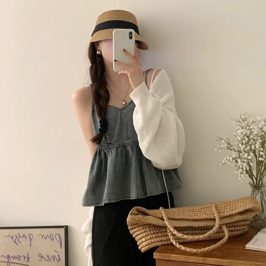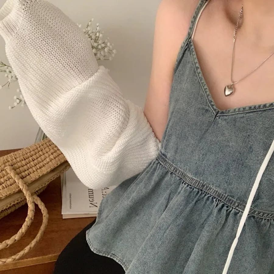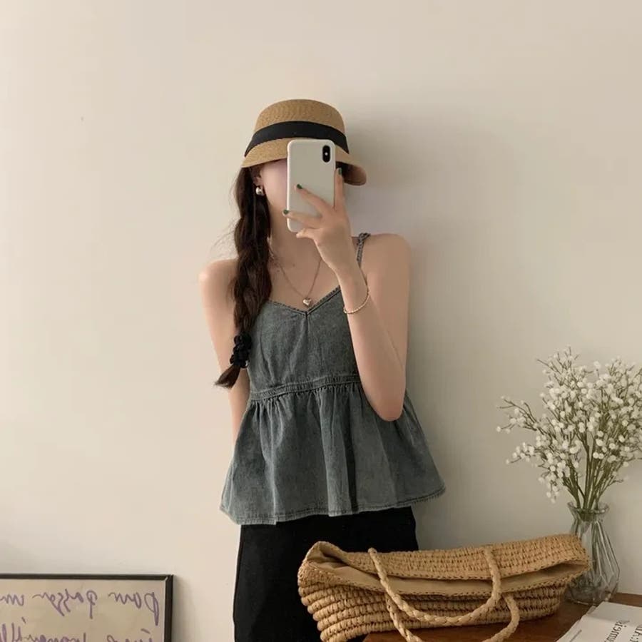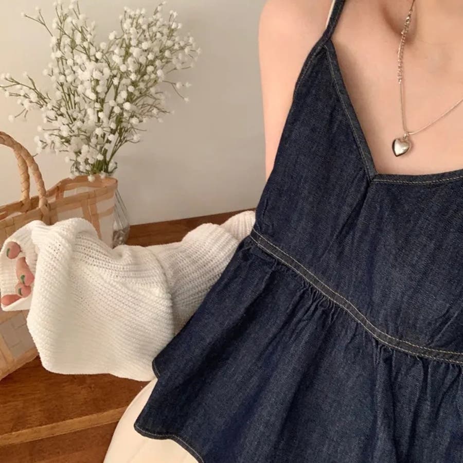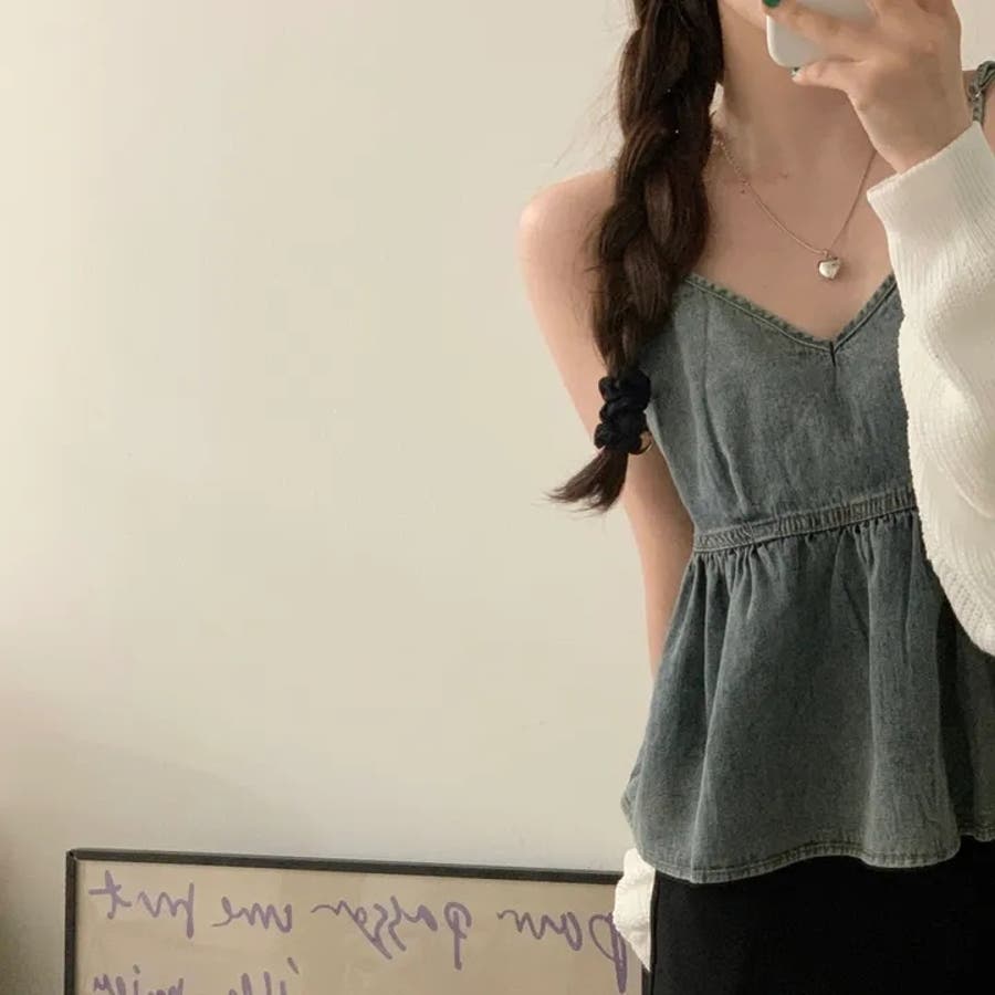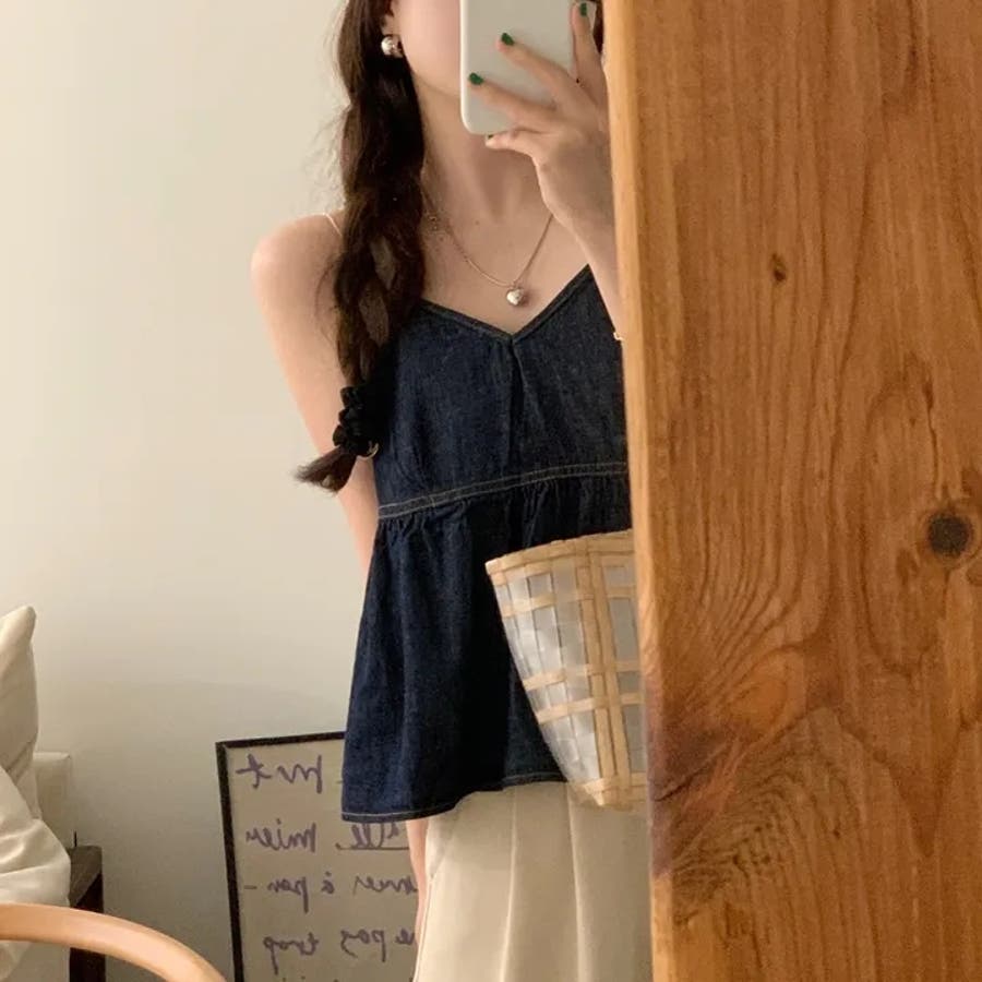 【SHOPLIST限定】柔らかく優しい雰囲気が漂うVネックデニムキャミソールトッ…