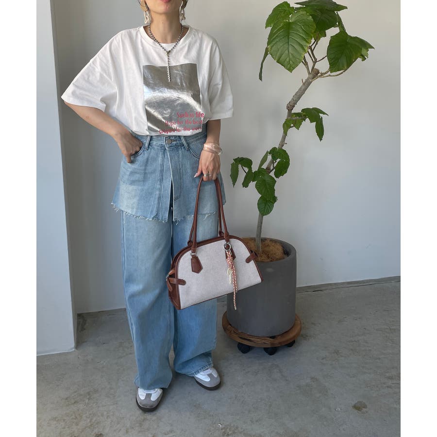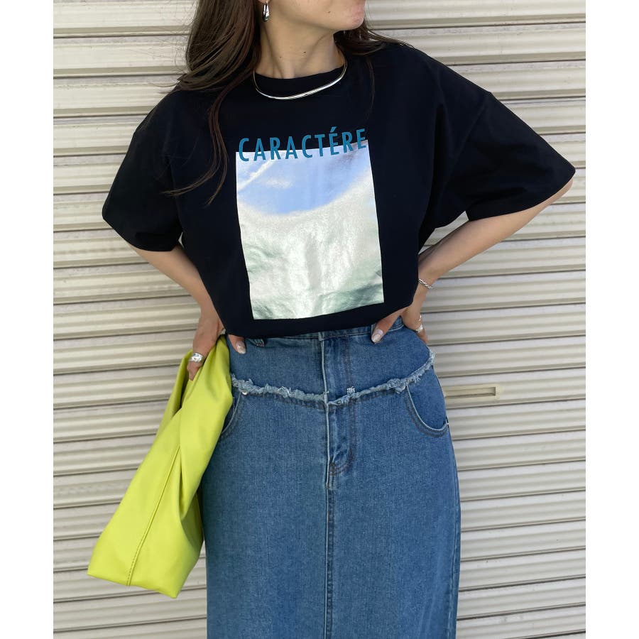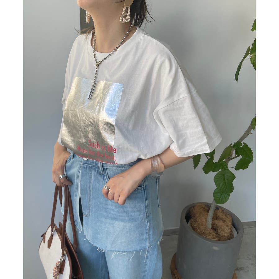 フロントの箔プリントが印象的なTシャツ。