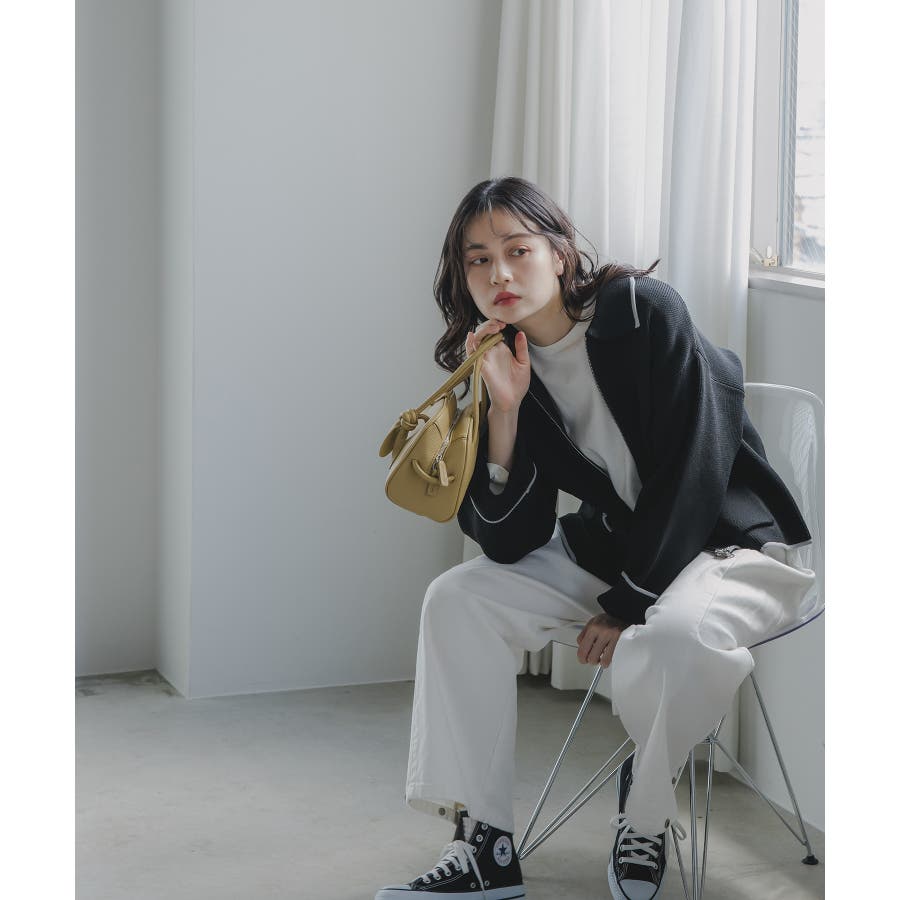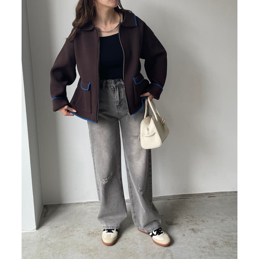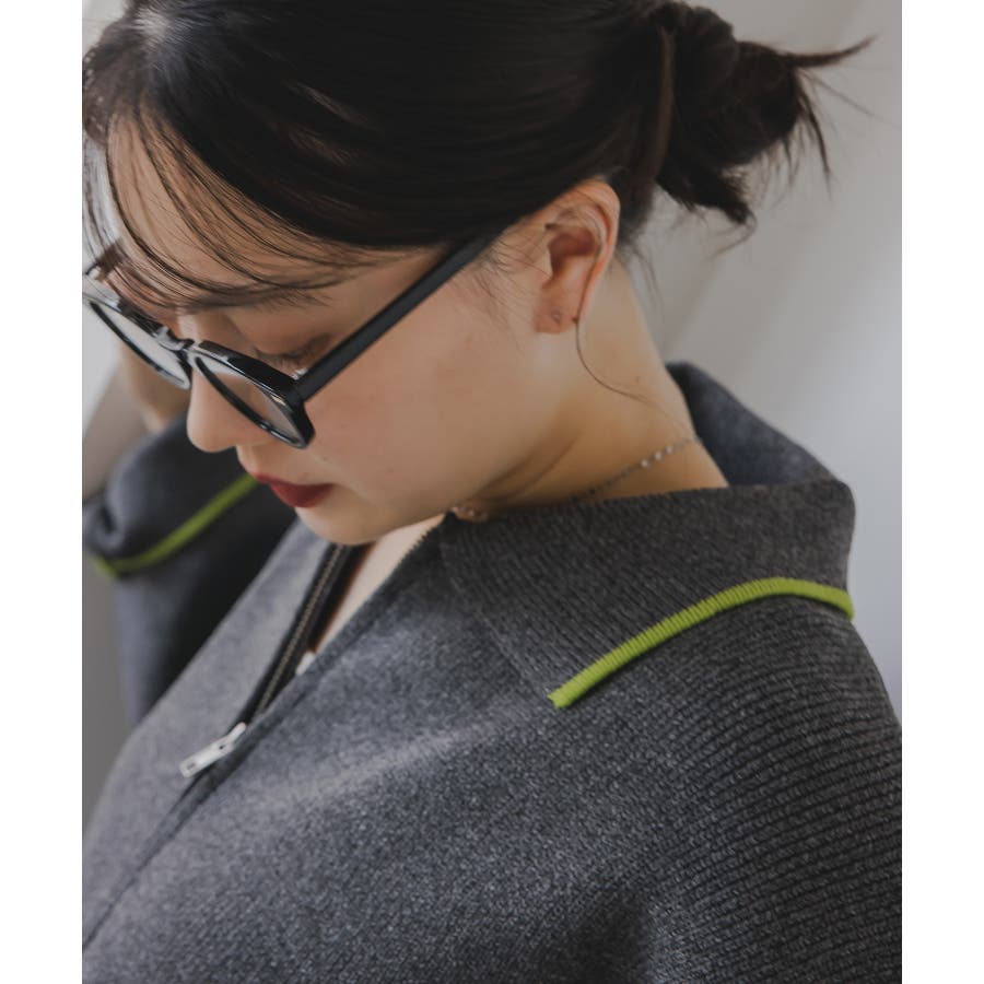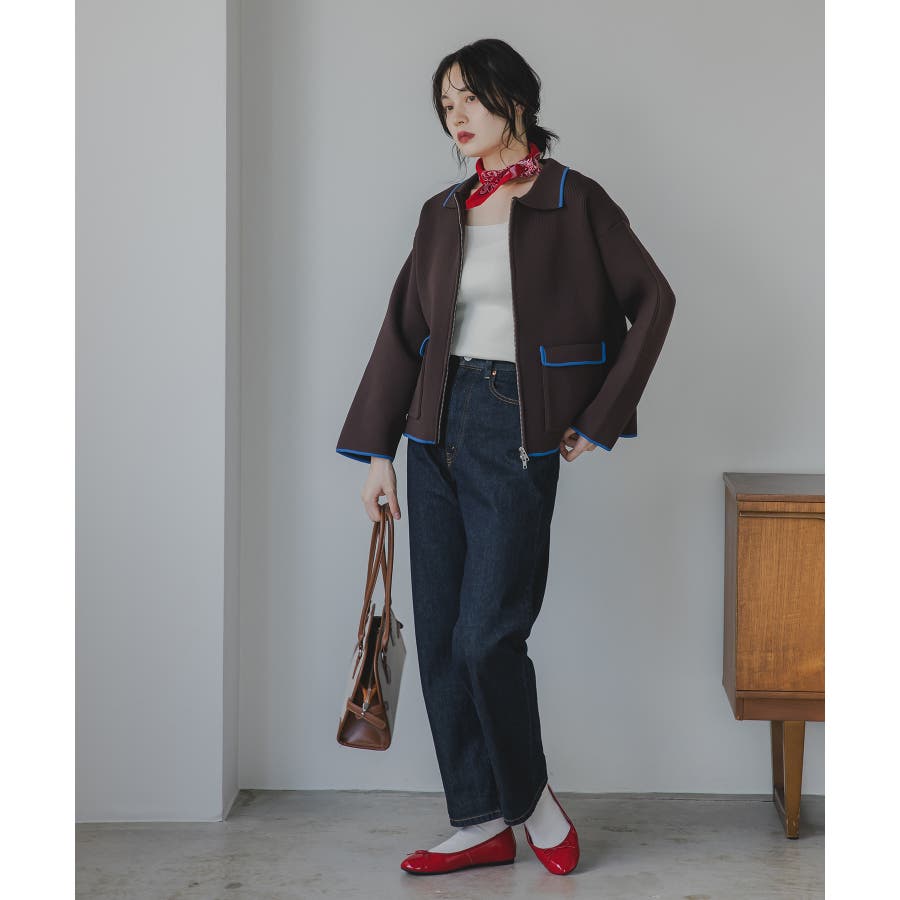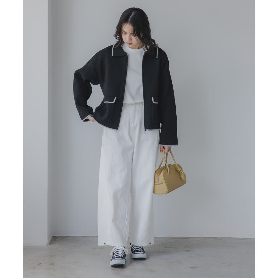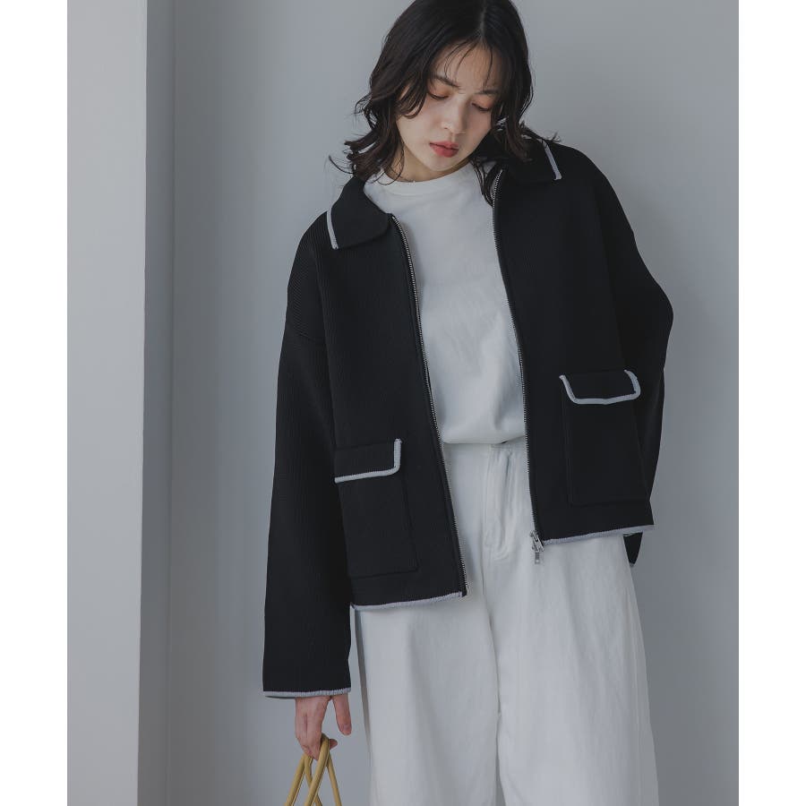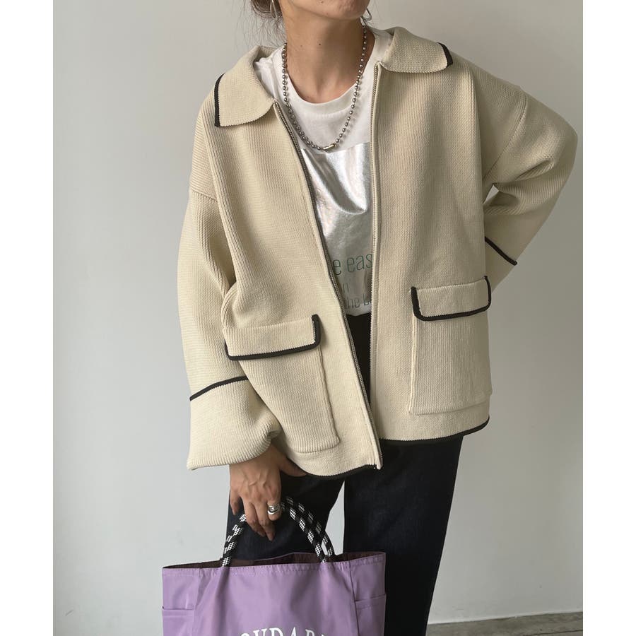 ・トレンド感のある襟付きのデザインと配色使いがポイントのニットブルゾン。