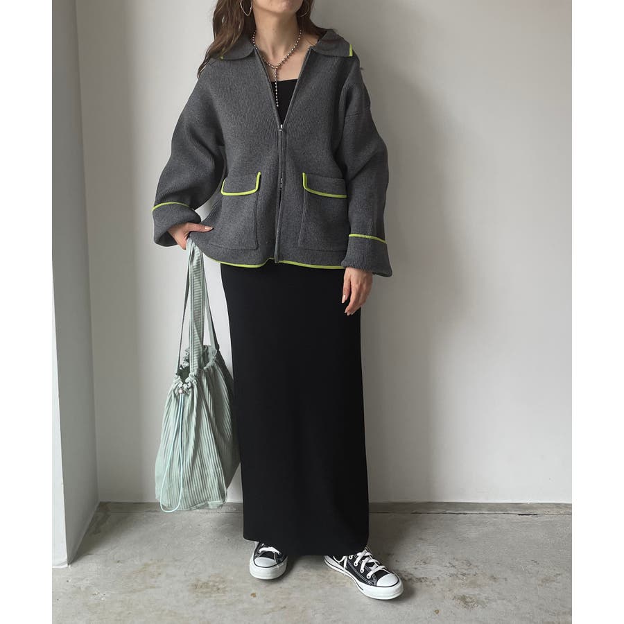 配色使いジップニットカーディガン