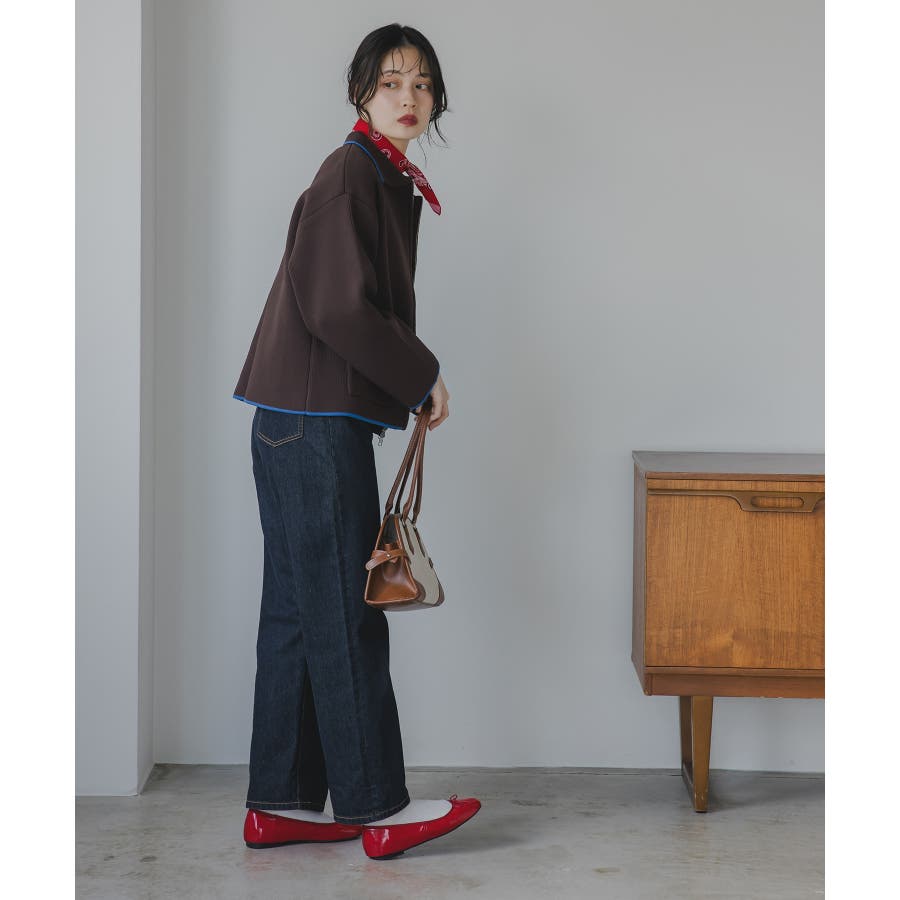 ・フロントファスナー付きで開けてカジュアルにも、閉めてきれいめに見せることもできる1枚持ってると便利なブルゾンです。