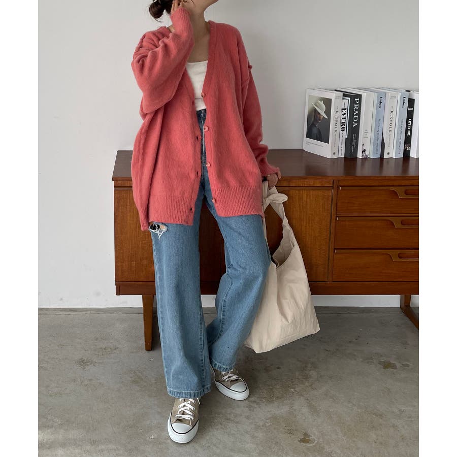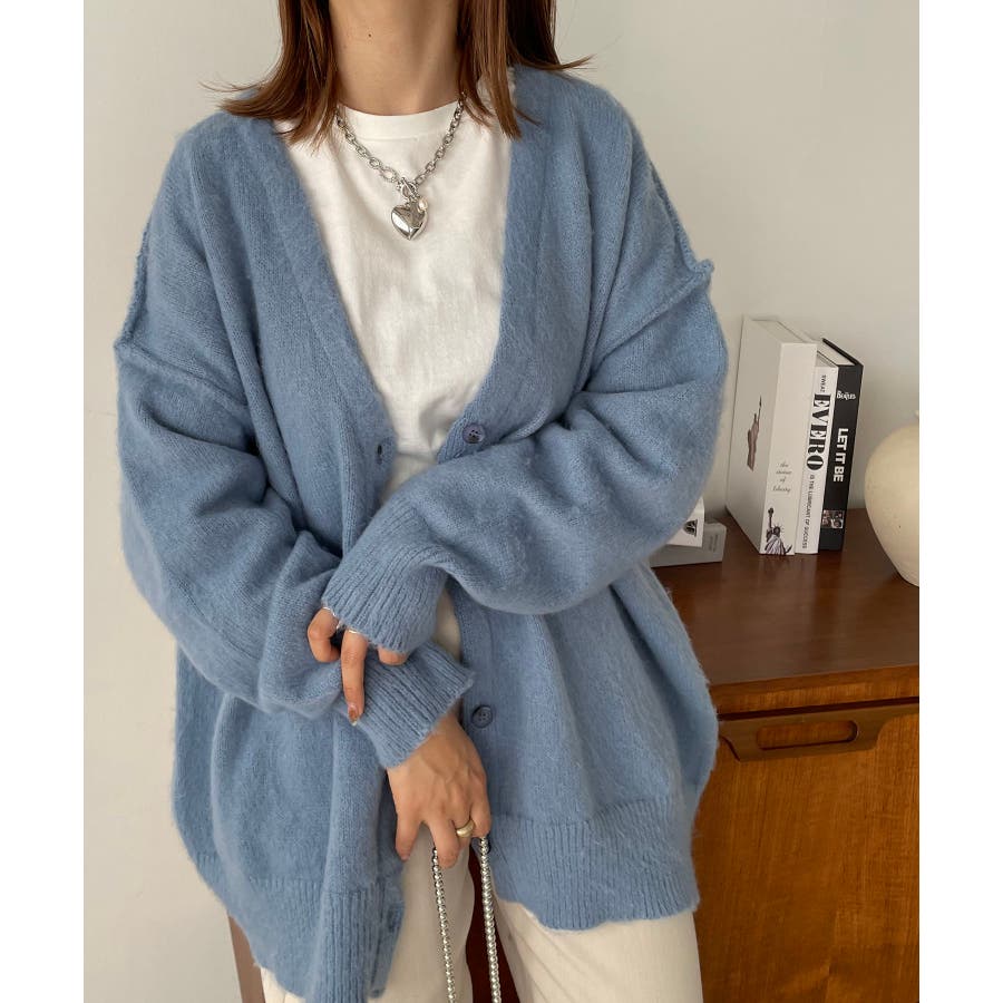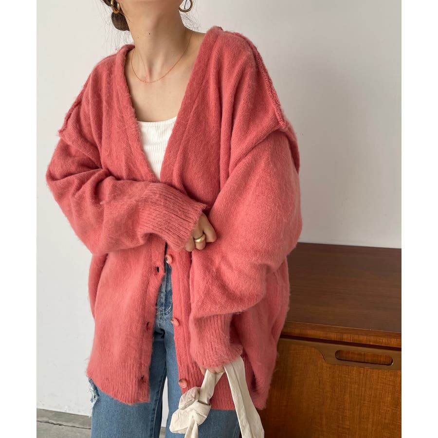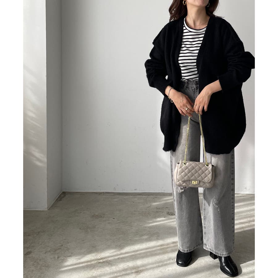 1枚で可愛らしい印象になるカーディガンなので、レザーブーツなど少しハードなアイテムと合わせてバランスをとったスタイリングもおすすめです。