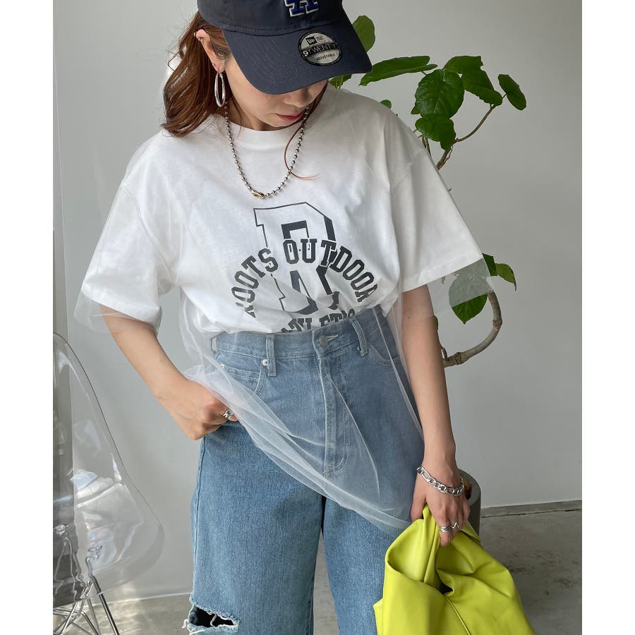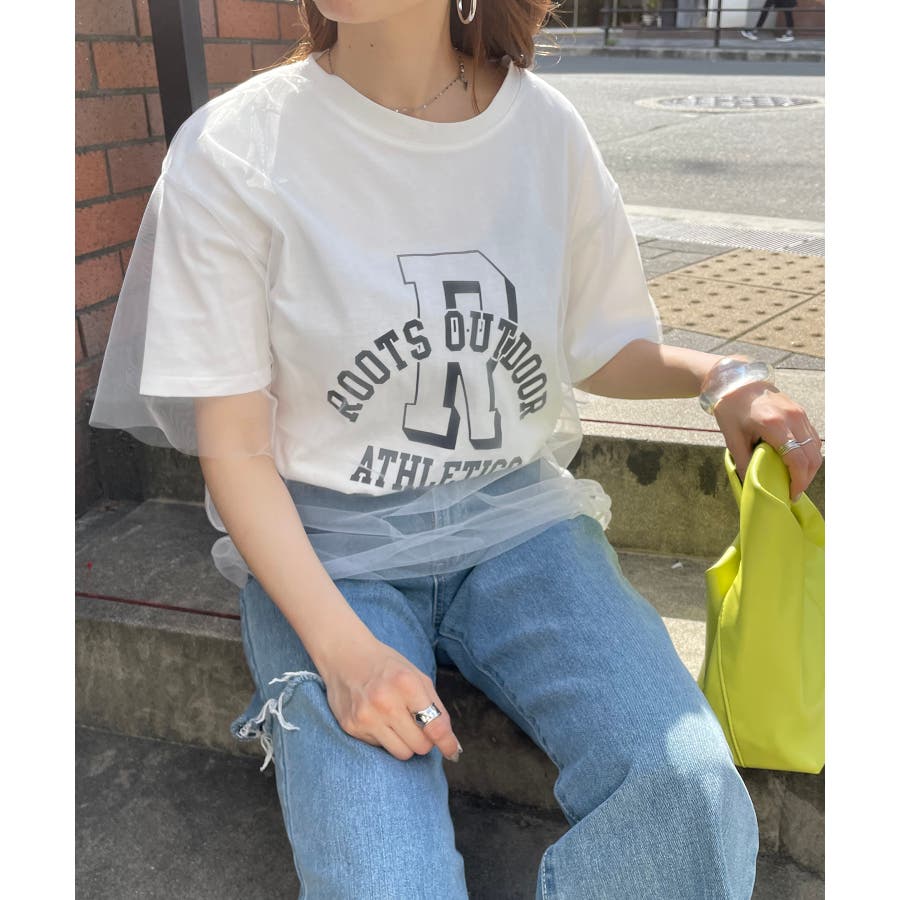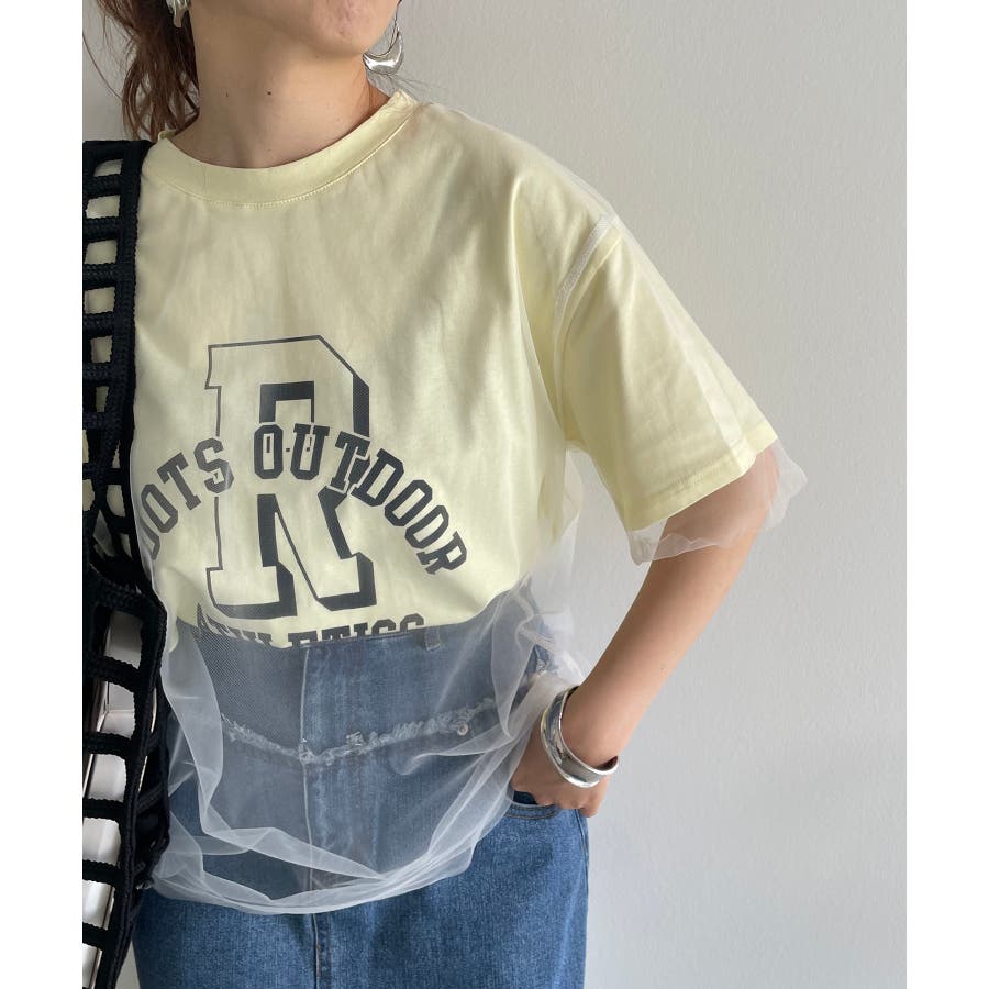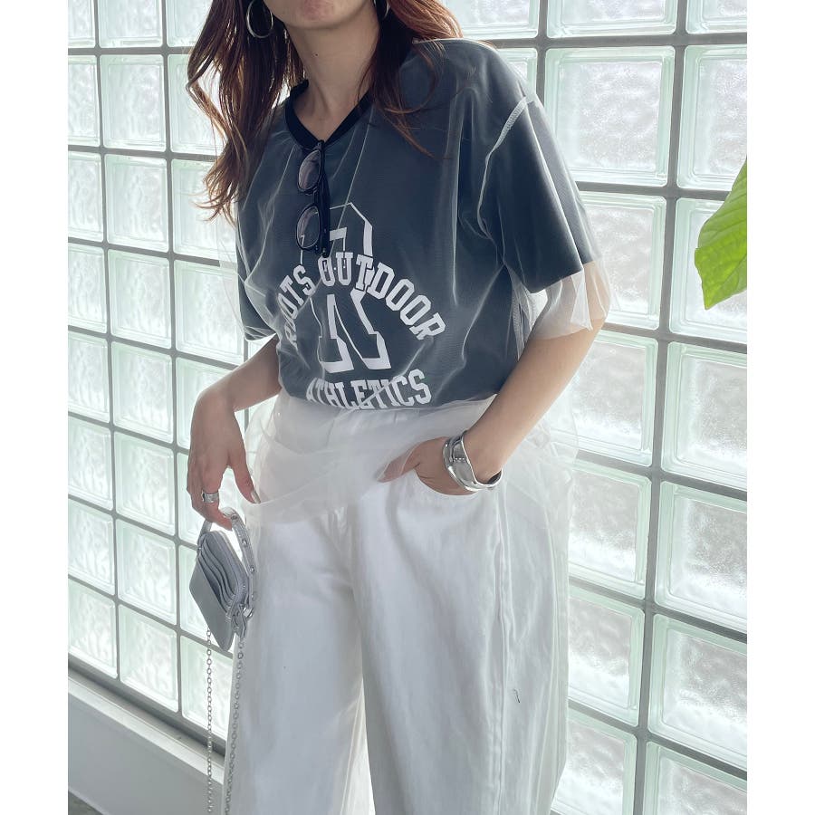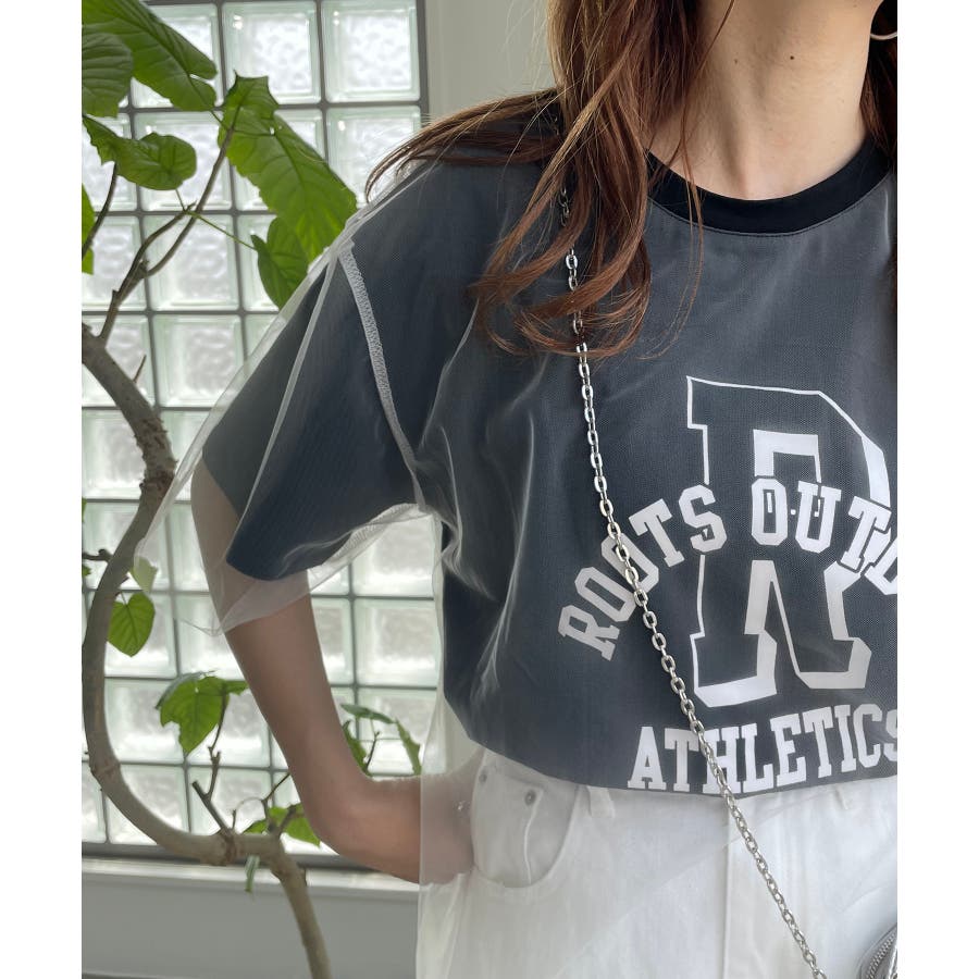 チュールレイヤードカレッジプリントTシャツ