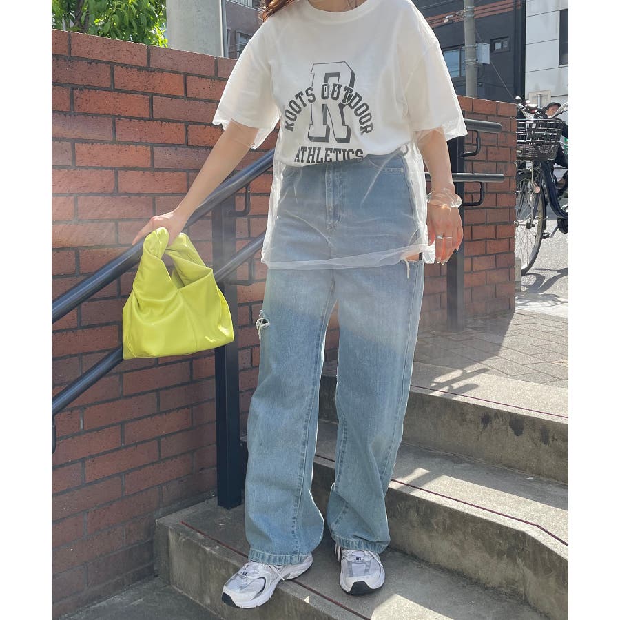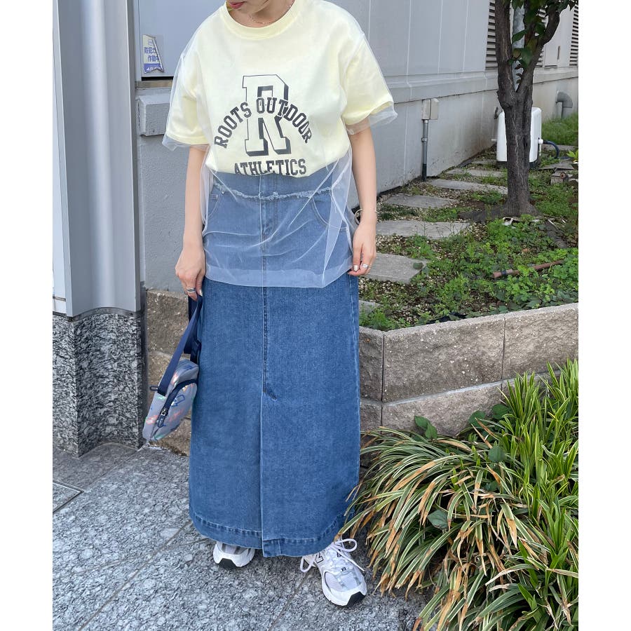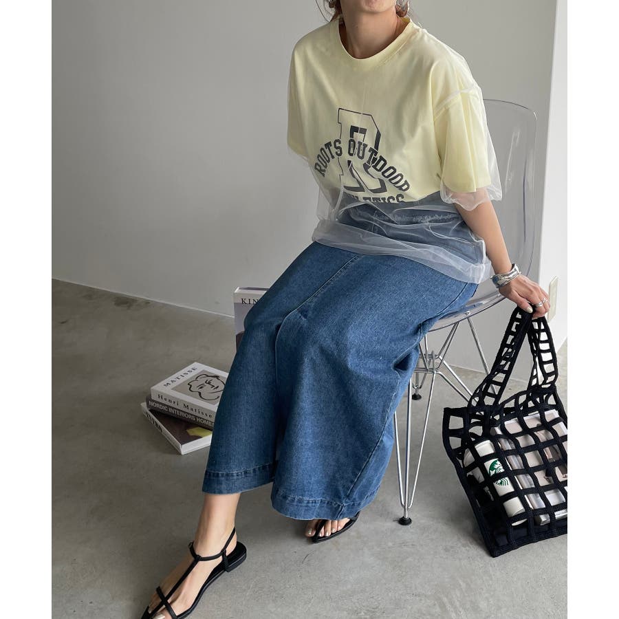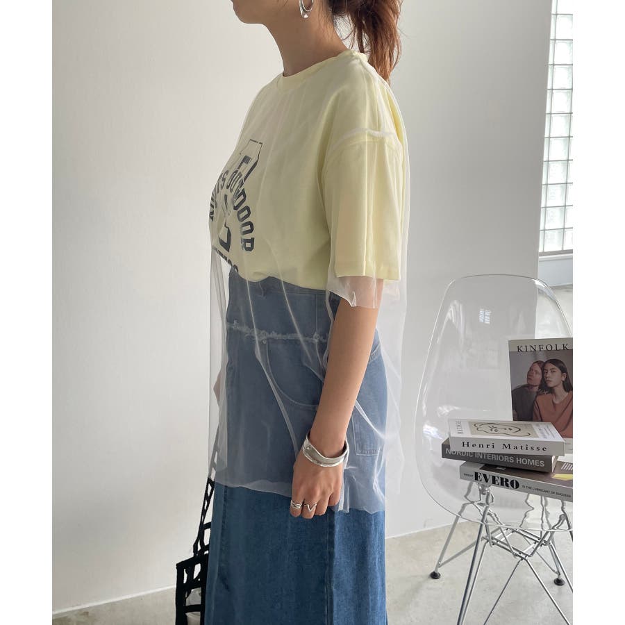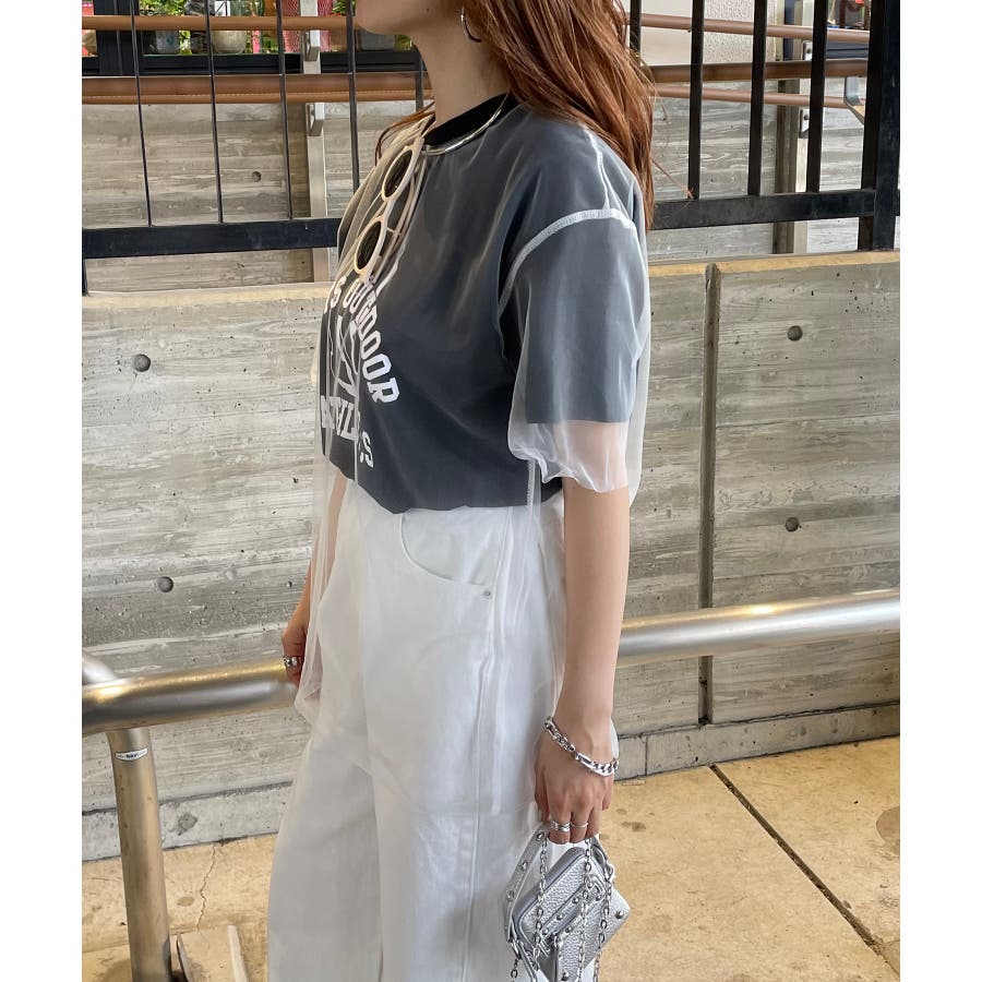 チュールレイヤードカレッジプリントTシャツ