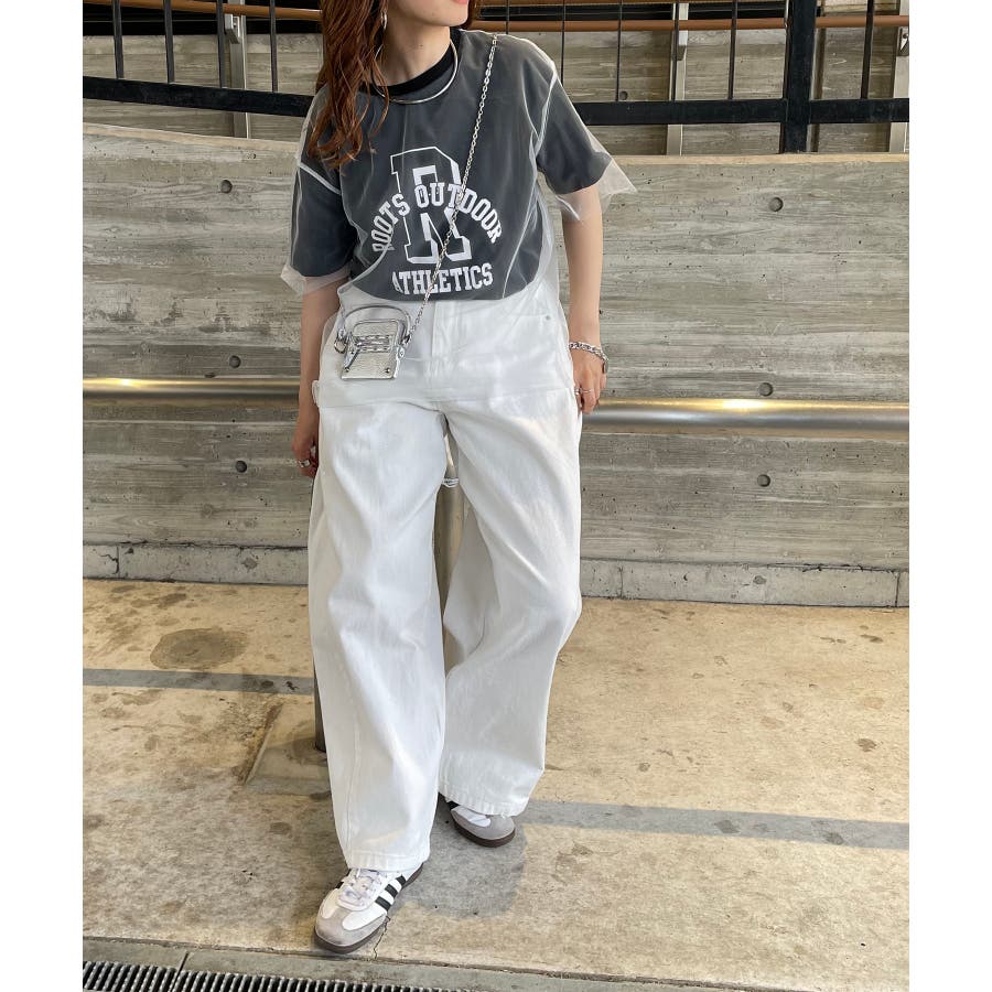 フロントのロゴとレイヤードしたレースが一枚でで着映えするアイテムです。