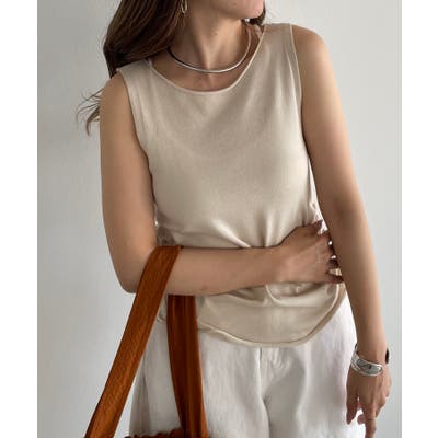 【サイドのスピンドルデザインが一枚でさまになる!デイリーに使えるニットタンク】
