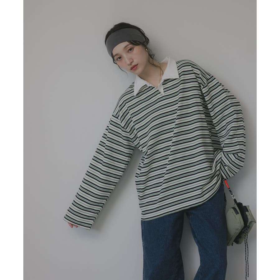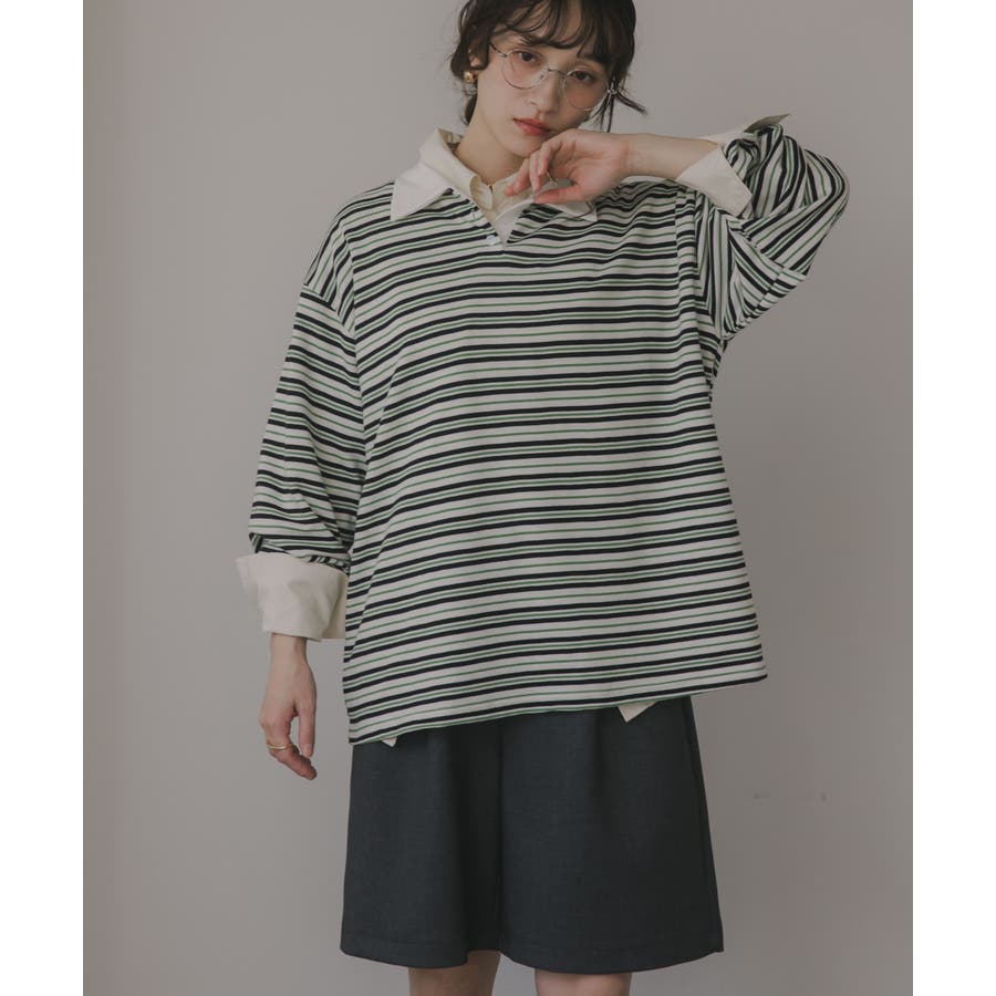 存在感のあるボーダーポロは、スタイリングに取り入れるだけで旬なムードを演出。