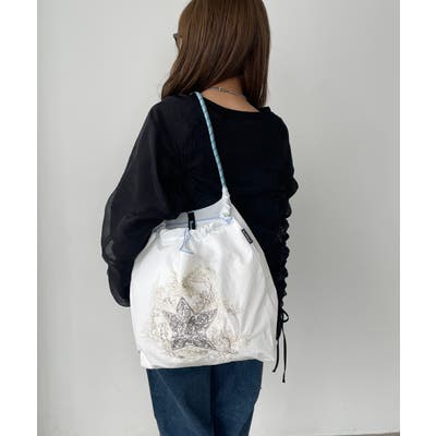コードショルダーとパッケージモチーフの刺繍の組み合わせが可愛いバッグ。
