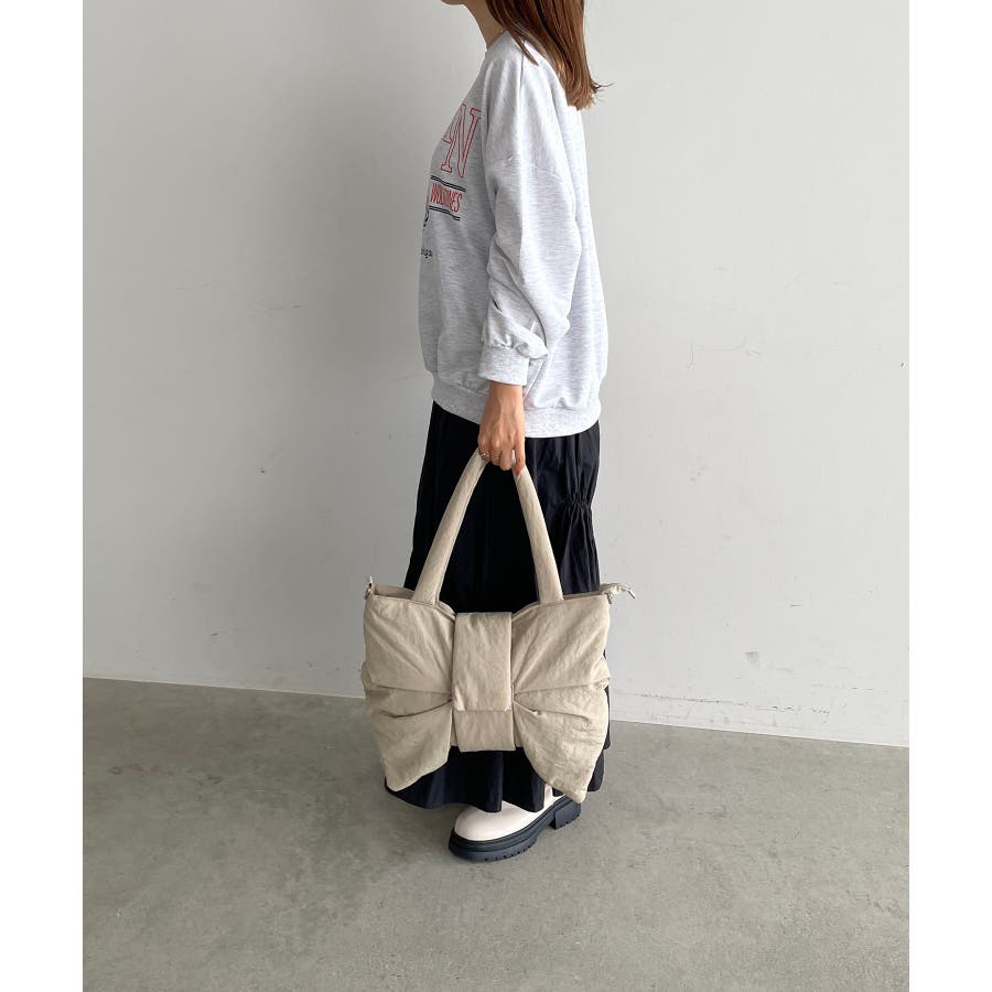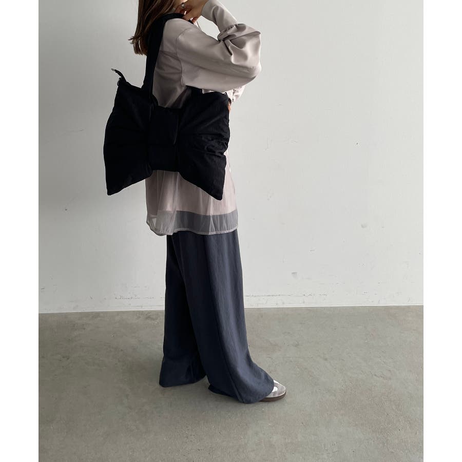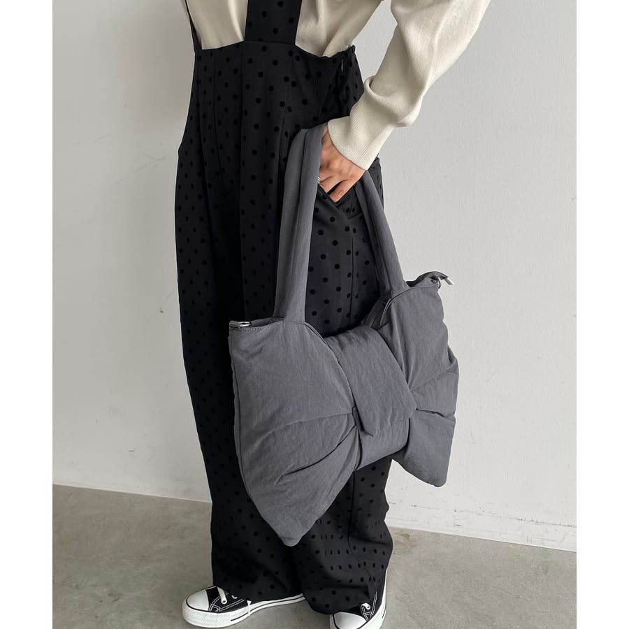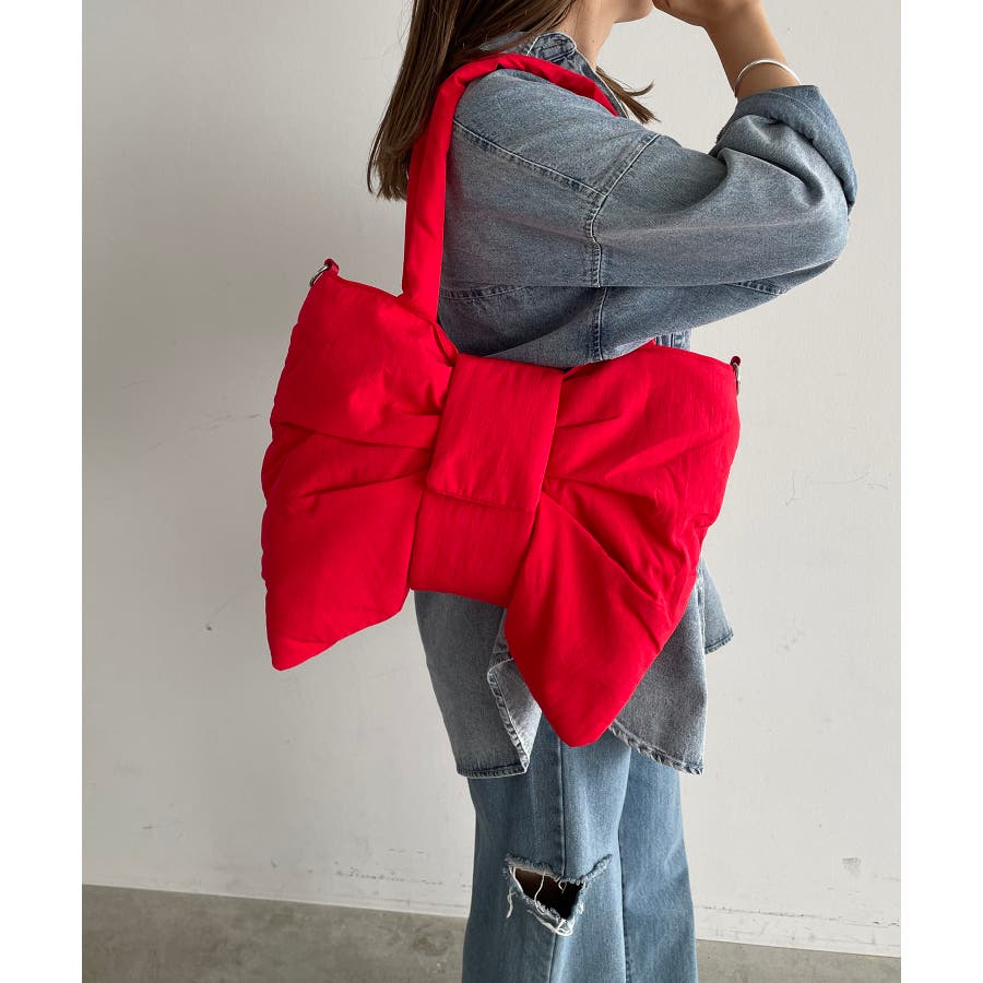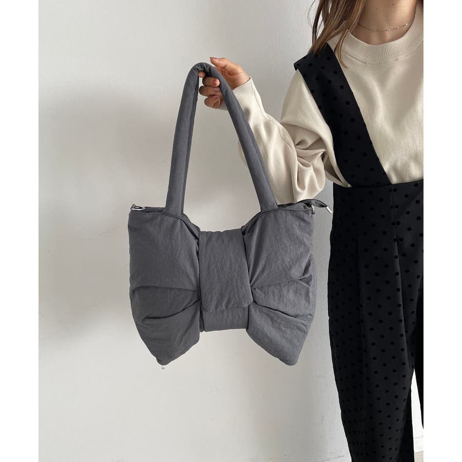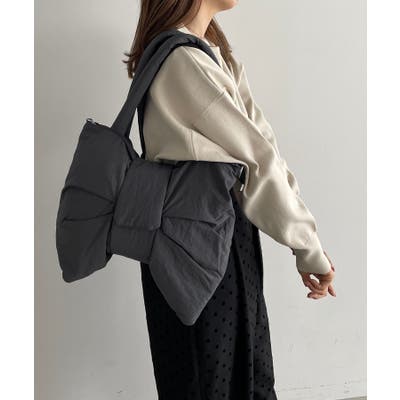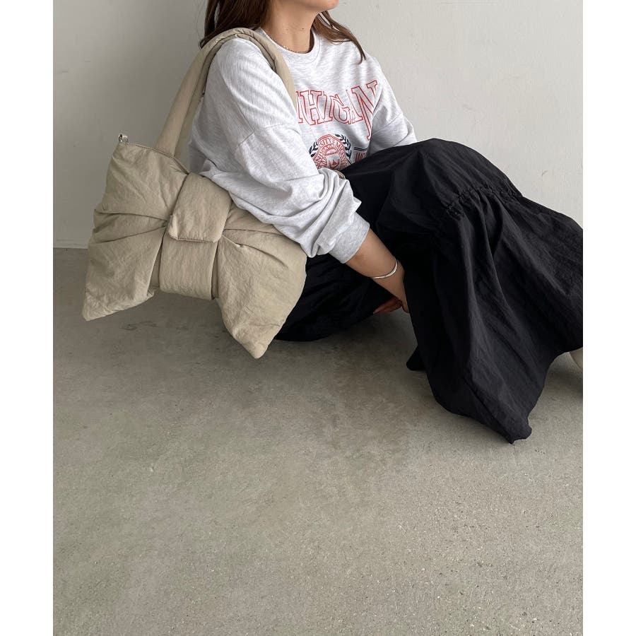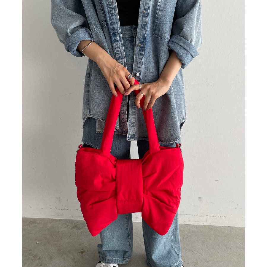 【リボンの形が目を惹くナイロン素材のショルダーバッグ】