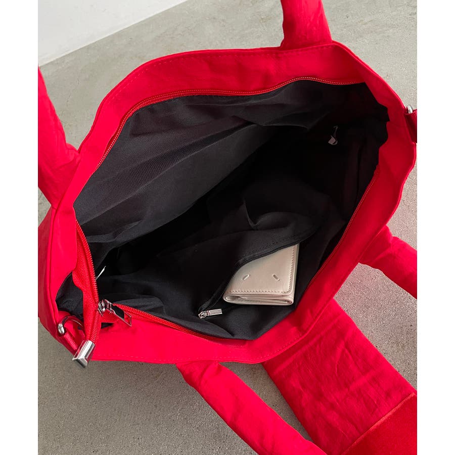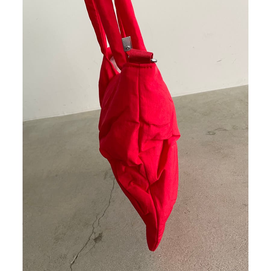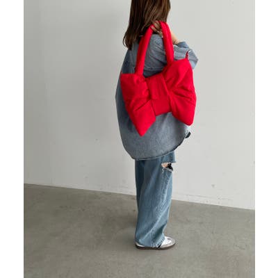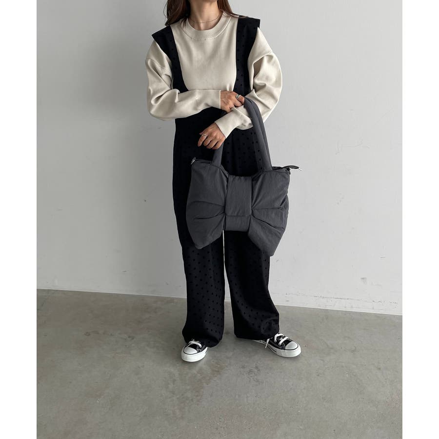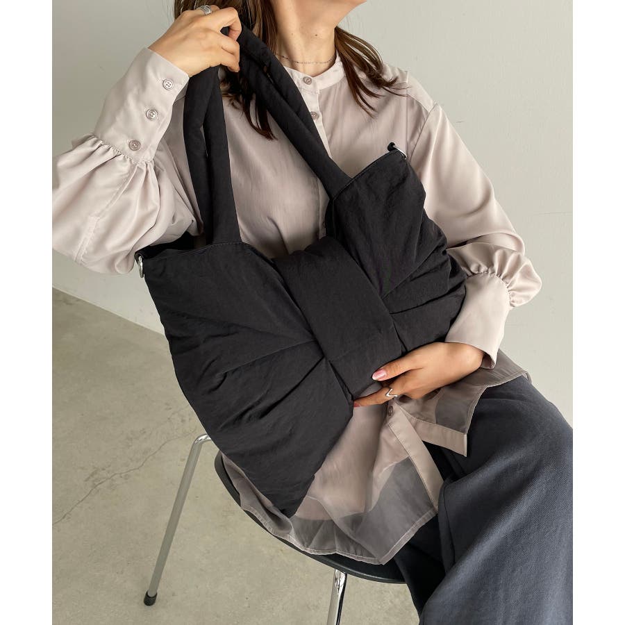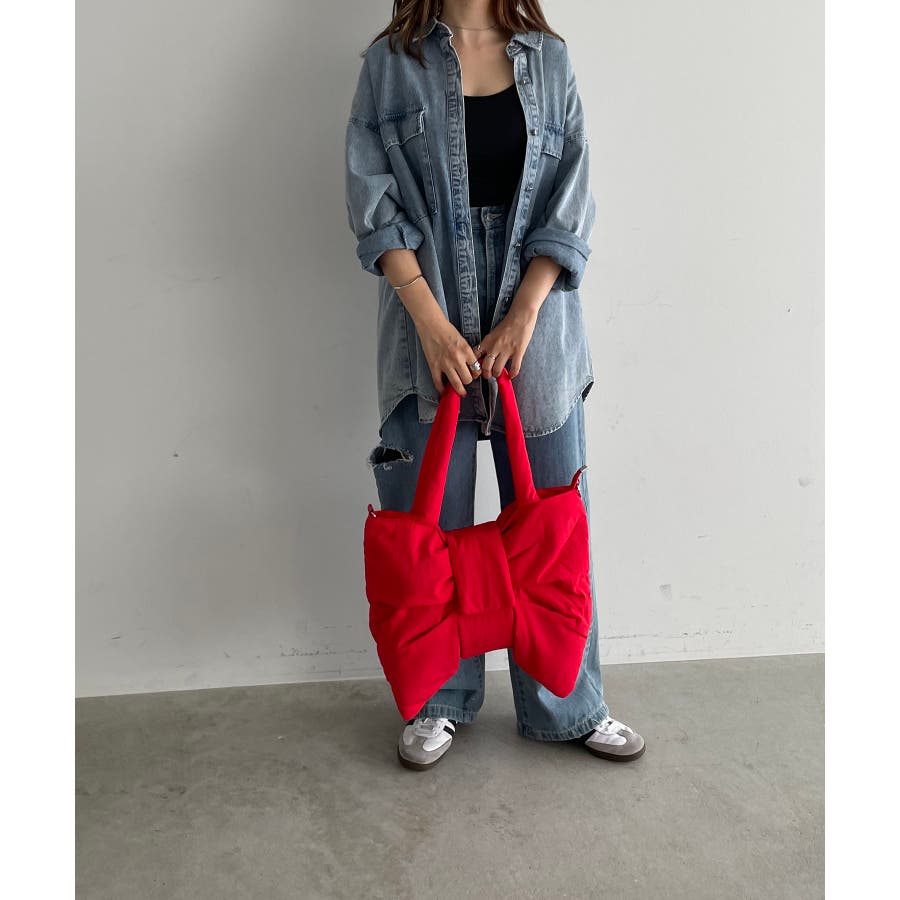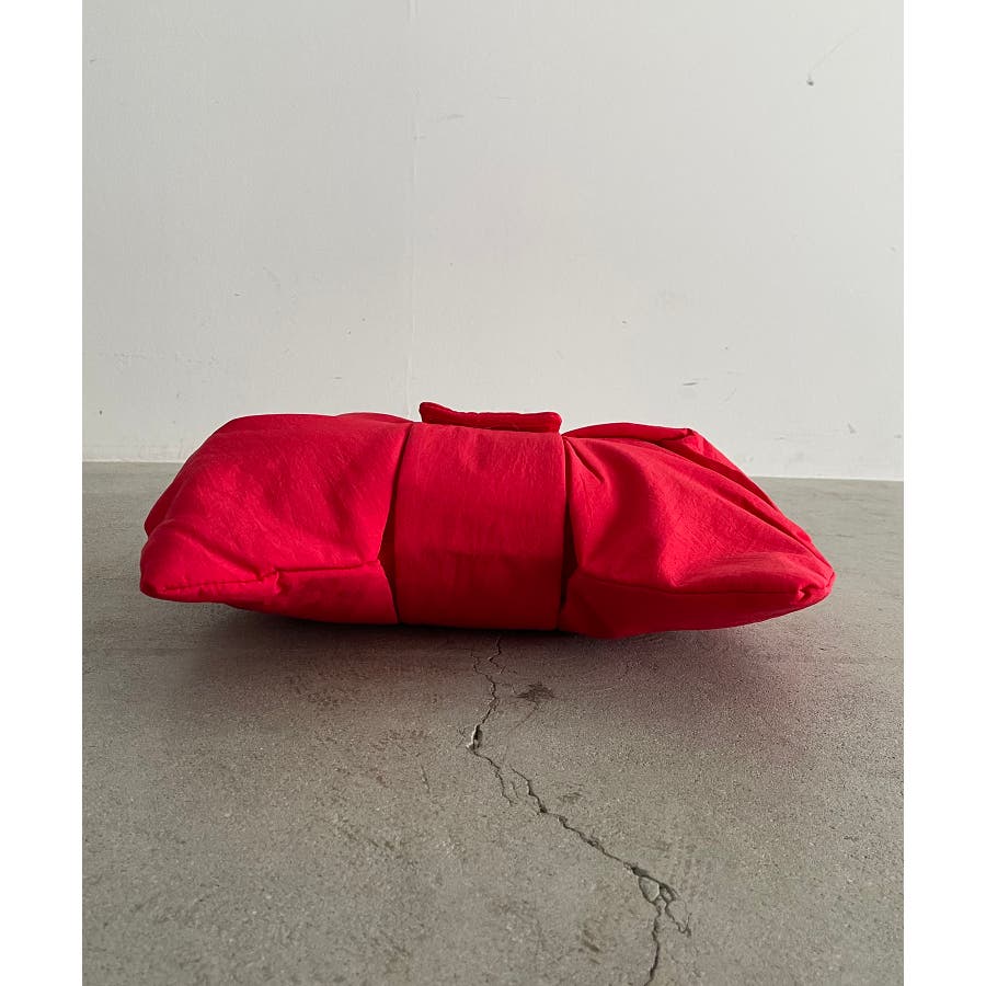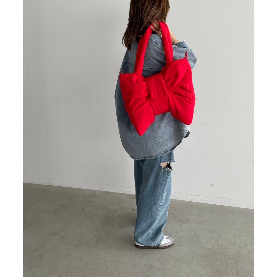 【リボンの形が目を惹くナイロン素材のショルダーバッグ】