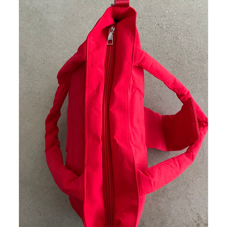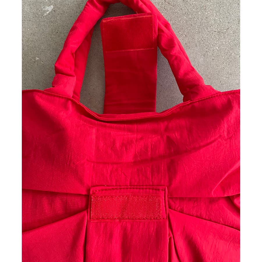 お洋服に馴染みの良いくたっとした生地感と軽量素材でストレスフリーに使用可能。