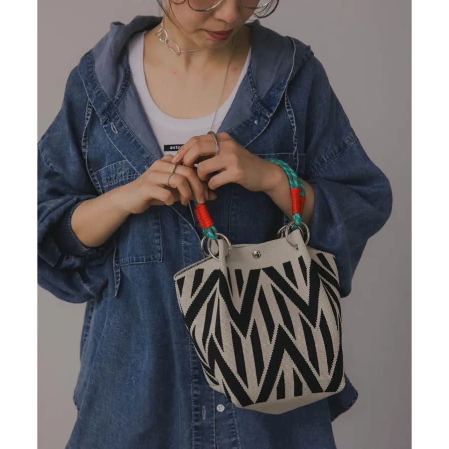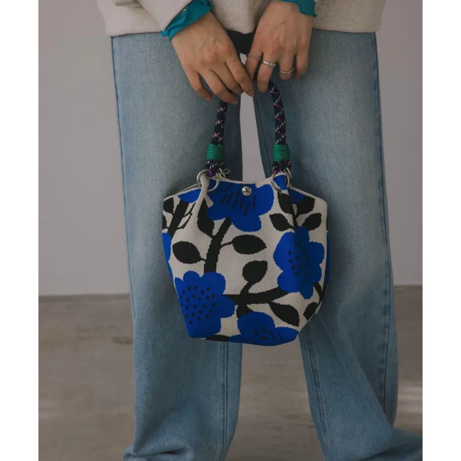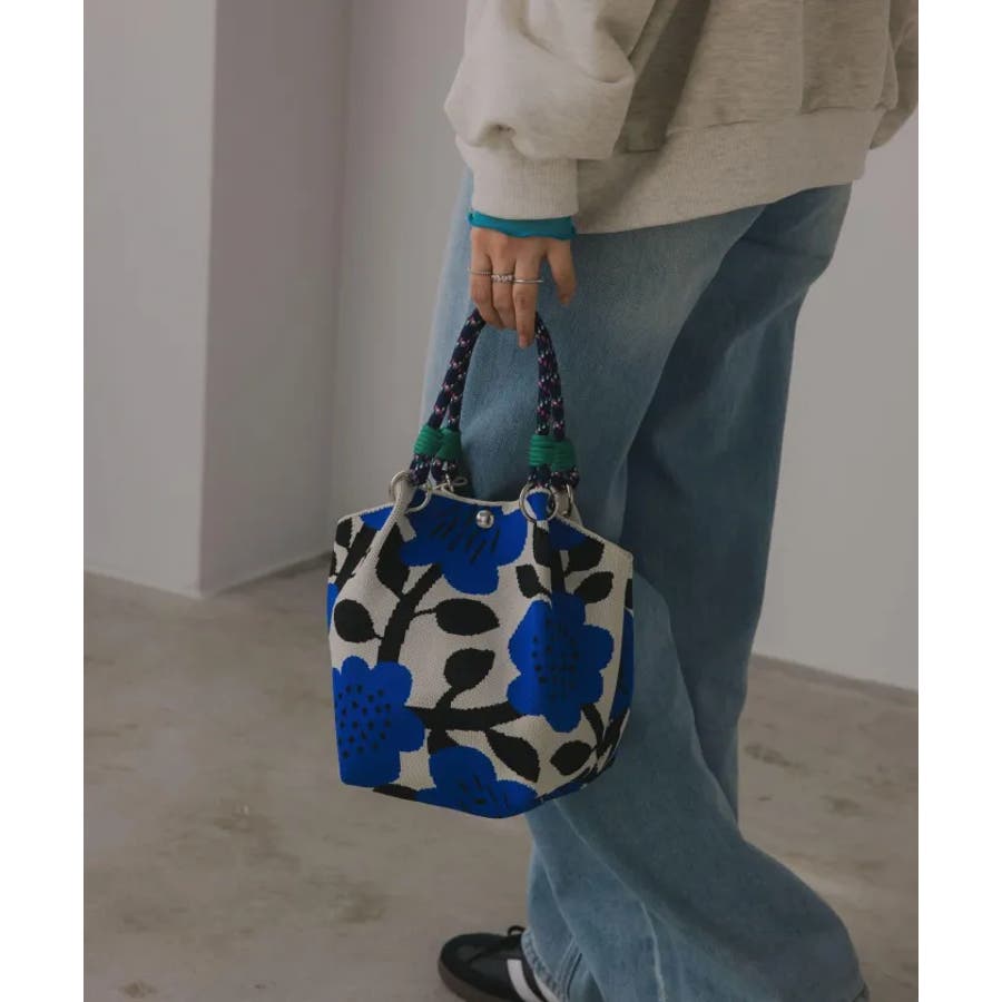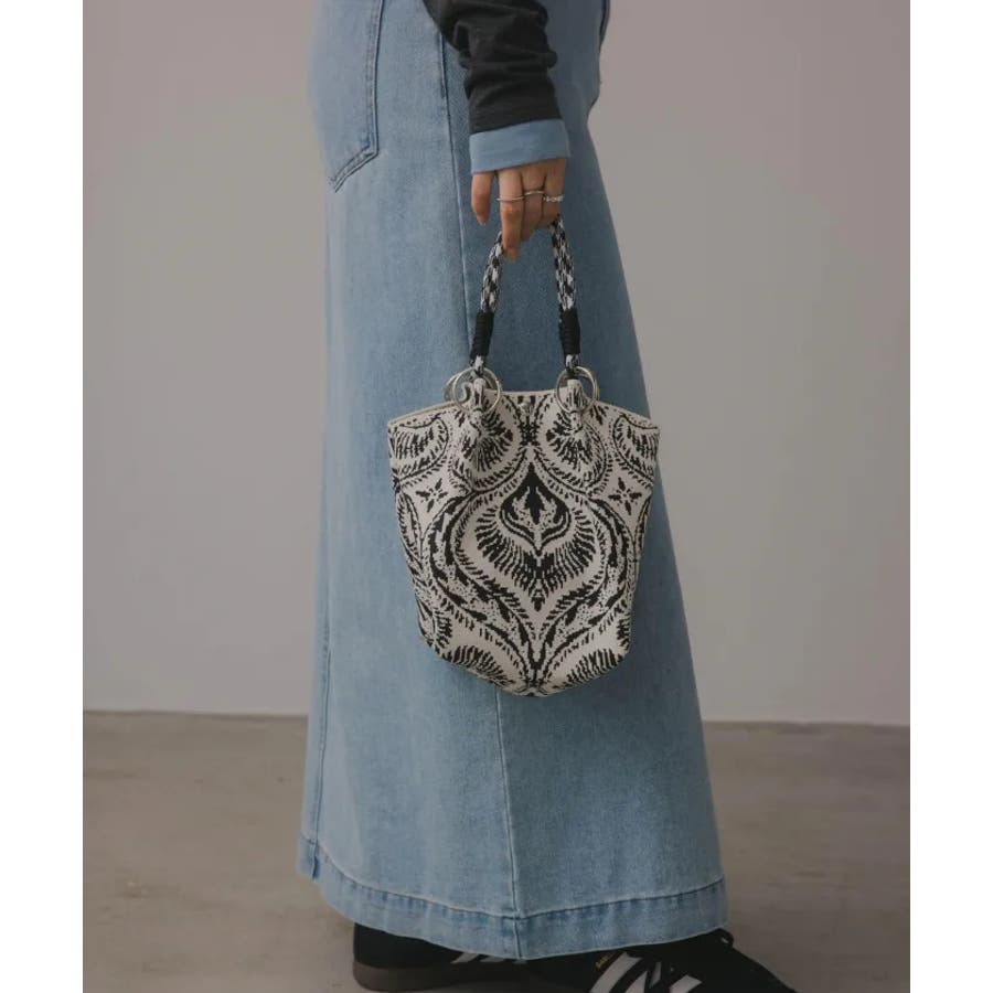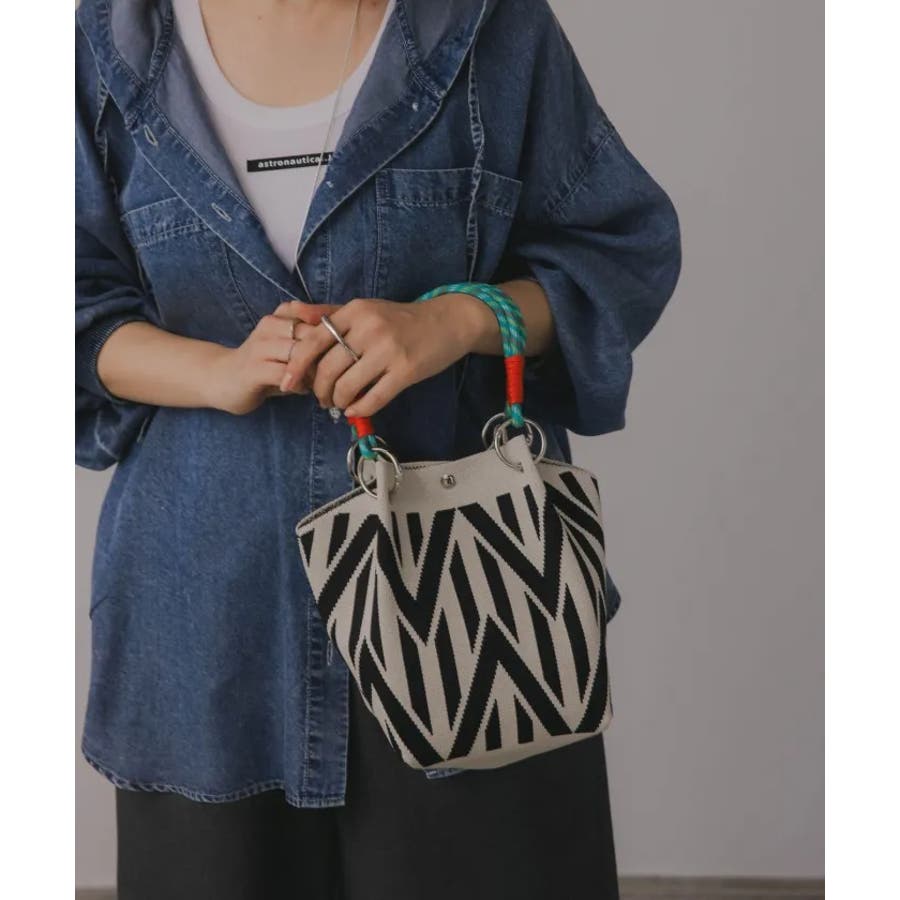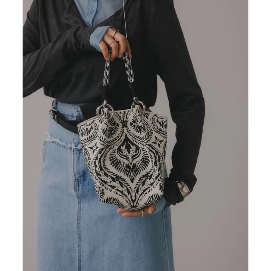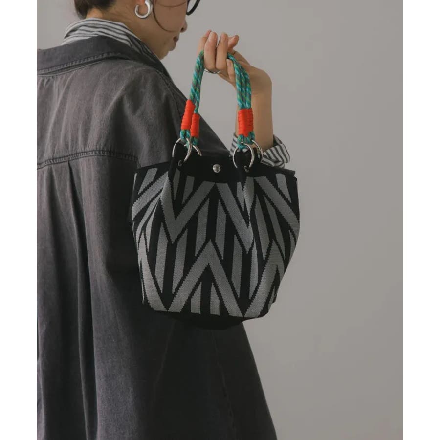 【個性的な柄が目を引くニットハンドバッグ】