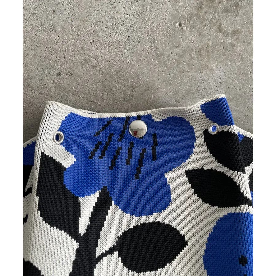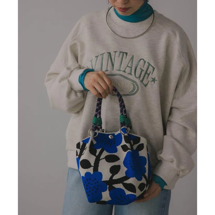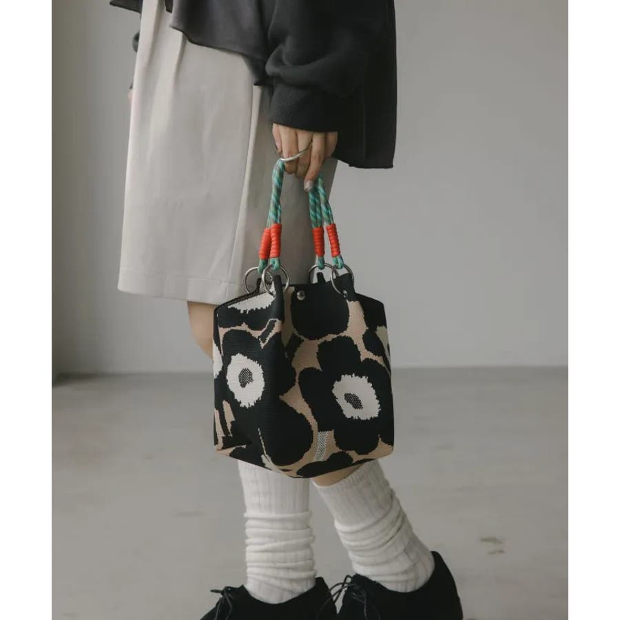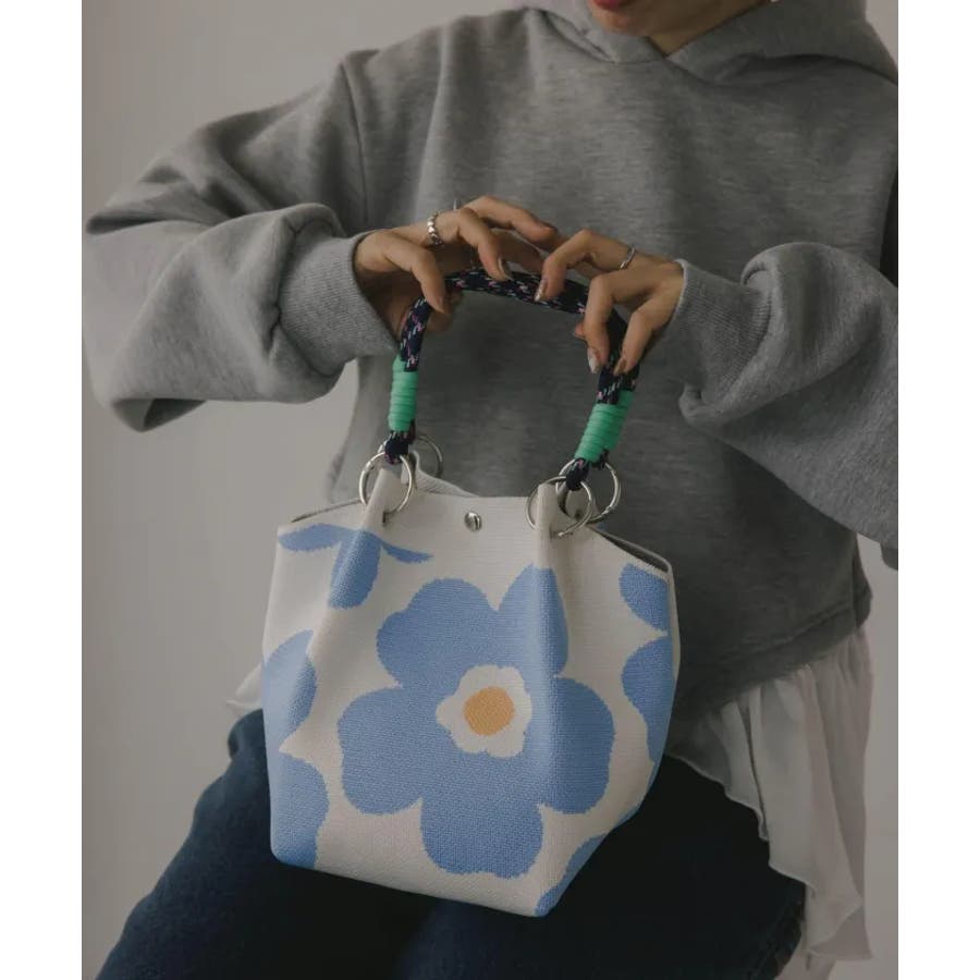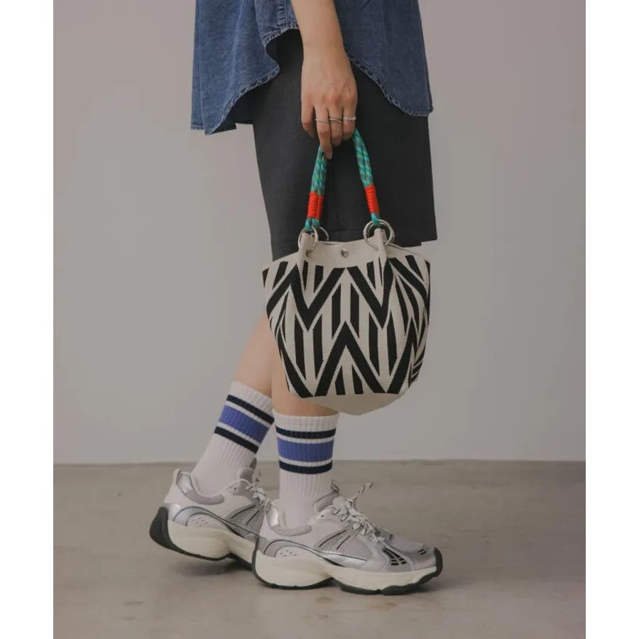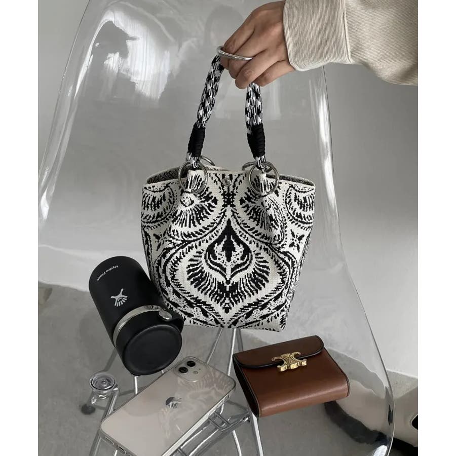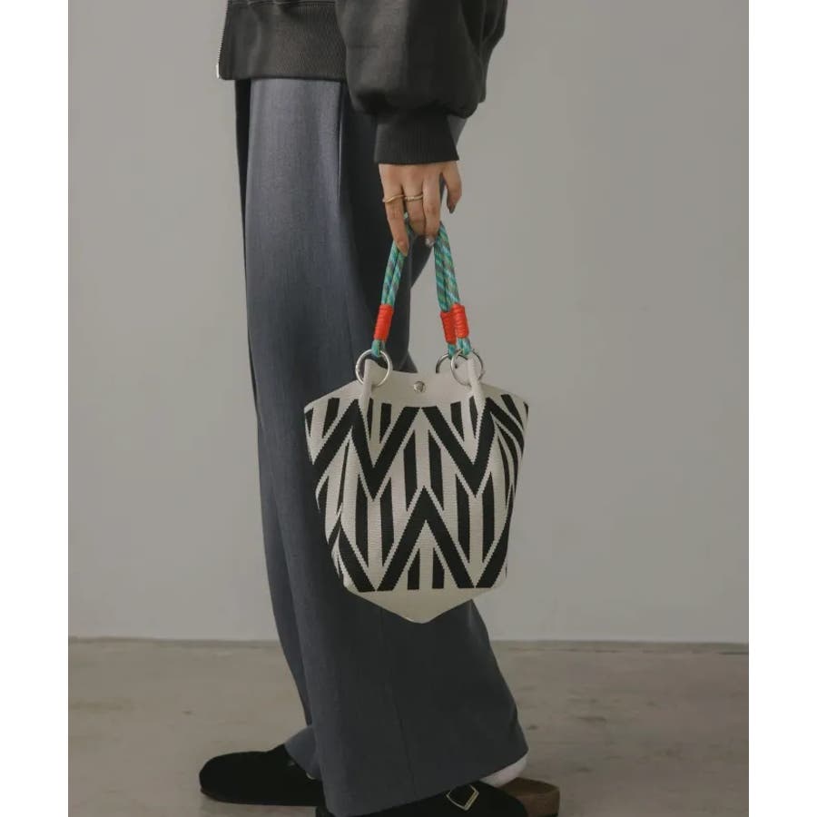 【個性的な柄が目を引くニットハンドバッグ】