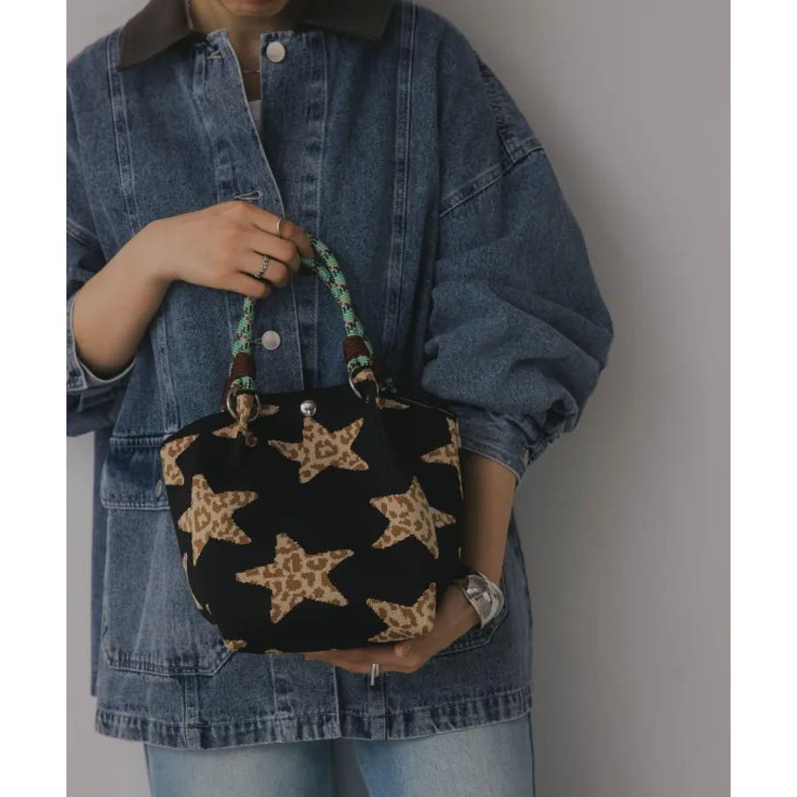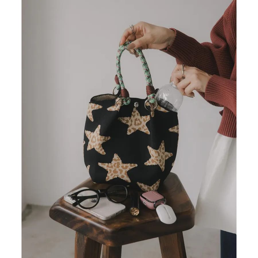 【新色レオパードシリーズを追加!】コードストラップ 柄 ニット ハンドバッグ