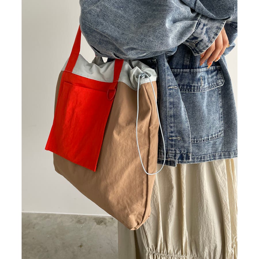 【フラップポケットの配色が目を惹くナイロン素材のショルダーバッグ】