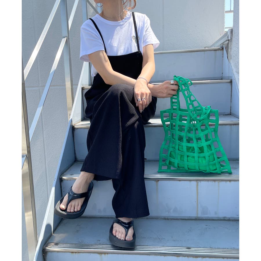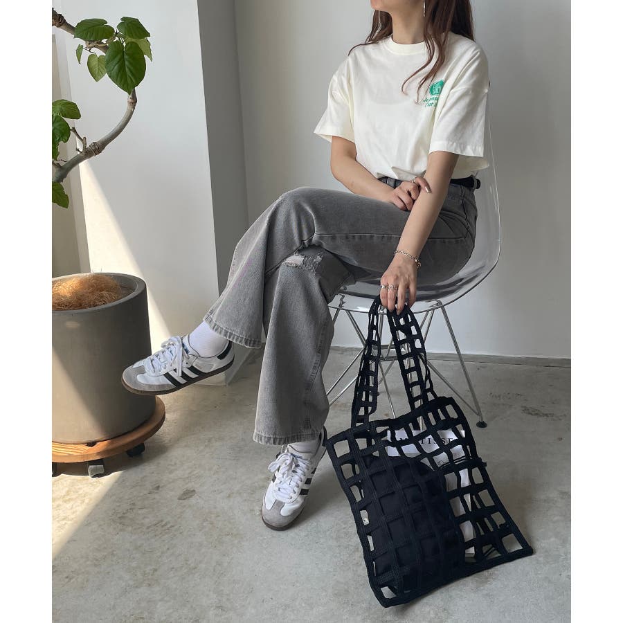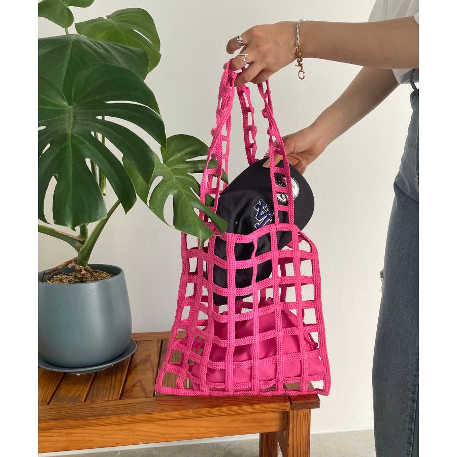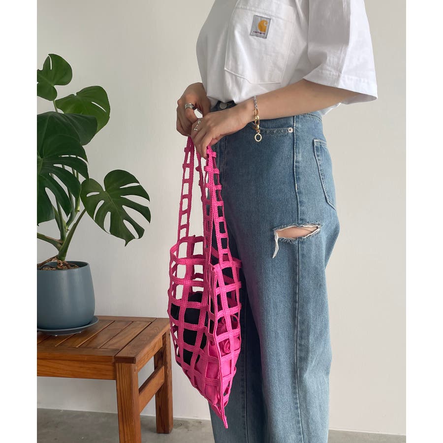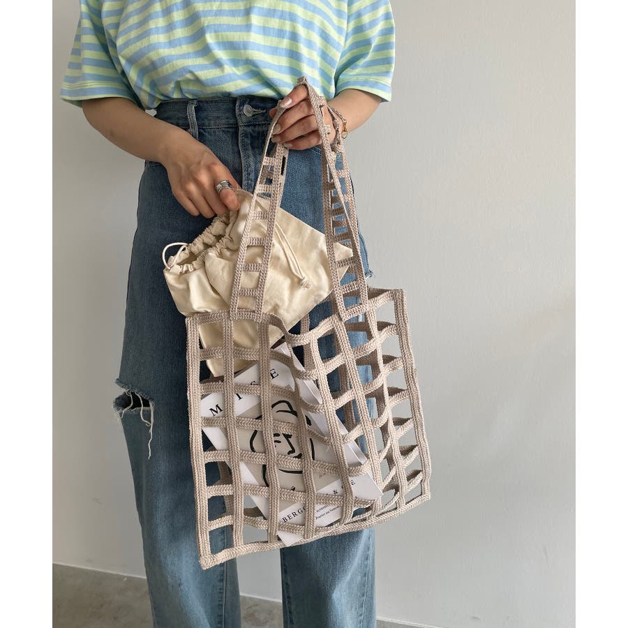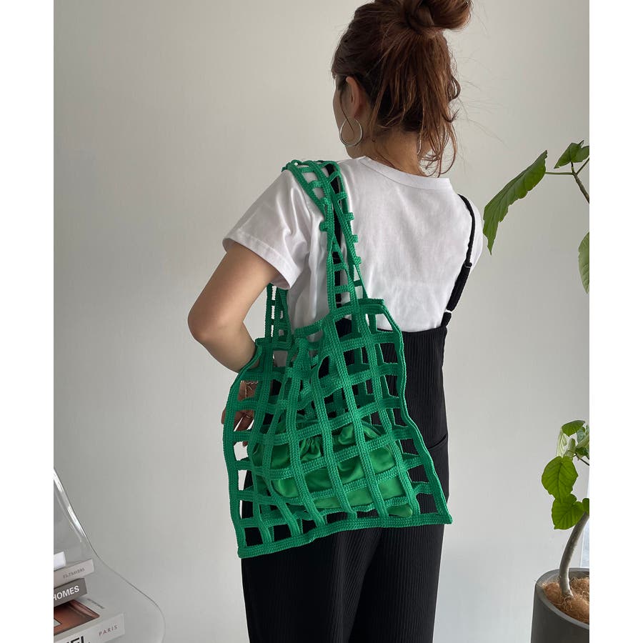 メッシュ編みの抜け感のあるテクスチャーがスタイリングにカジュアルなアクセントを加えてくれるニットトートバッグ。