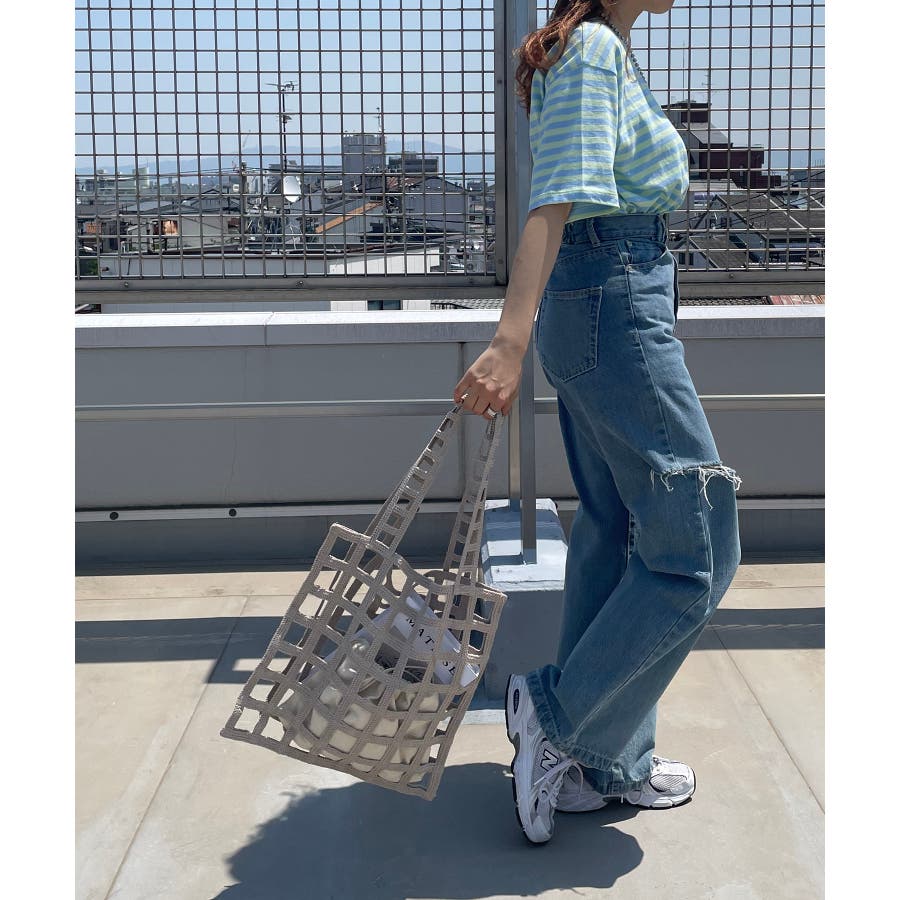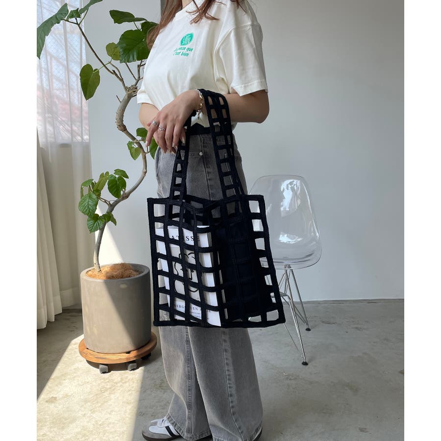【抜け感のある透かしメッシュデザインのトートバッグ】