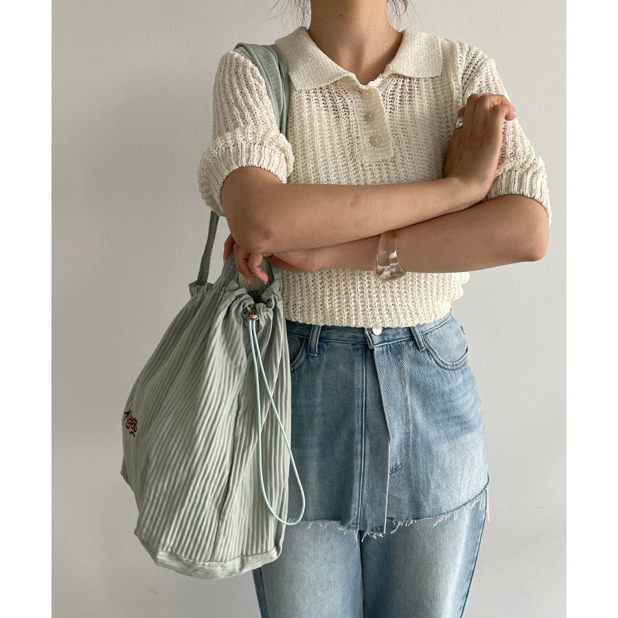 開閉はドロストコードで紐をキュッと絞れば、ギャザーが寄って巾着型のような雰囲気にもなります。