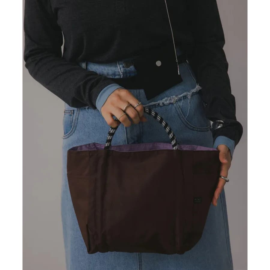 ハンドル部分は重たい荷物でもしっかりと持つことができ、トレンド感もあるロープハンドルです。