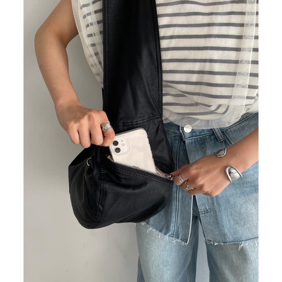 ソフトフェイクレザーハーフムーンショルダーバッグ