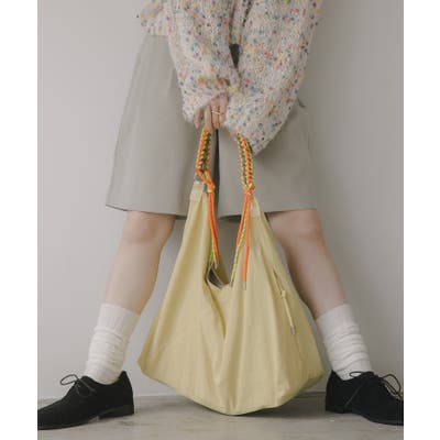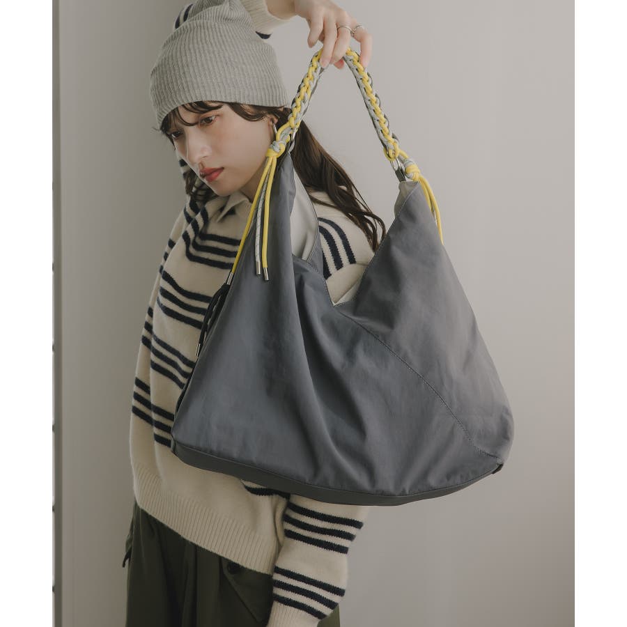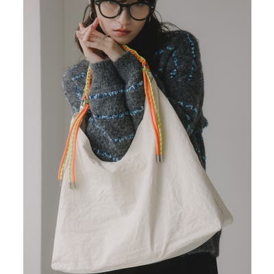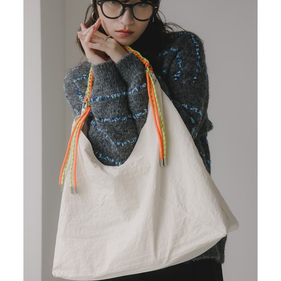 【配色のドローコードが目を惹くナイロン素材のショルダーバッグ】