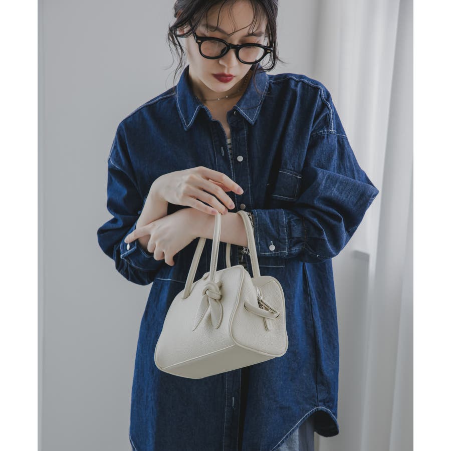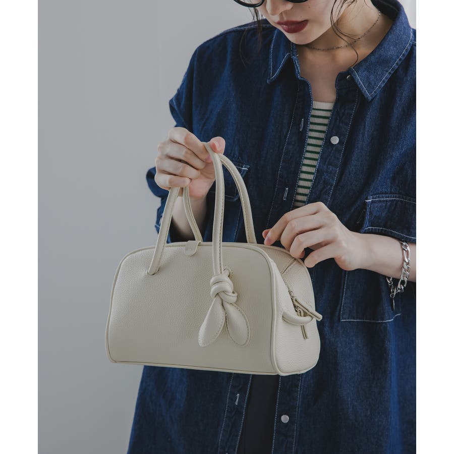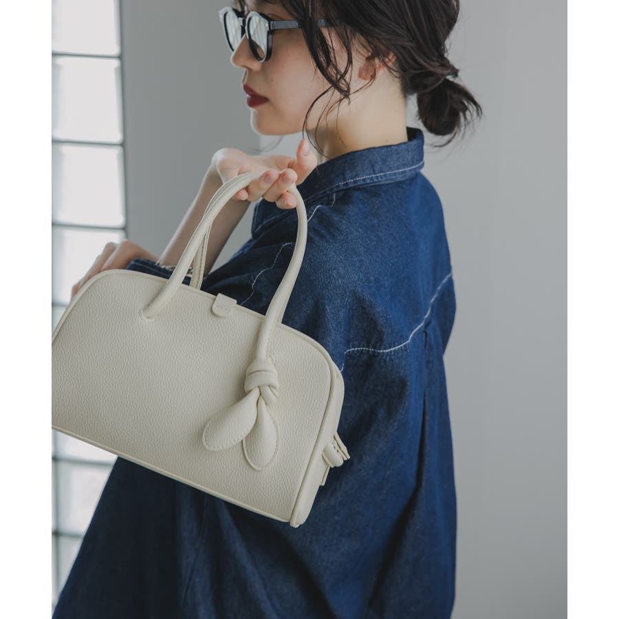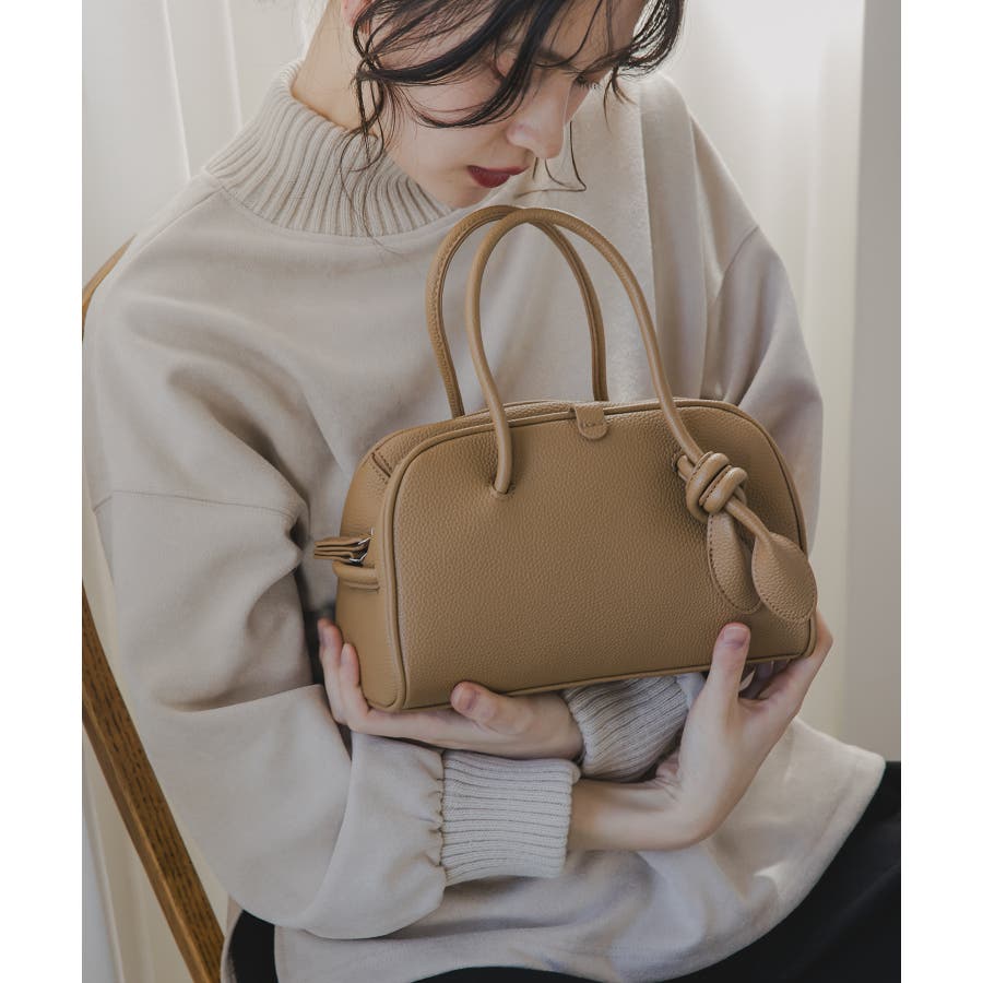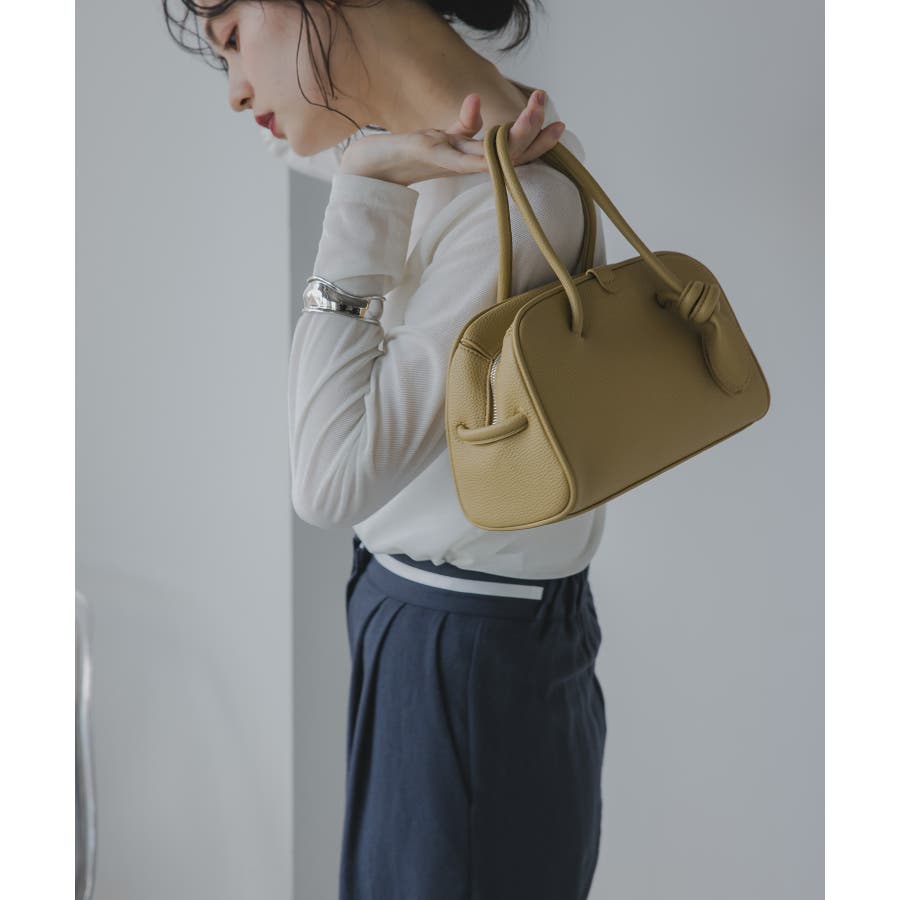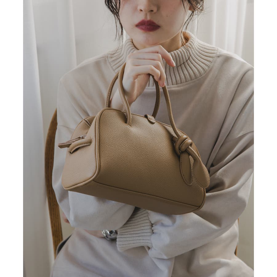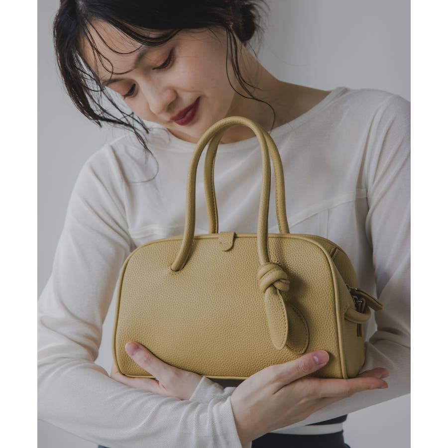 軽くて、柔らかな質感のフェイクレザーミニボストンバッグ。
