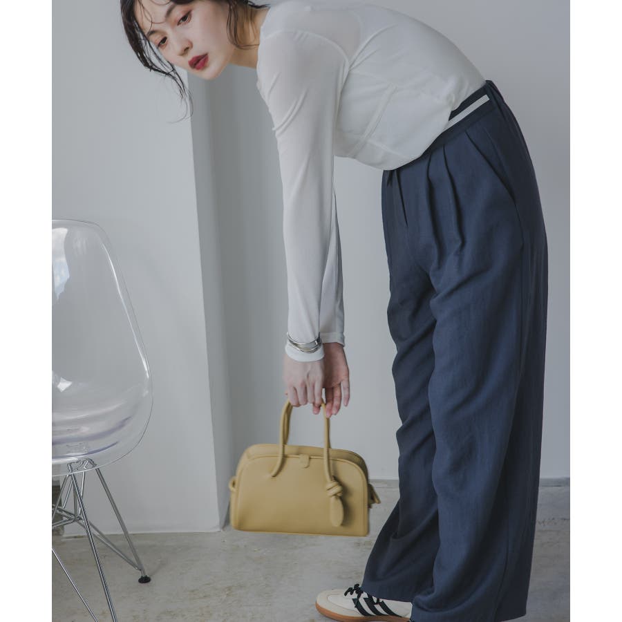 フェイクレザーのマットな質感が、上品できちんと見えする優秀アイテム。