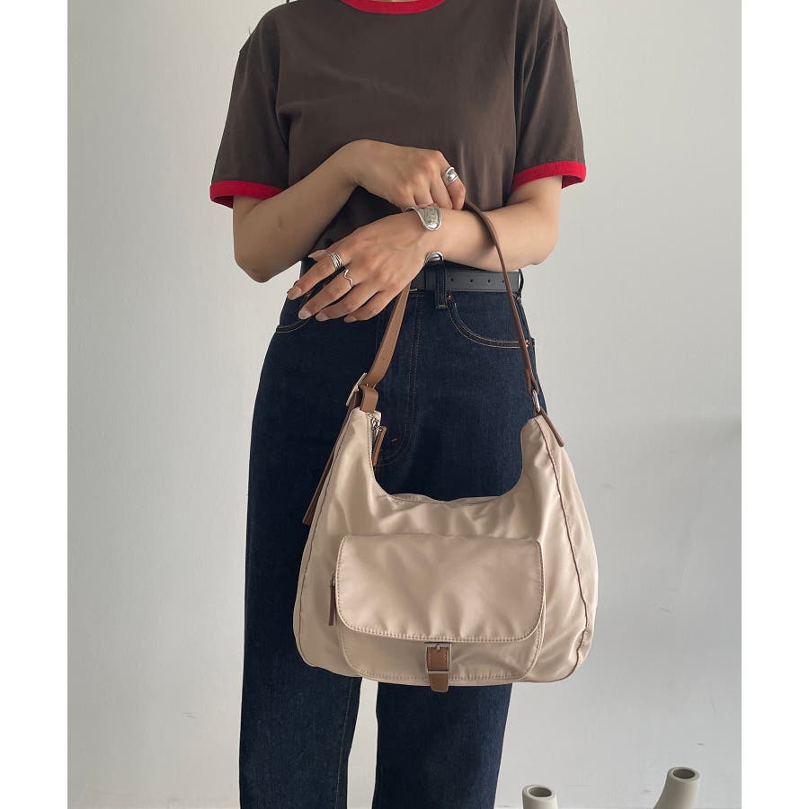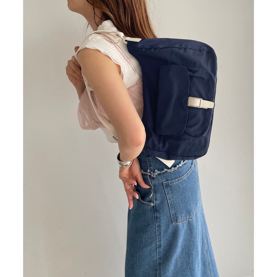 ショルダー部分とポケットに使ったフェイクレザーがタウンシーンにマッチします。
