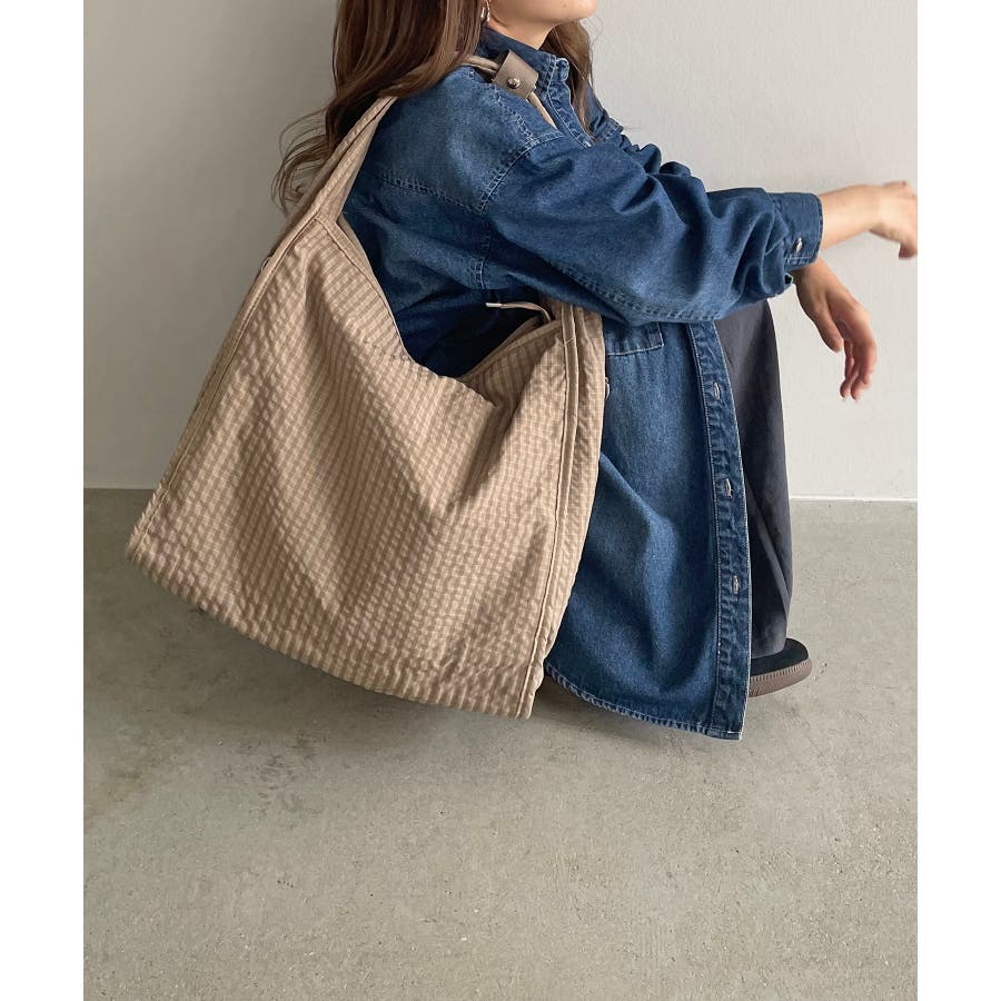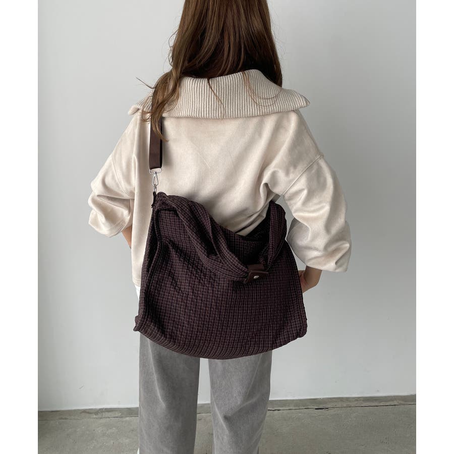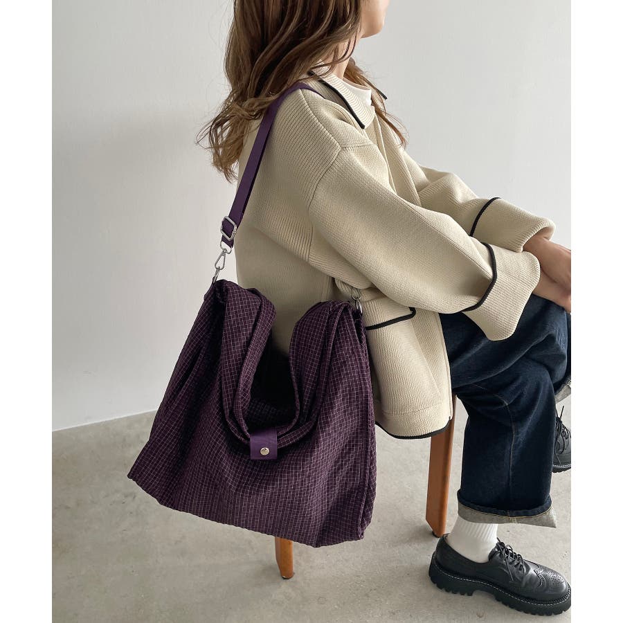 【立体感のあるチェック柄がキャッチーなショルダーバッグ】