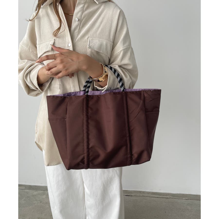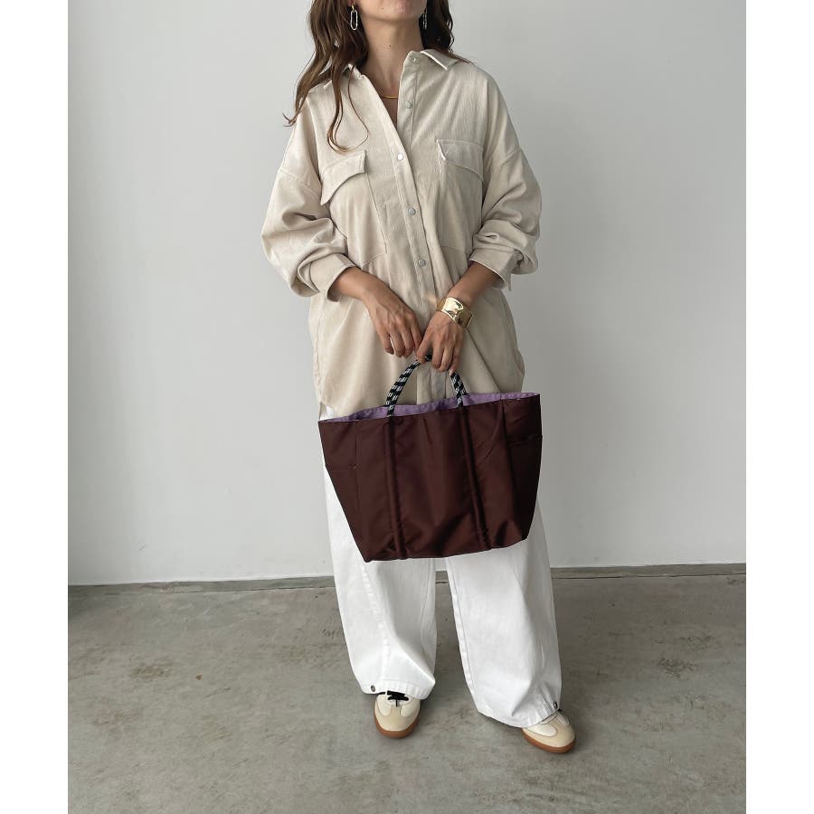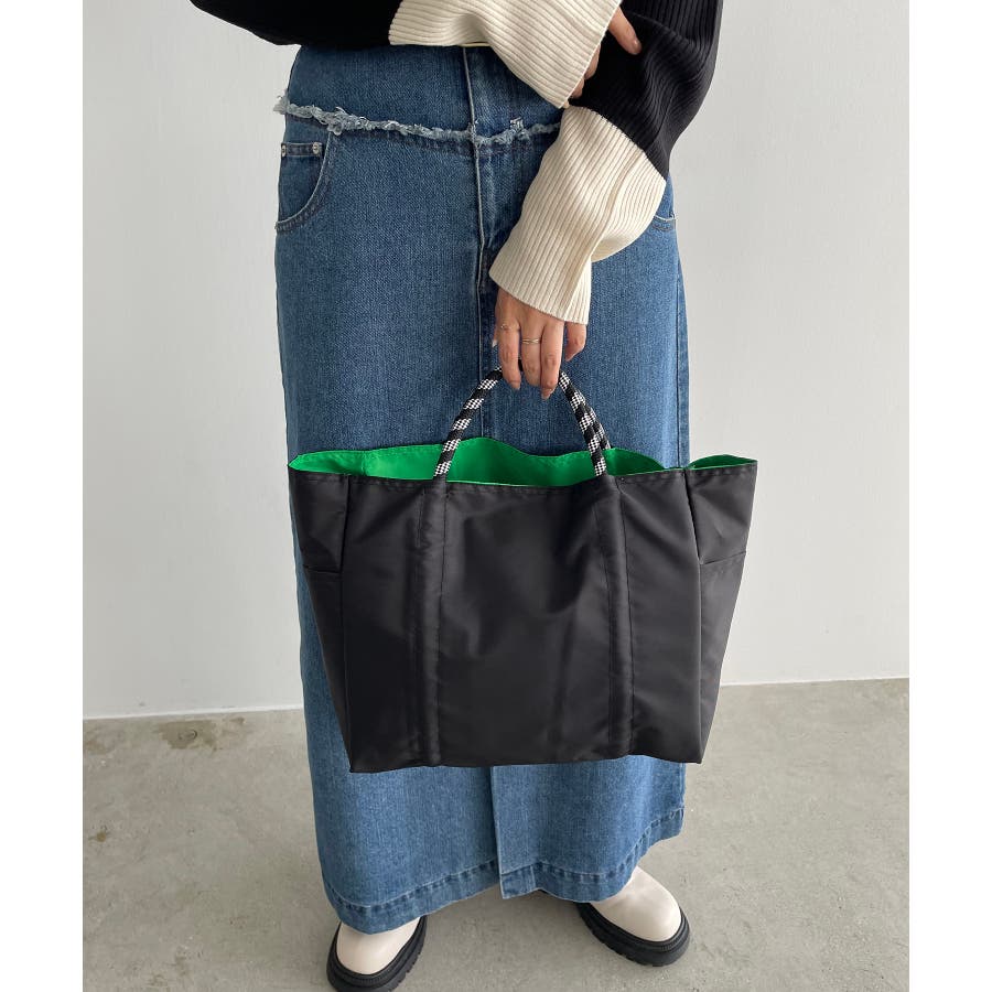 リバーシブル仕様で、カラー配色がかわいいバッグです。