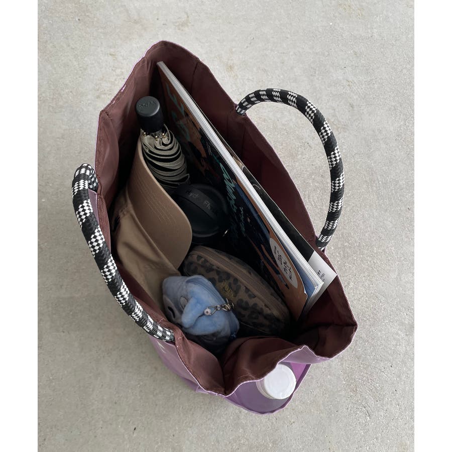 ハンドル部分は重たい荷物でもしっかりと持つことができ、トレンド感もあるロープハンドルです。