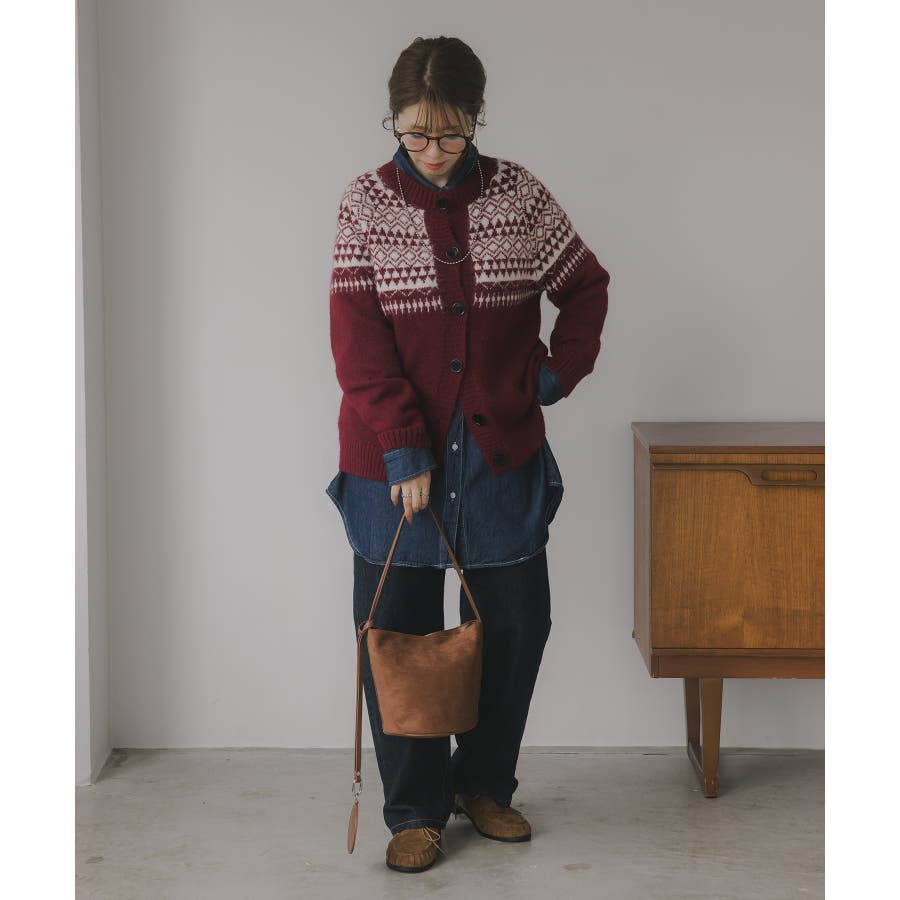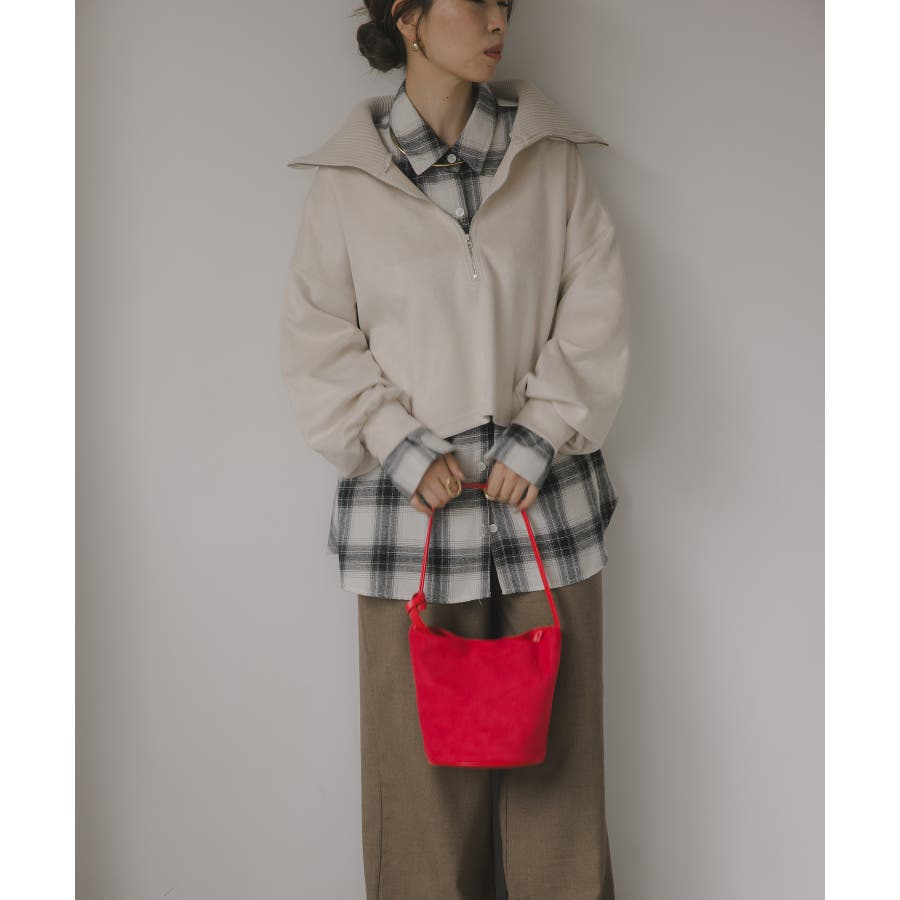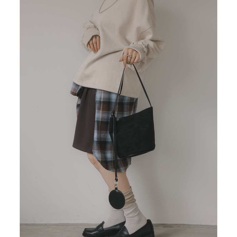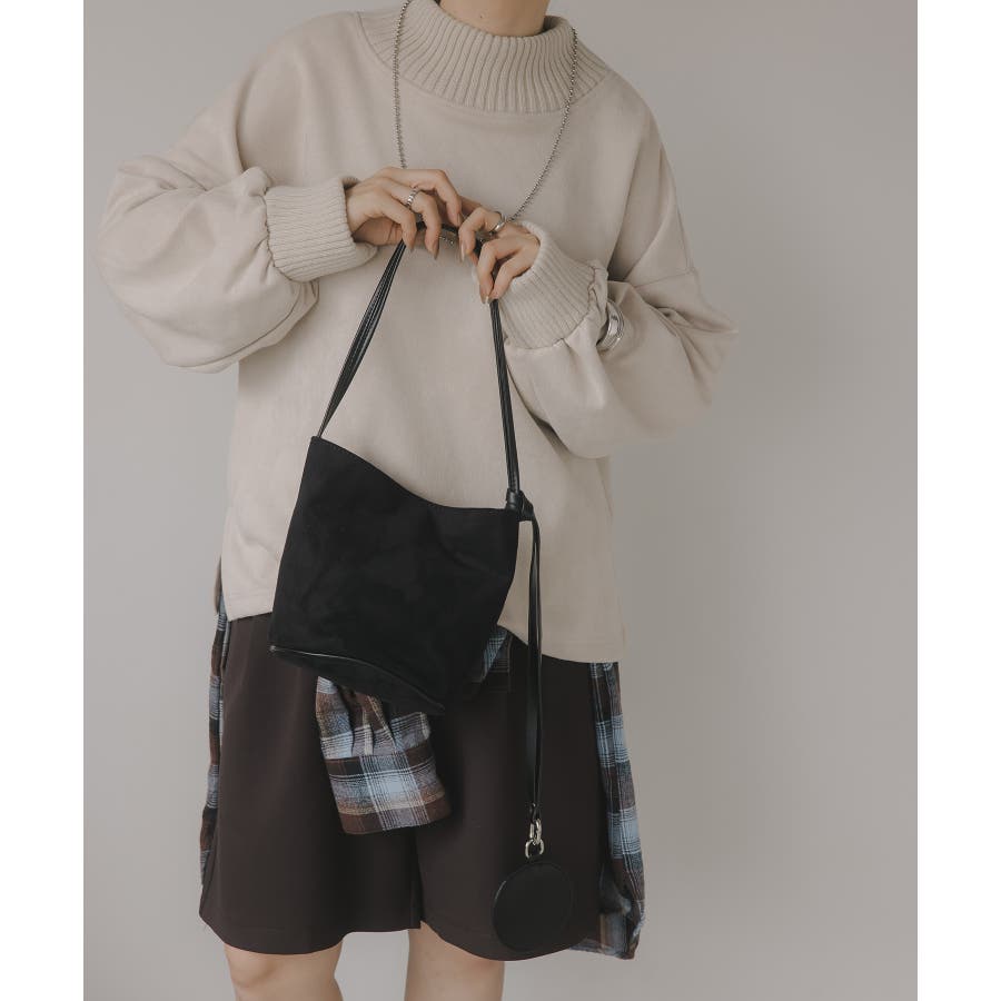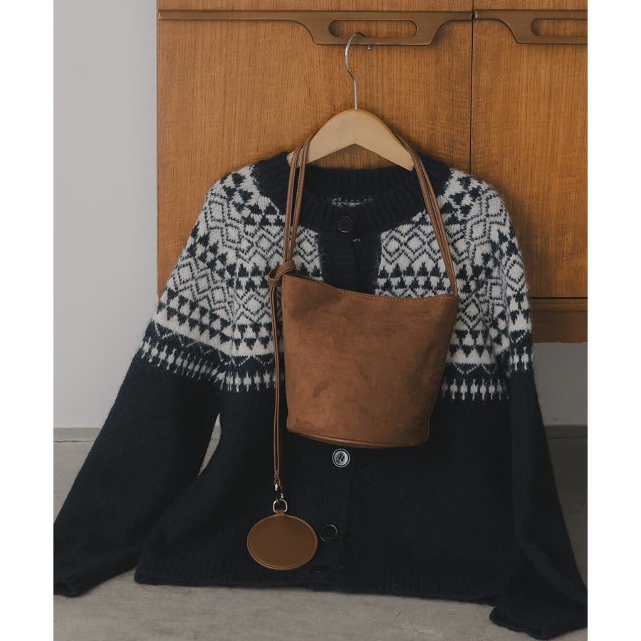 トレンド素材のスエードの風合いと丸いレザーチャームがシーズンライクなバッグ。