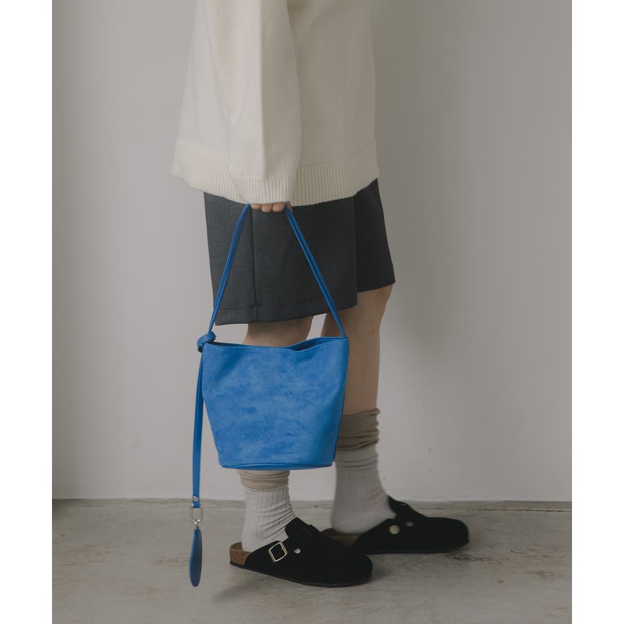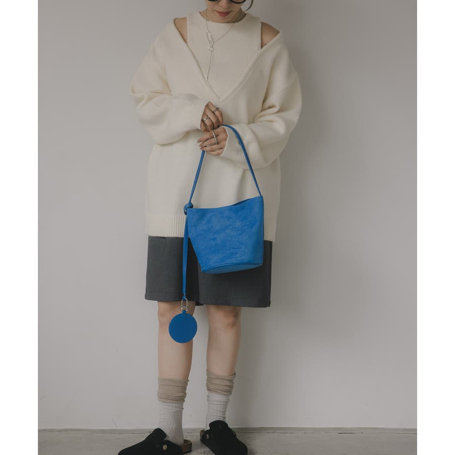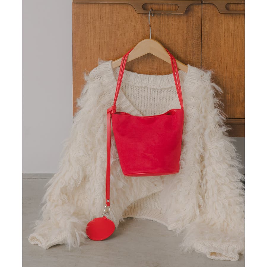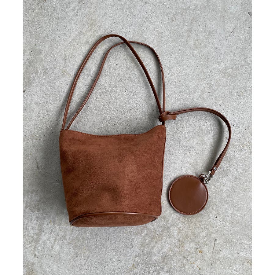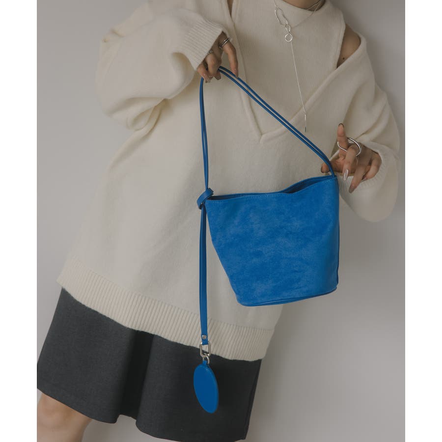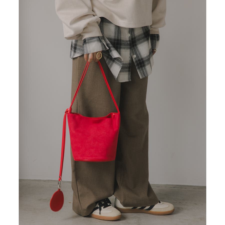 【チャーム付】フェイク スエード バケツ ショルダーバッグ