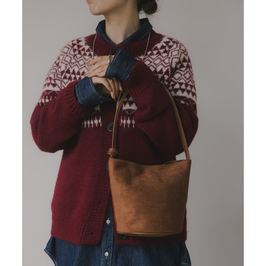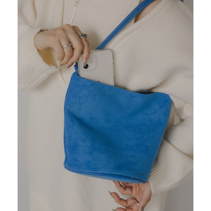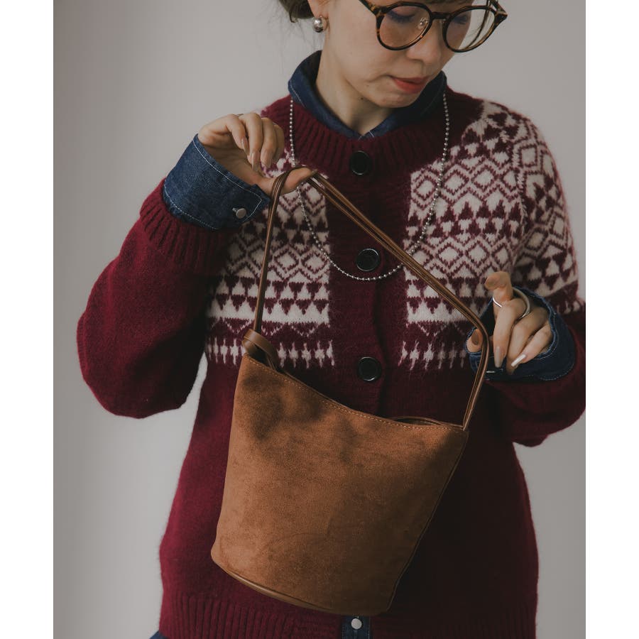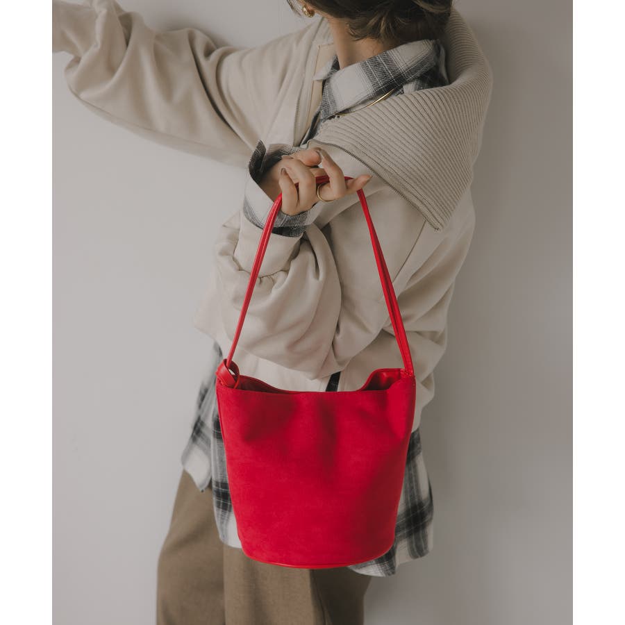 【トレンドのフェイクスエード素材のバケツ型ショルダーバッグ】