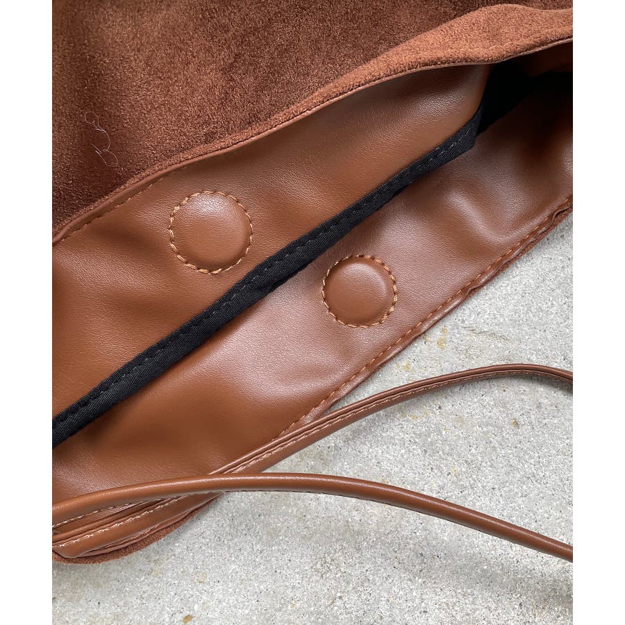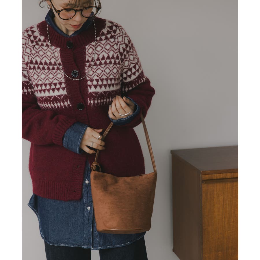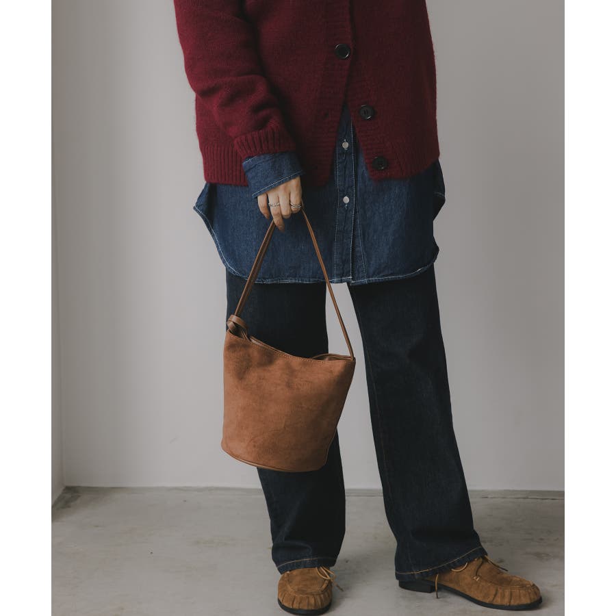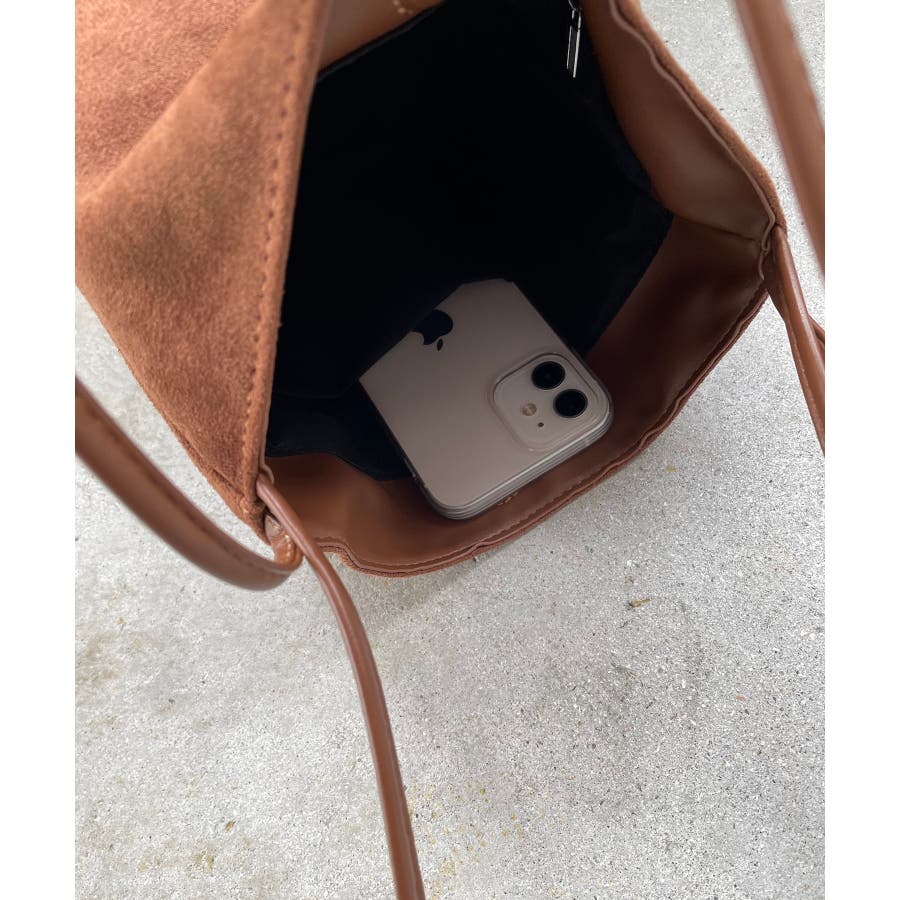 【トレンドのフェイクスエード素材のバケツ型ショルダーバッグ】