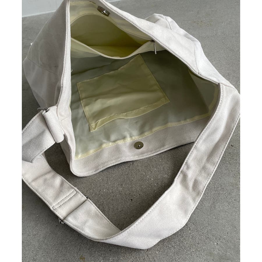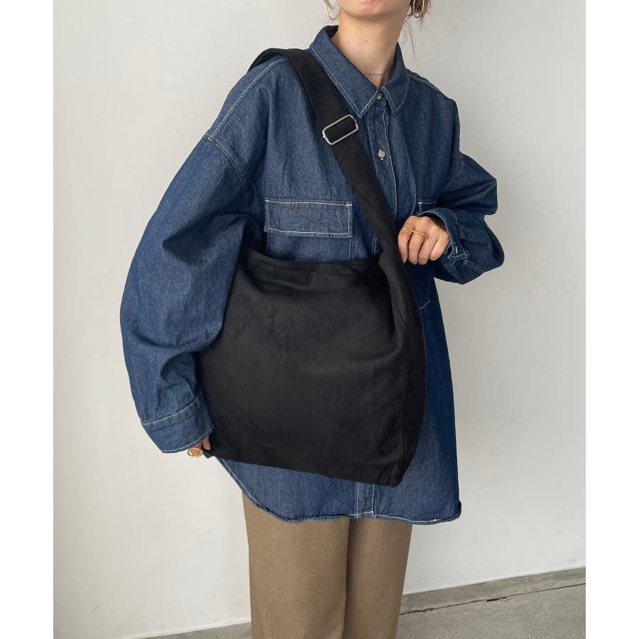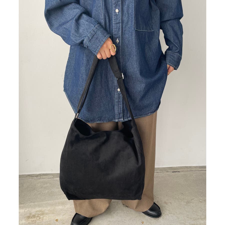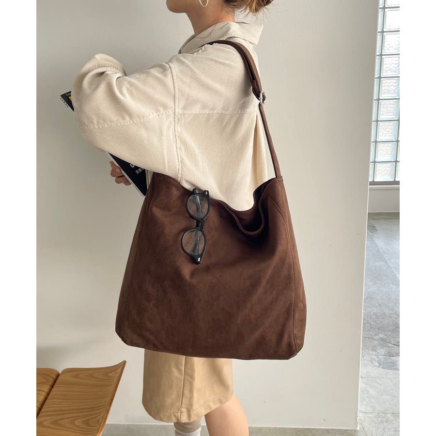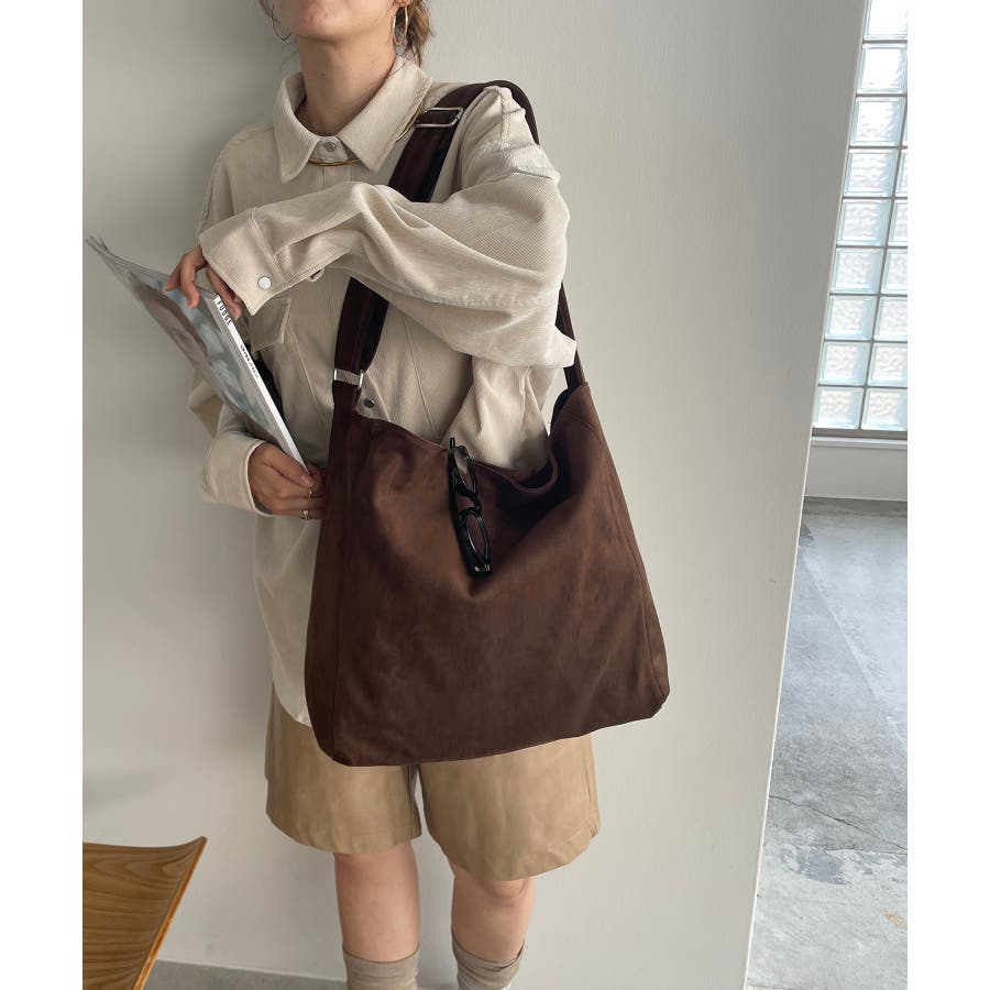 肌さわりの良い滑らかなフェイクスエードの大容量のショルダーバッグ。