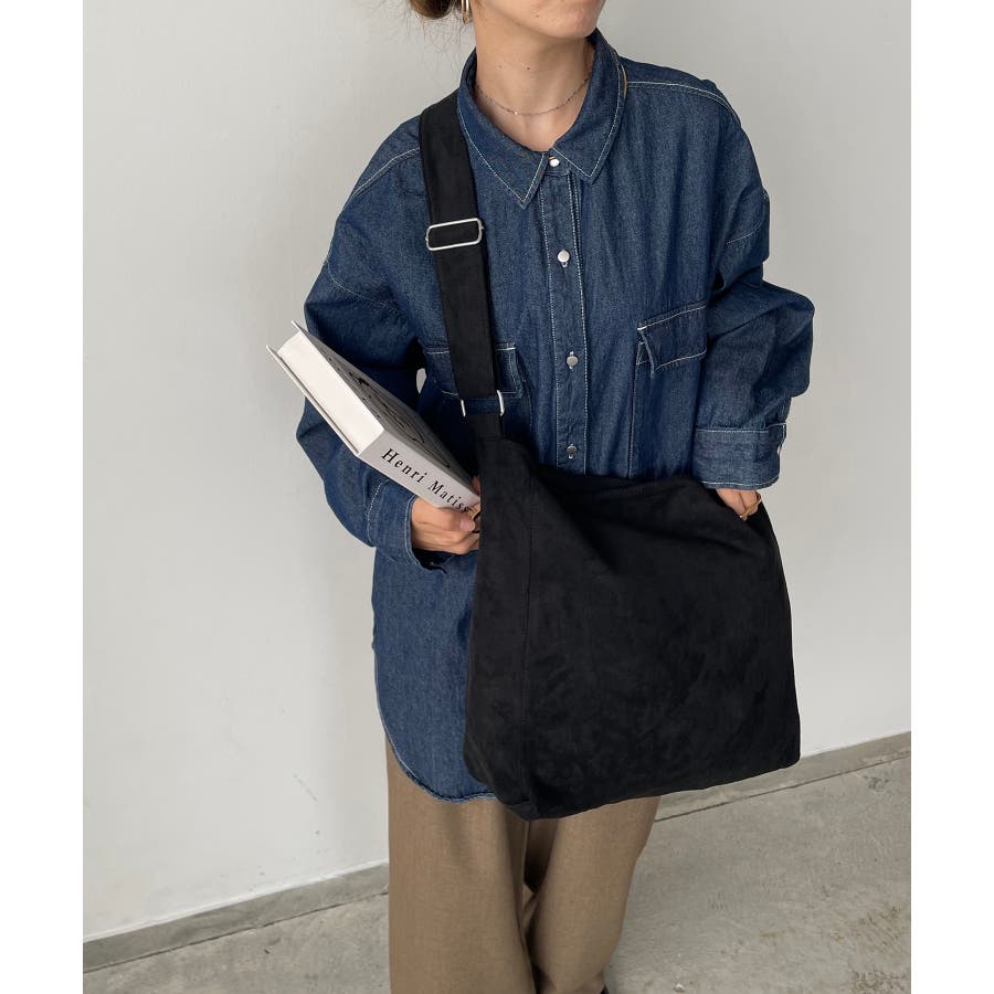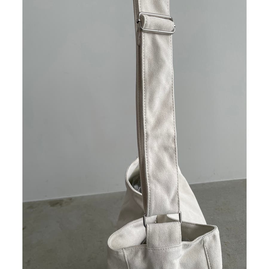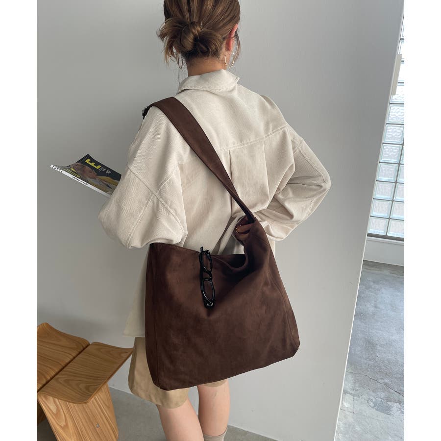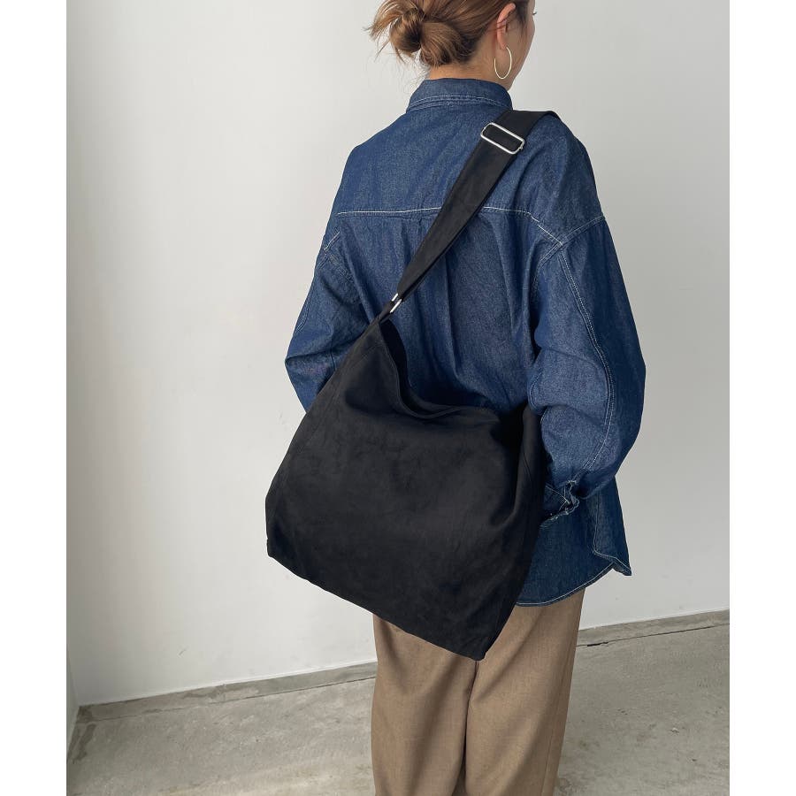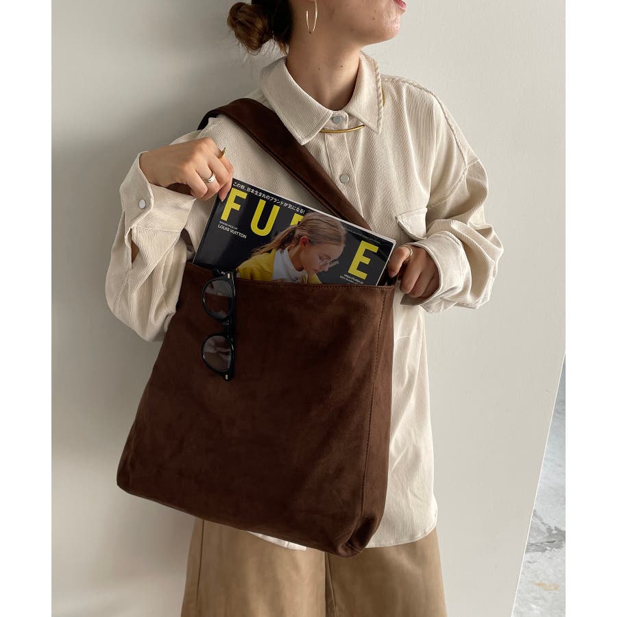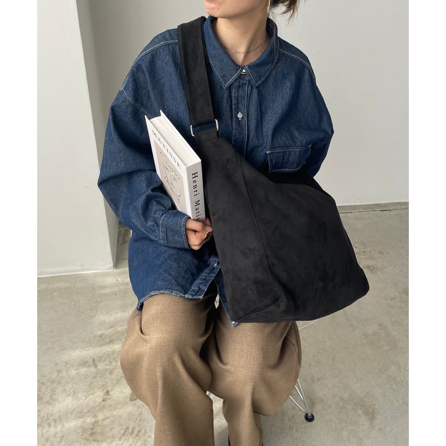 肌さわりの良い滑らかなフェイクスエードの大容量のショルダーバッグ。