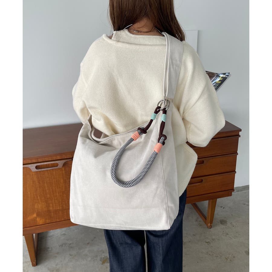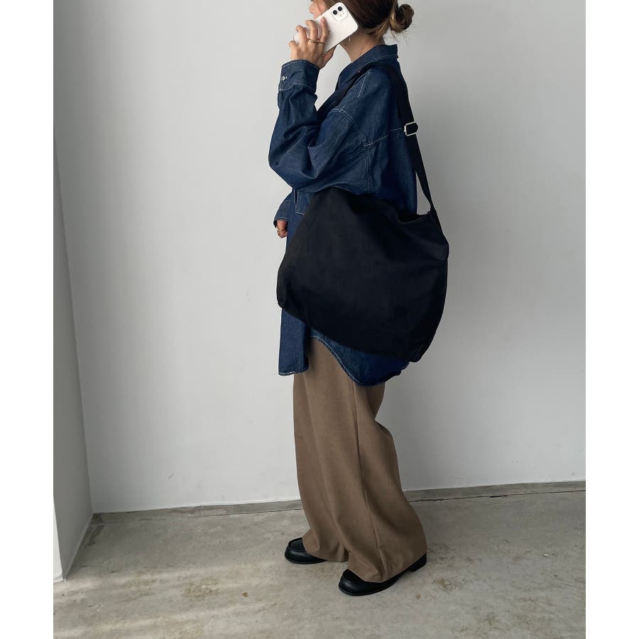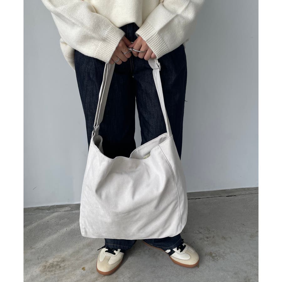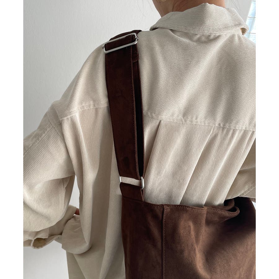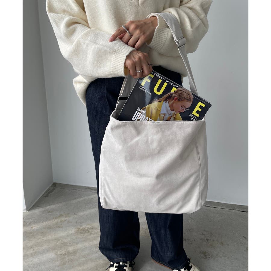 肌さわりの良い滑らかなフェイクスエードの大容量のショルダーバッグ。