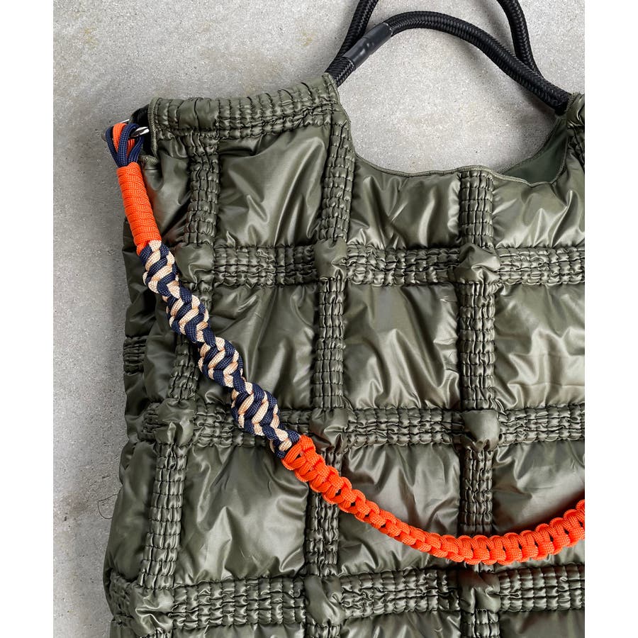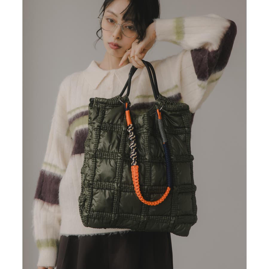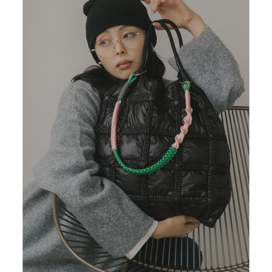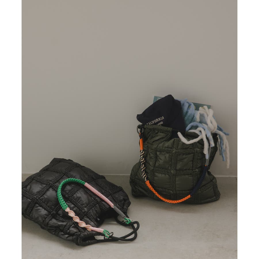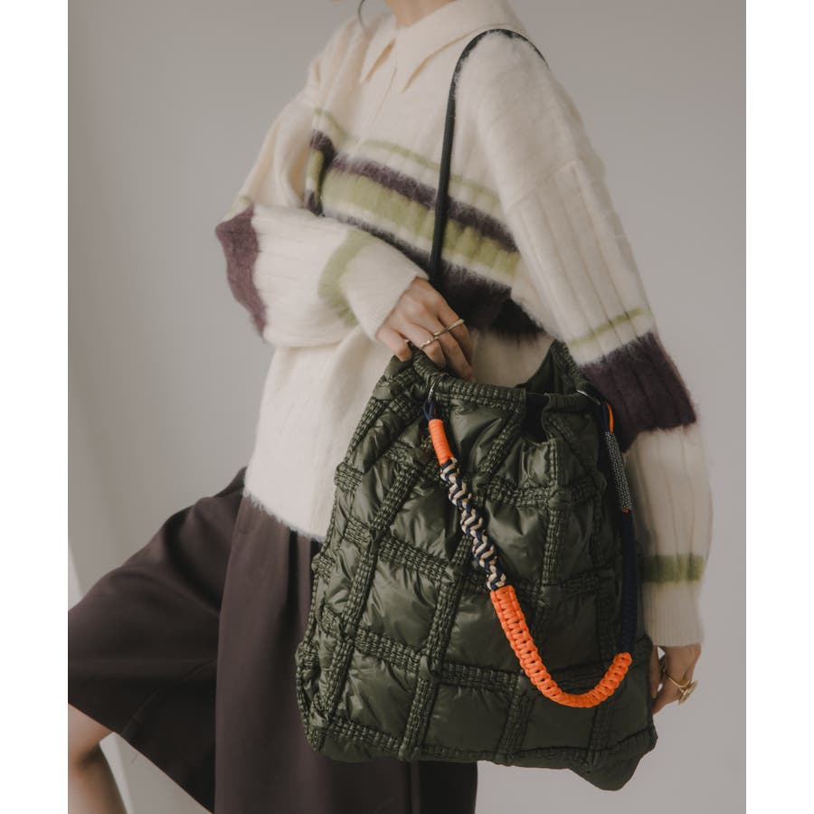 配色コードストラップが目を惹くナイロン素材のバッグ。