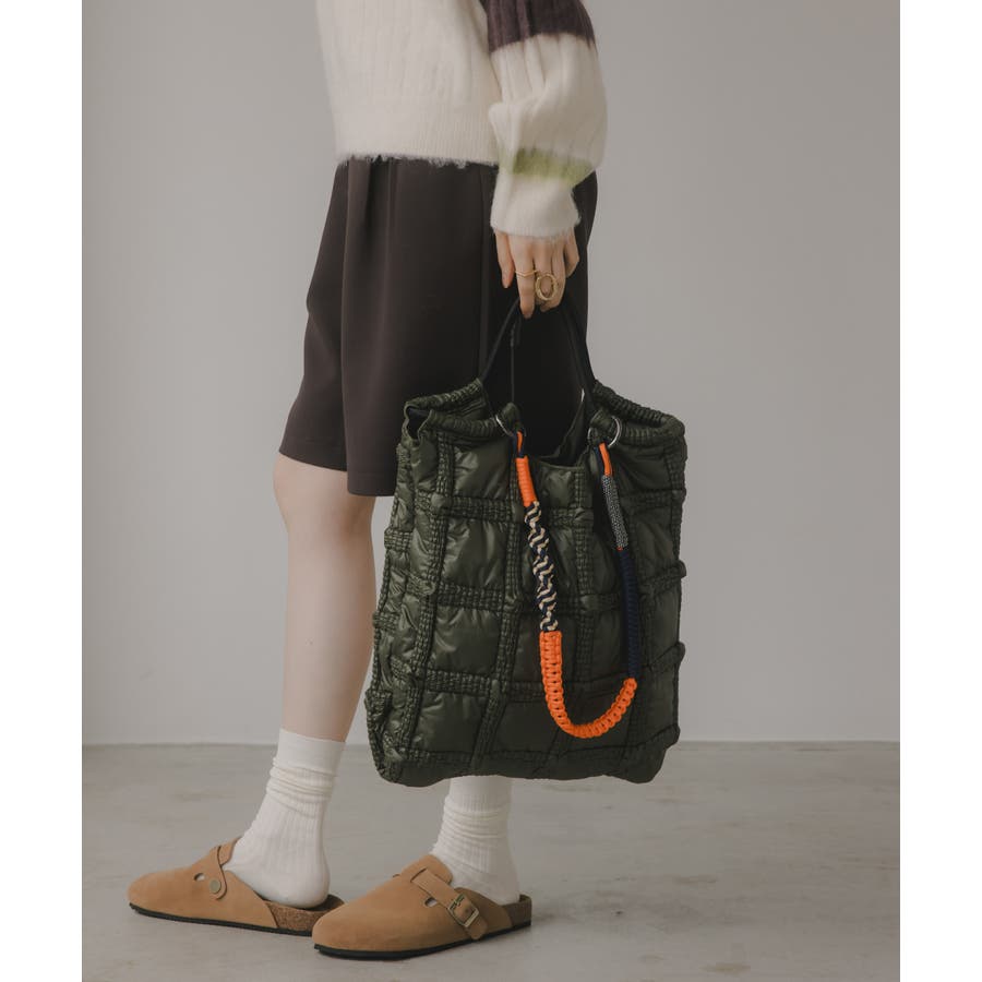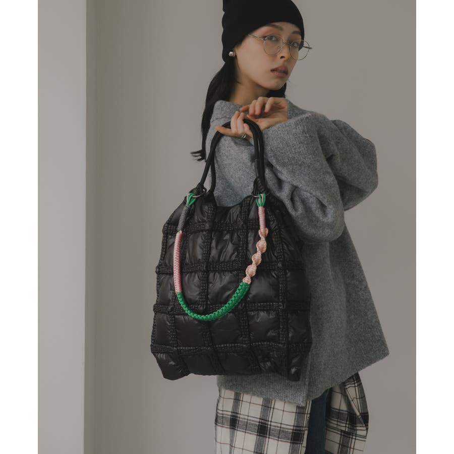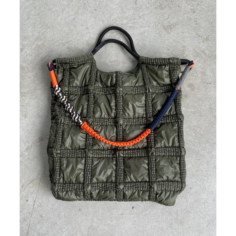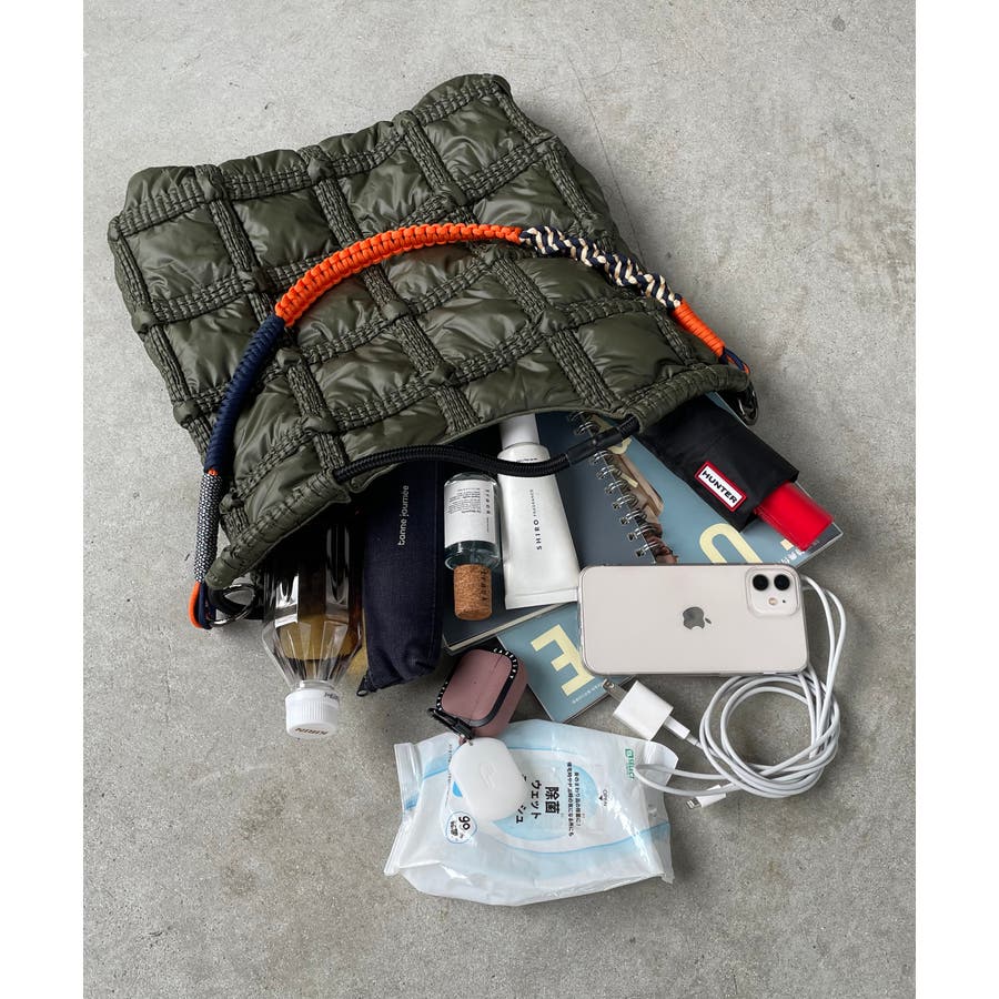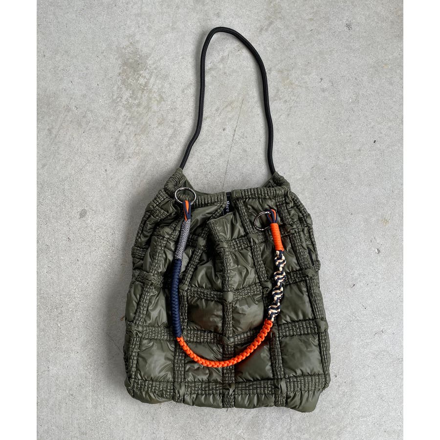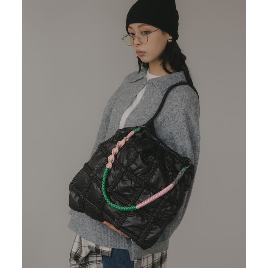 配色コードストラップが目を惹くナイロン素材のバッグ。