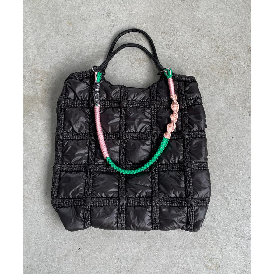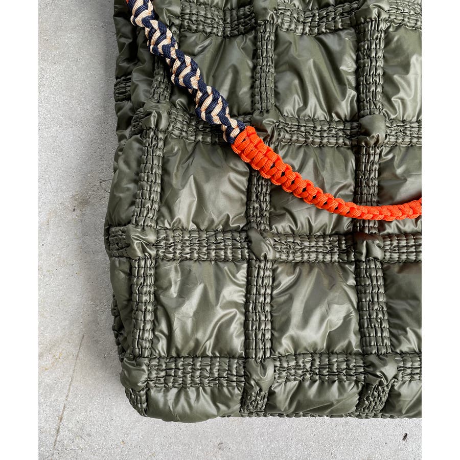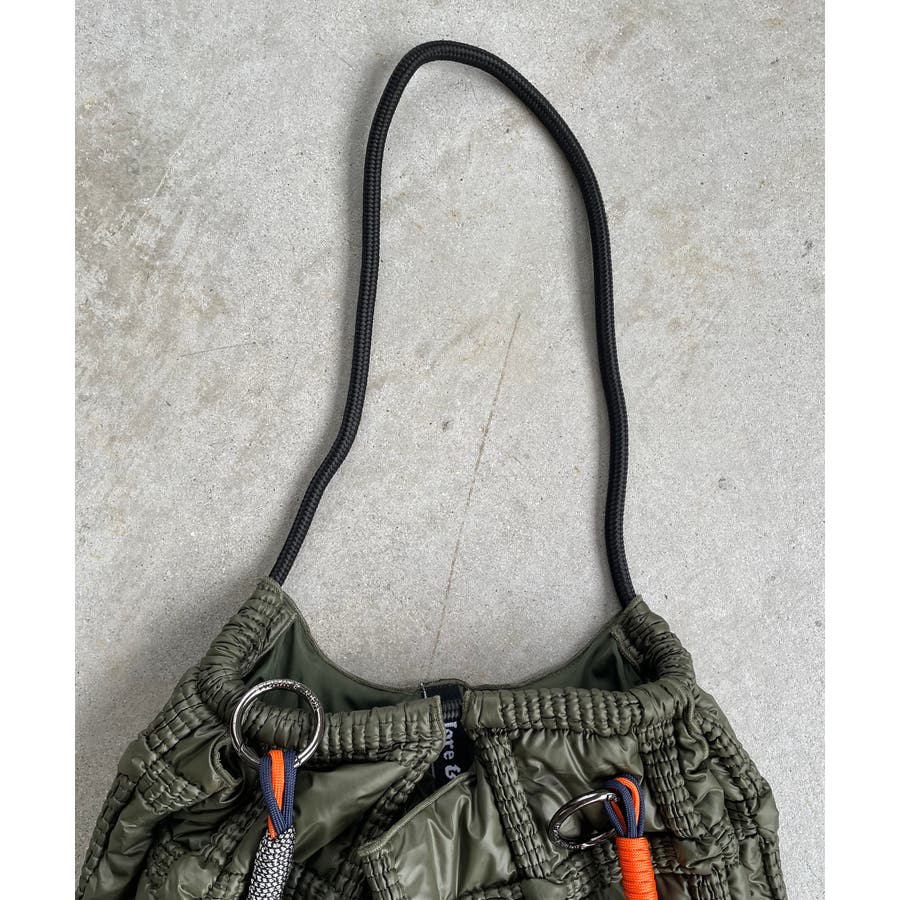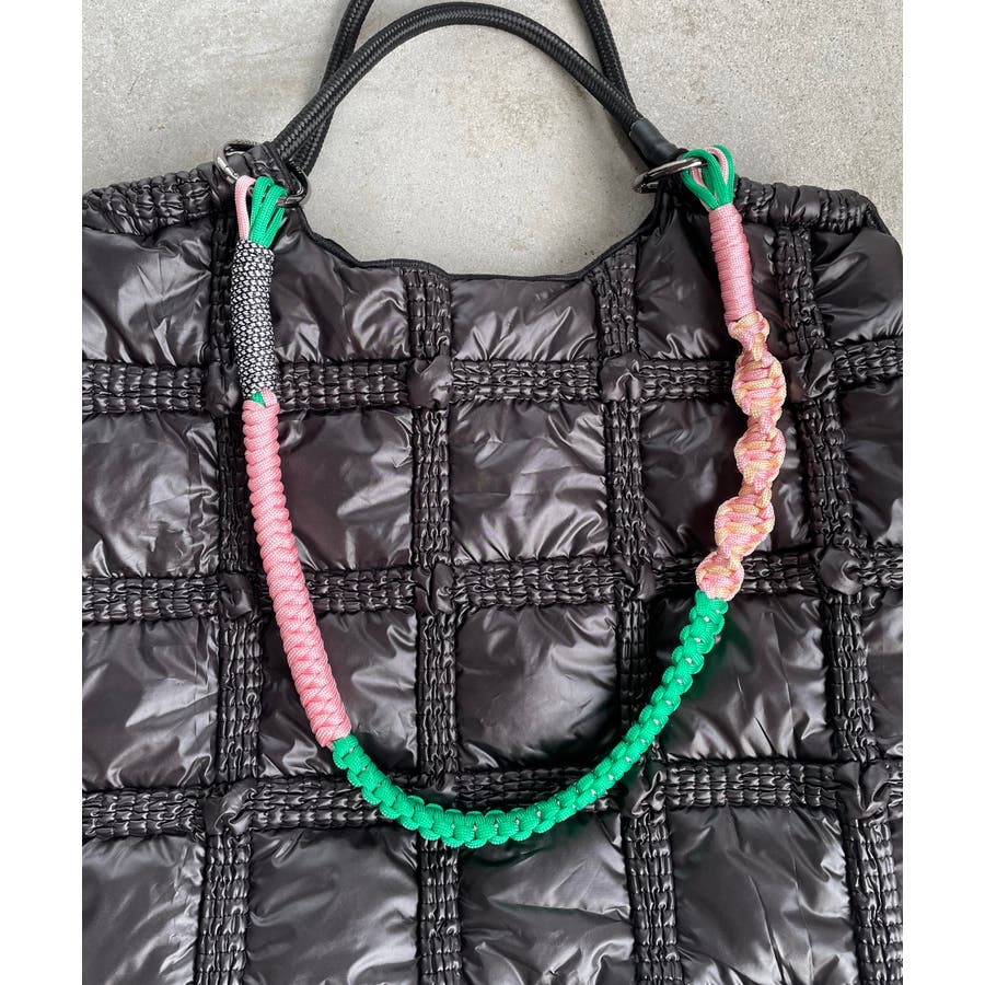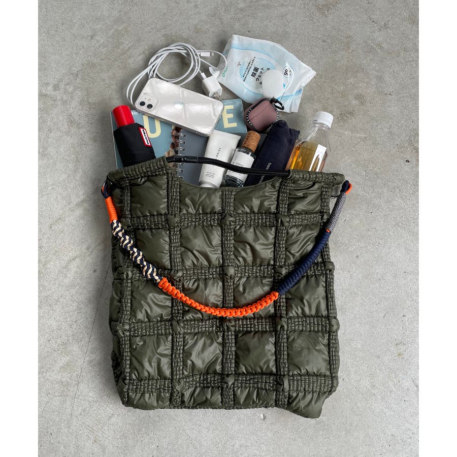 配色コードストラップが目を惹くナイロン素材のバッグ。