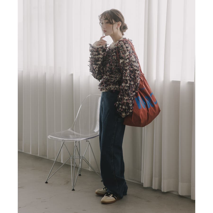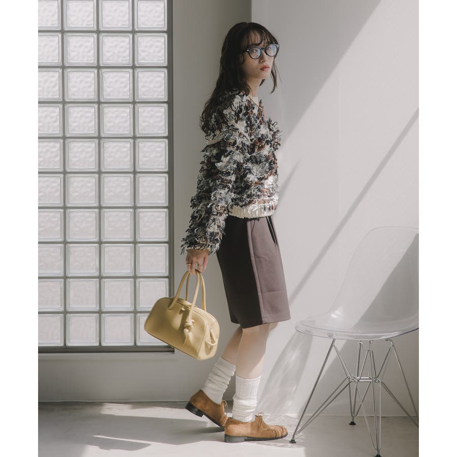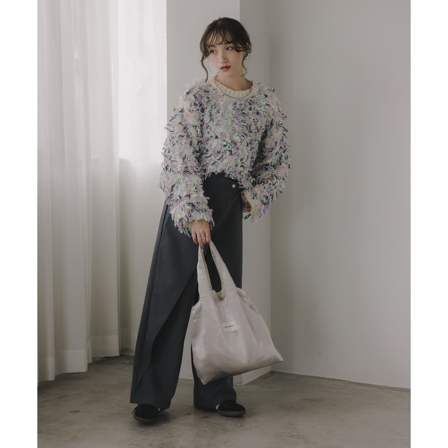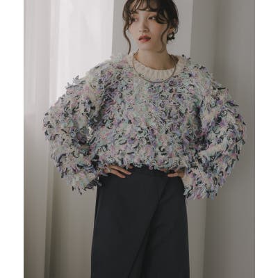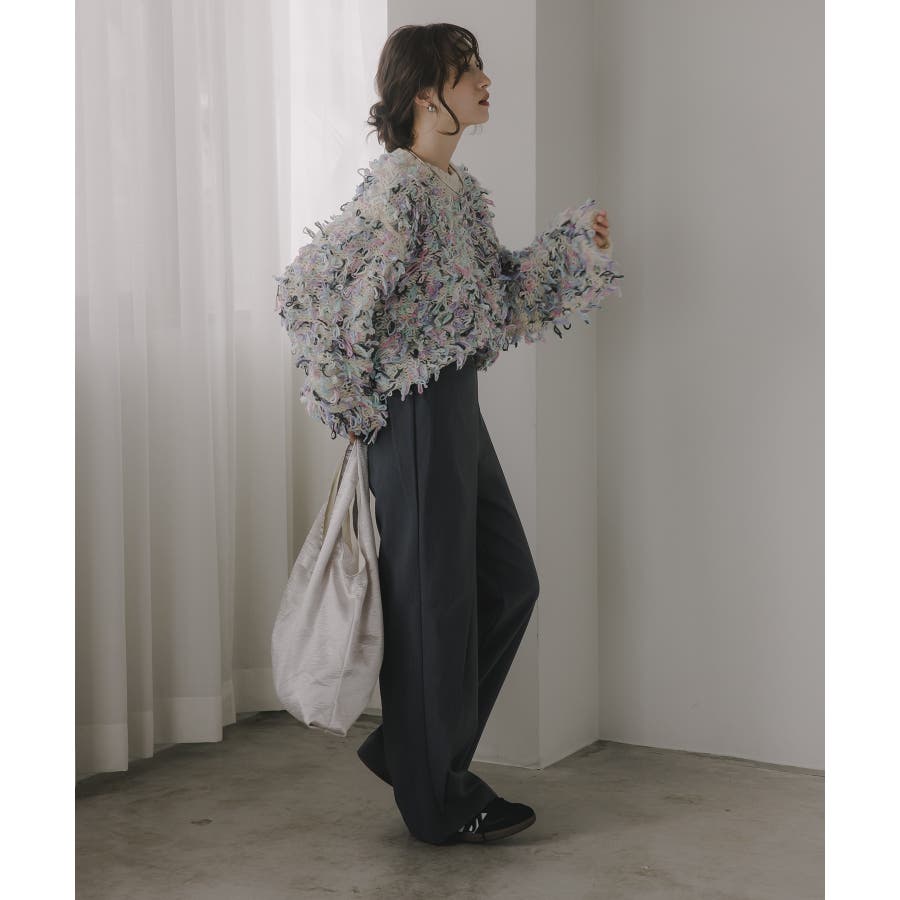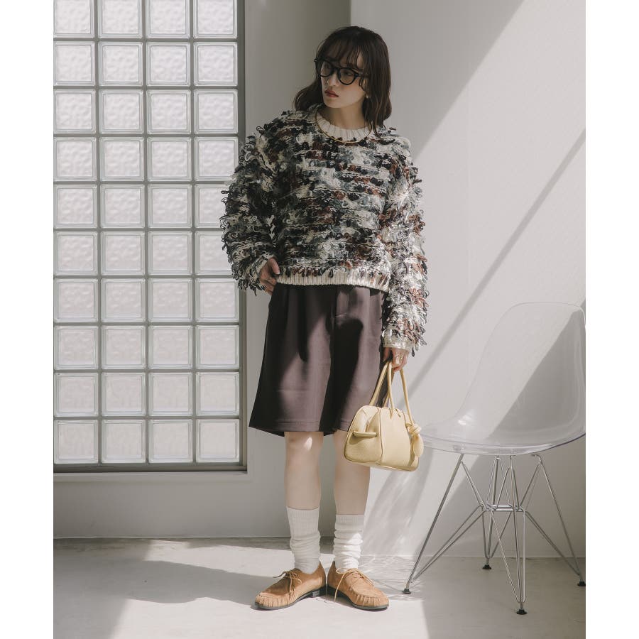【カールのあるループヤーンにカラー配色で編まれたデザインニット】