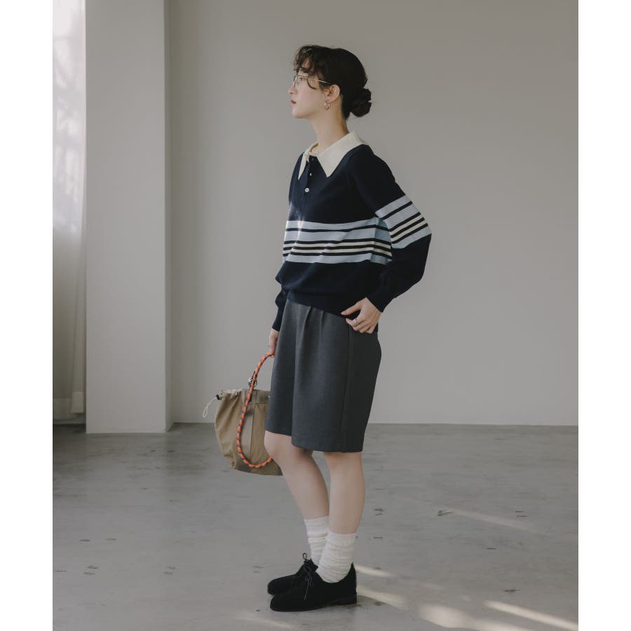 ゆったりとしたオーバーサイズ感とポロ襟のデザインが、ラフなスタイリングを実現。