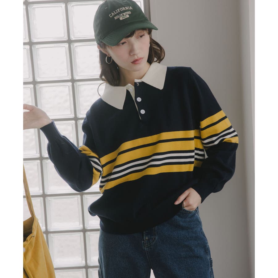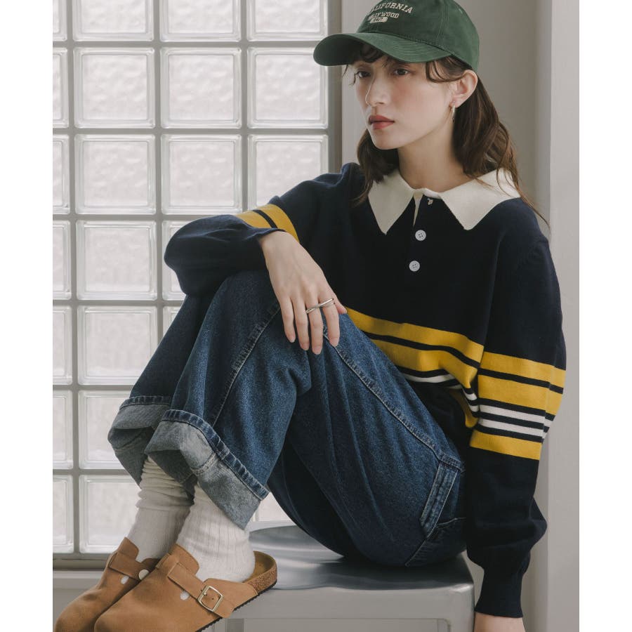 存在感のあるボーダーラガーは、スタイリングに取り入れるだけで旬なムードを演出。