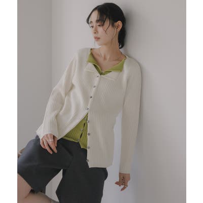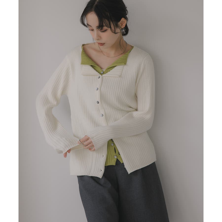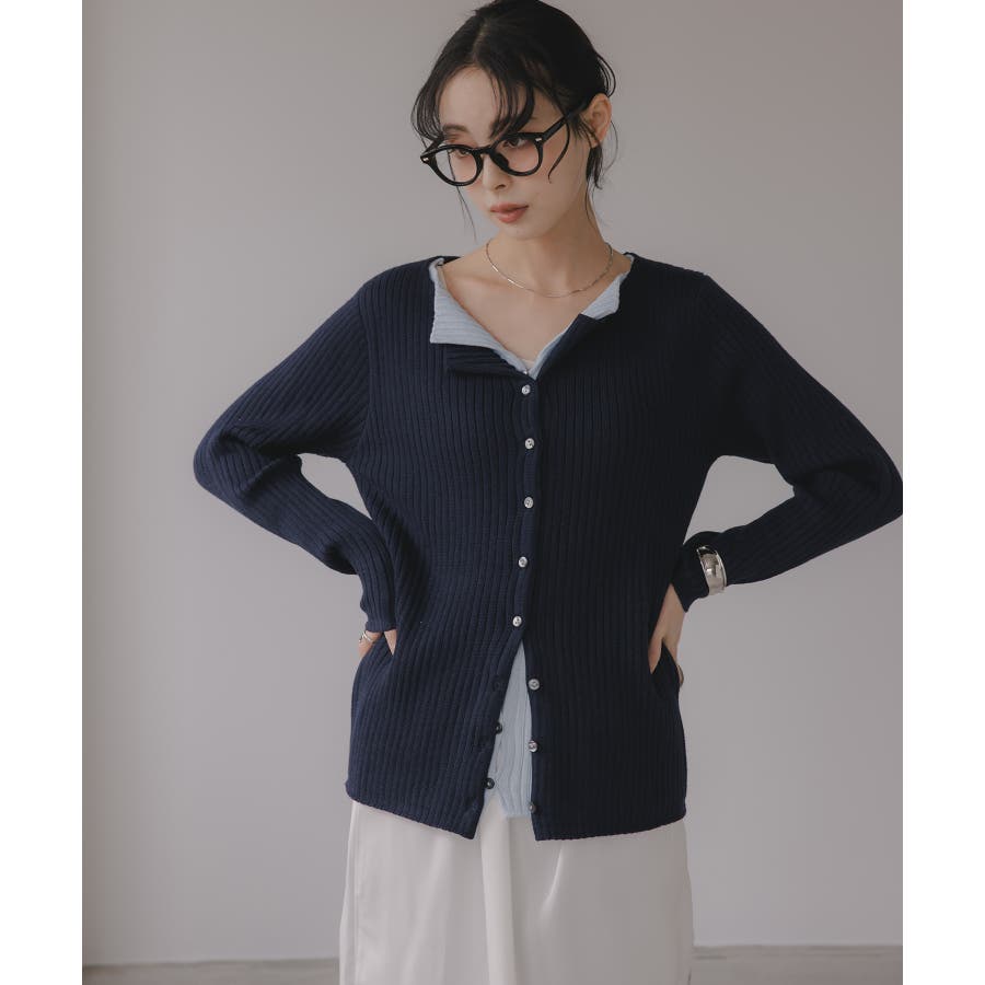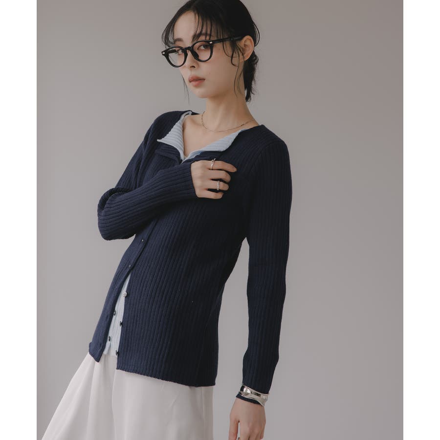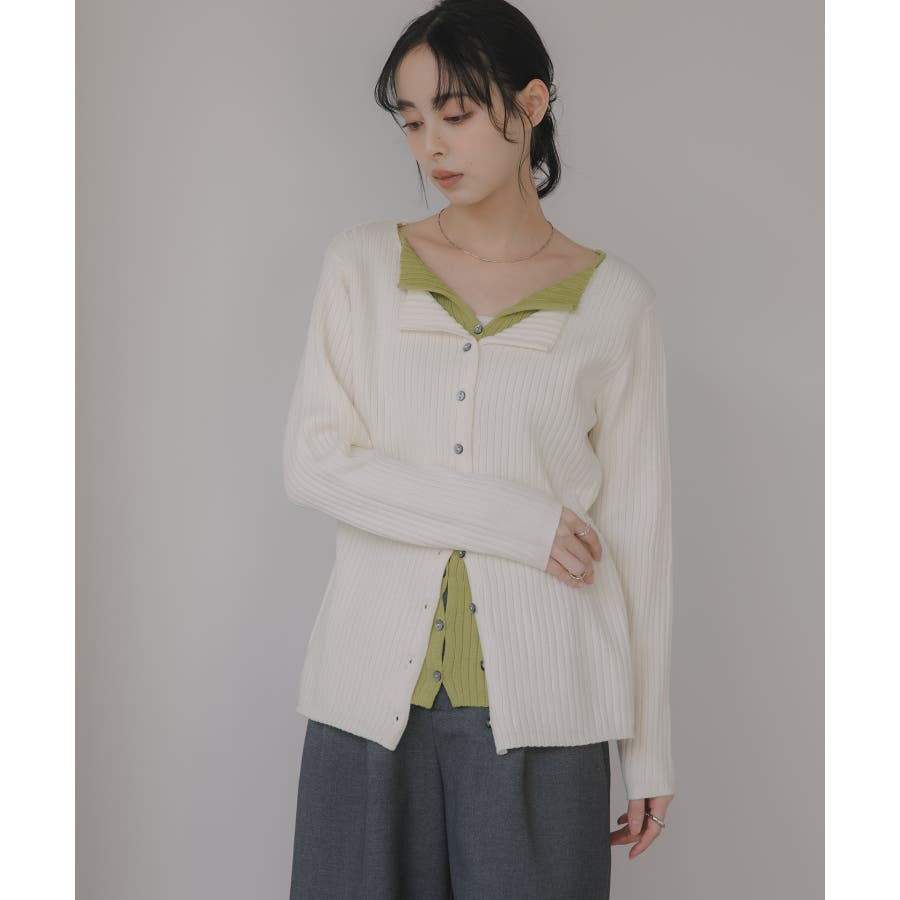 レイヤード バイカラー ニット カーディガン