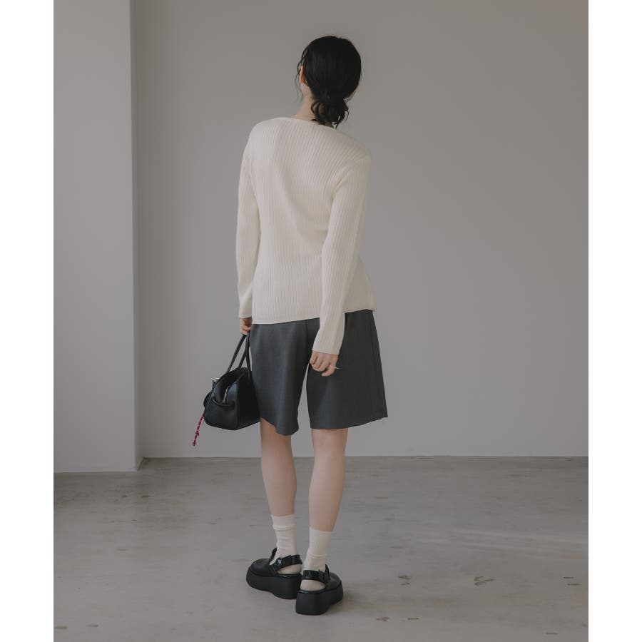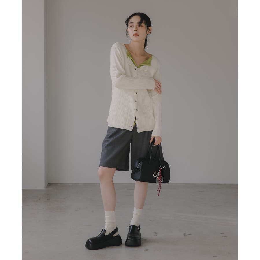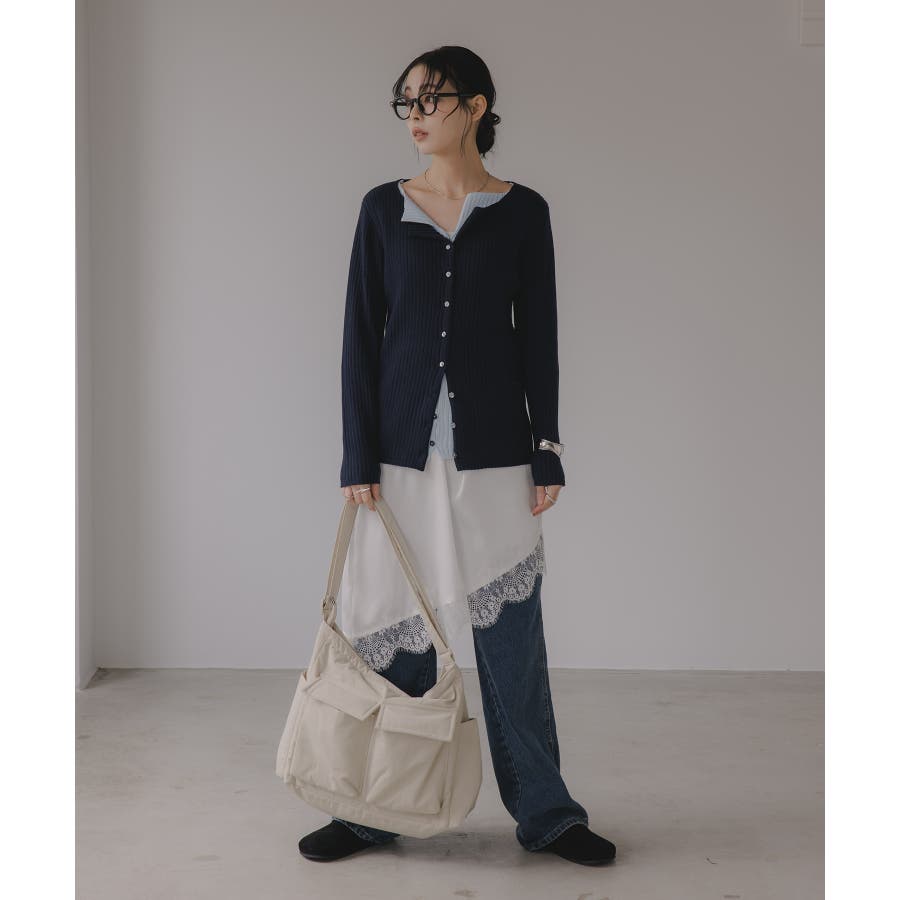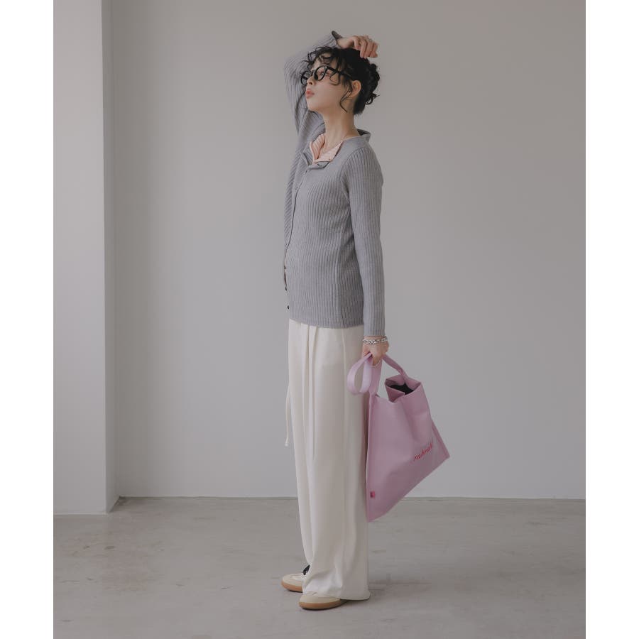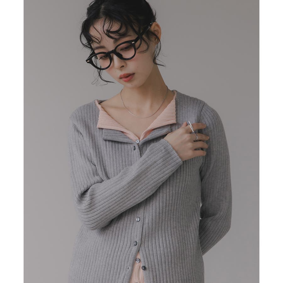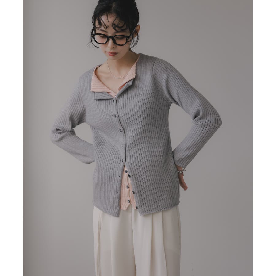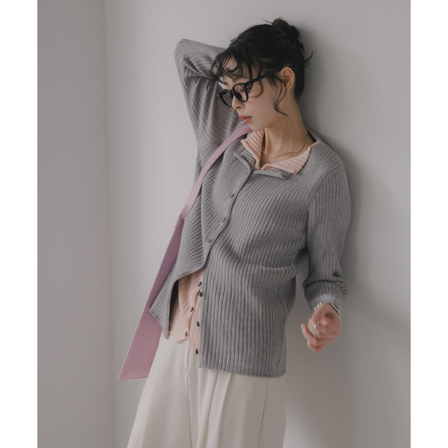 ボタンをすべて留めてプルオーバー風に着ても、外してレイヤード感を強調してもサマになるリブニットカーデ。